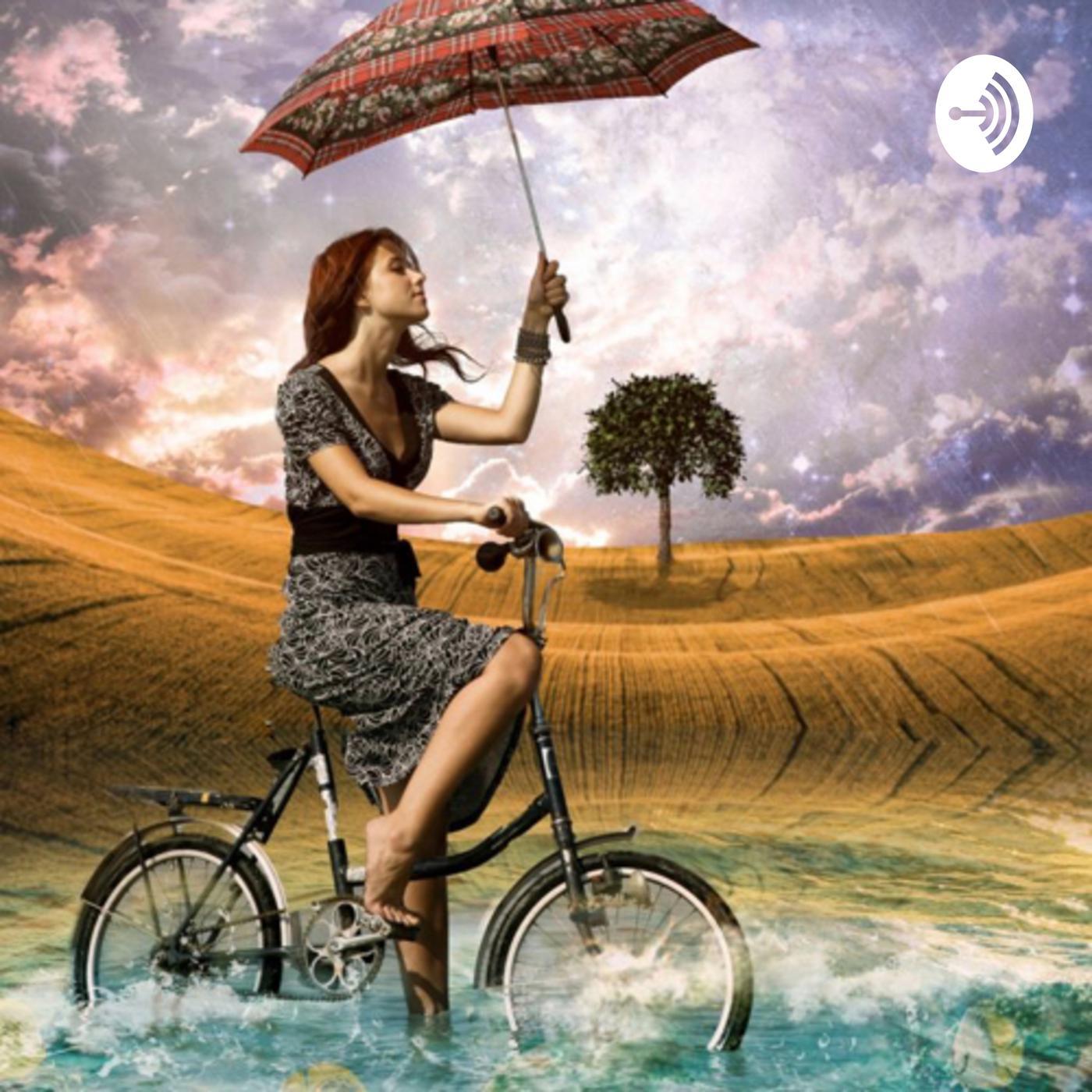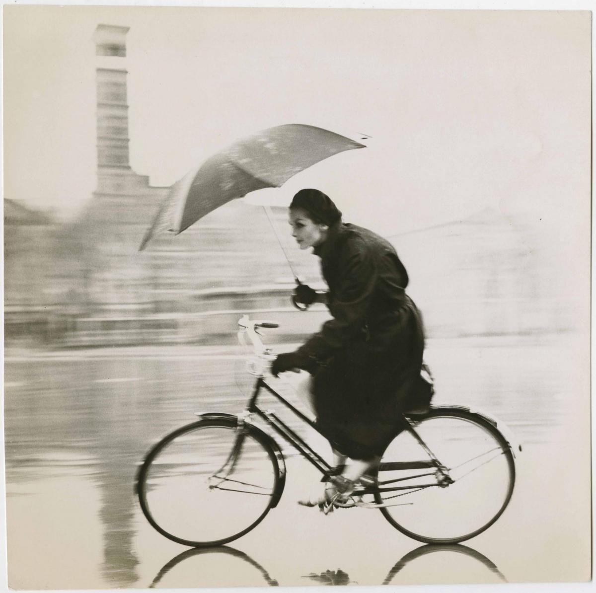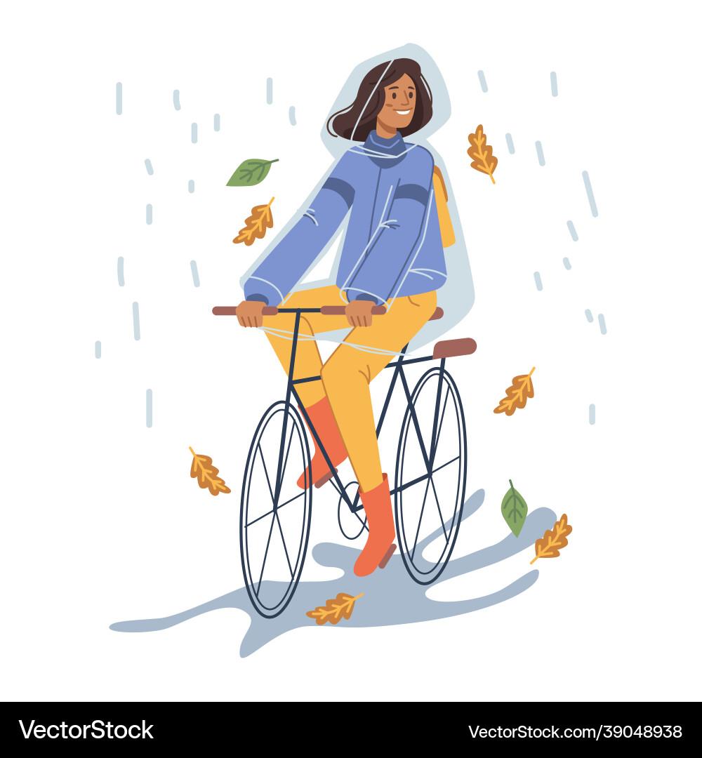 Девушка на велосипеде под дождем