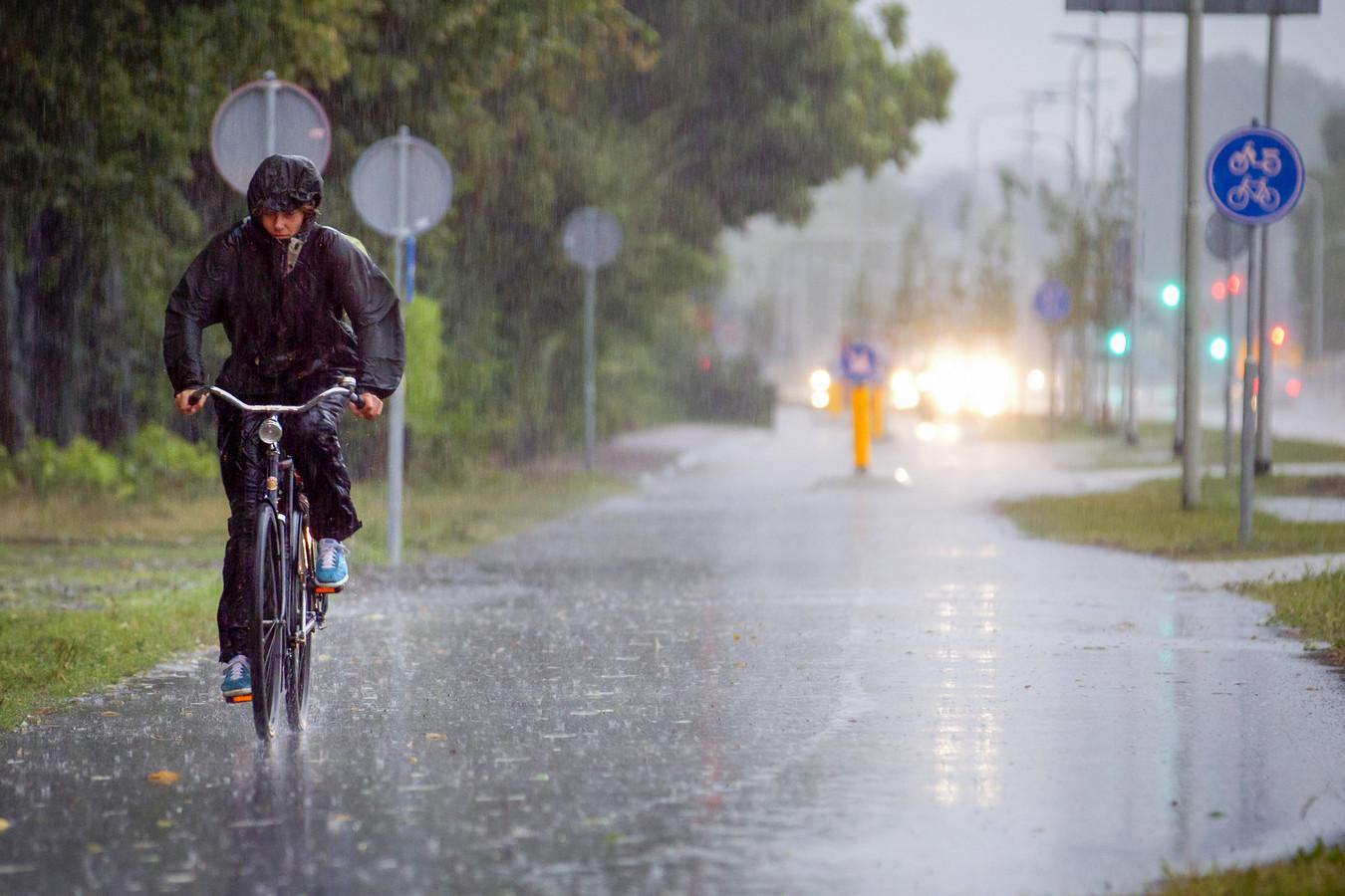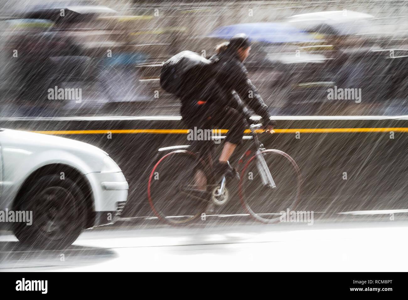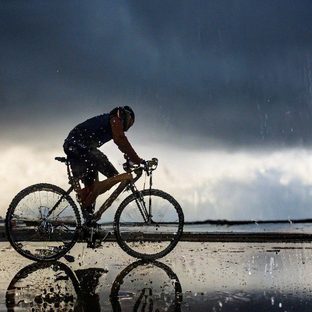 Велосипедист под дождем