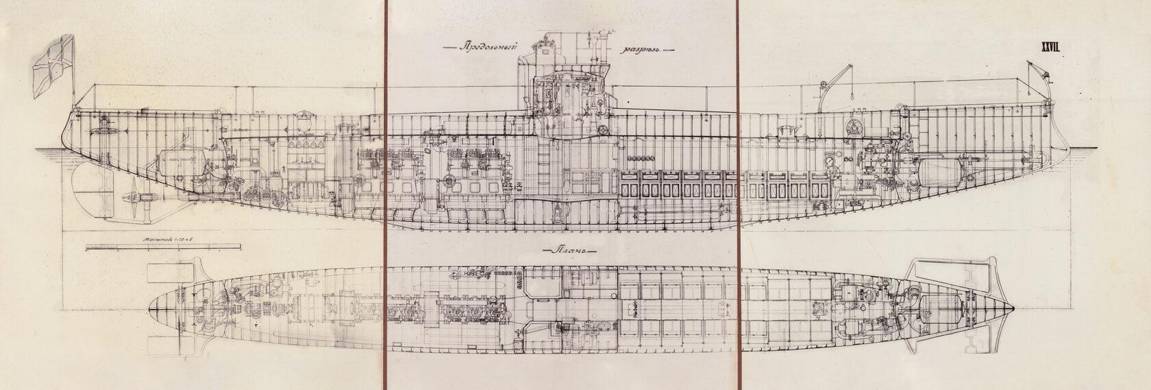 Подводная лодка акула 1909 чертежи