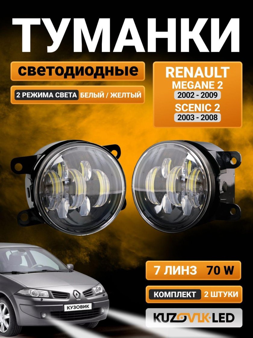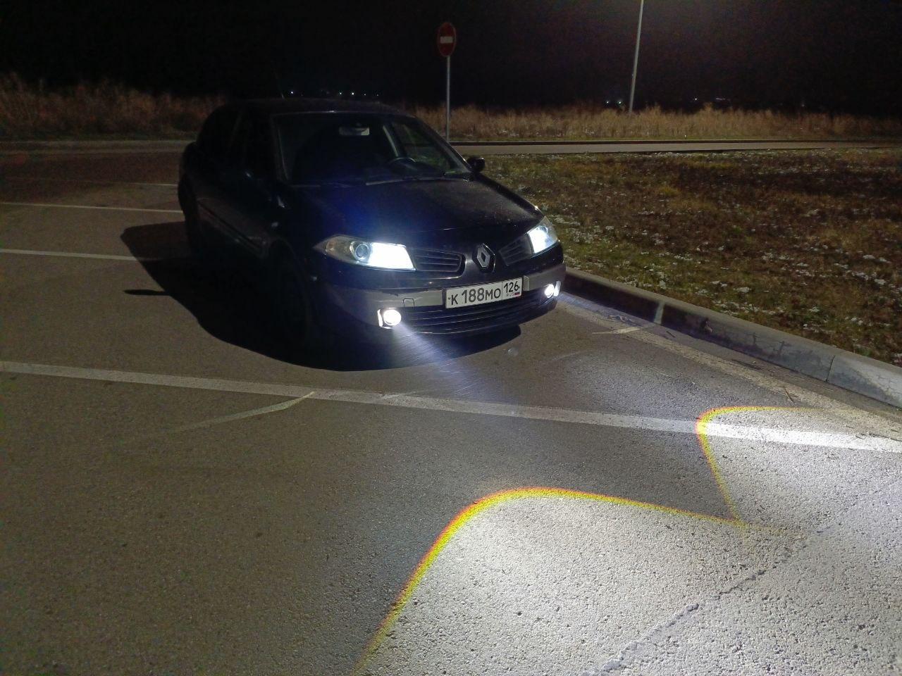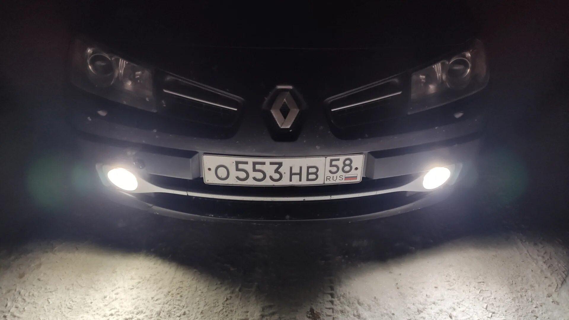 ![Светодиодные противотуманки в Рено Меган 2]()