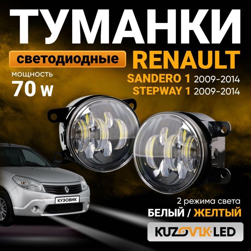 Туманки автолед Логан желтый белый