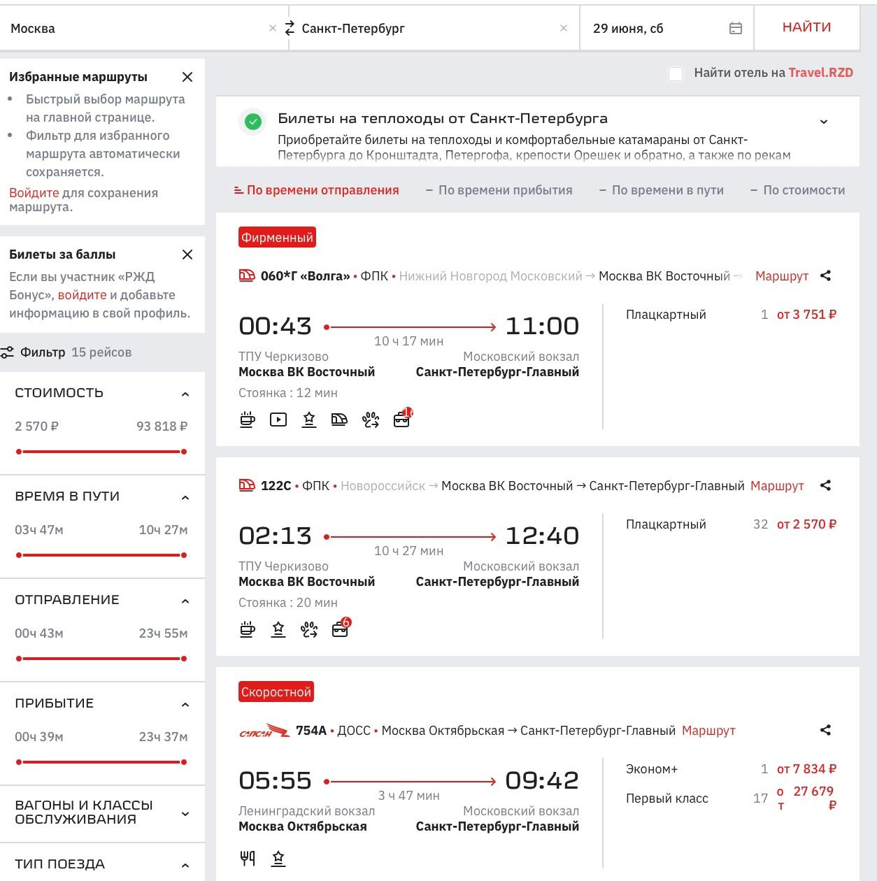 Поезд экспресс Москва Санкт-Петербург