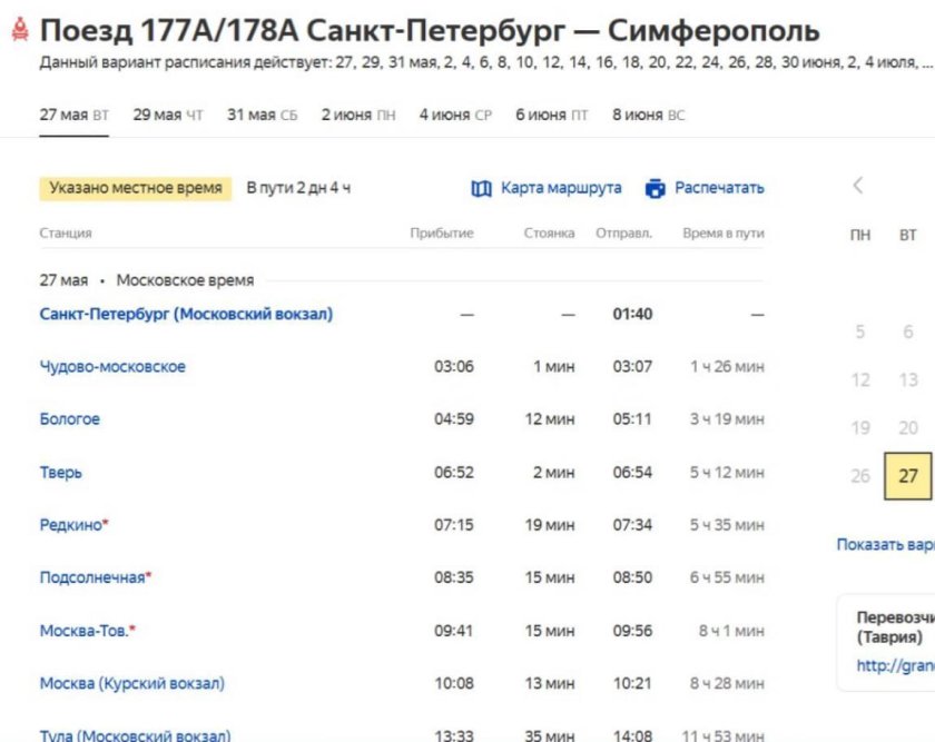 Санкт-Петербург Крым поезд