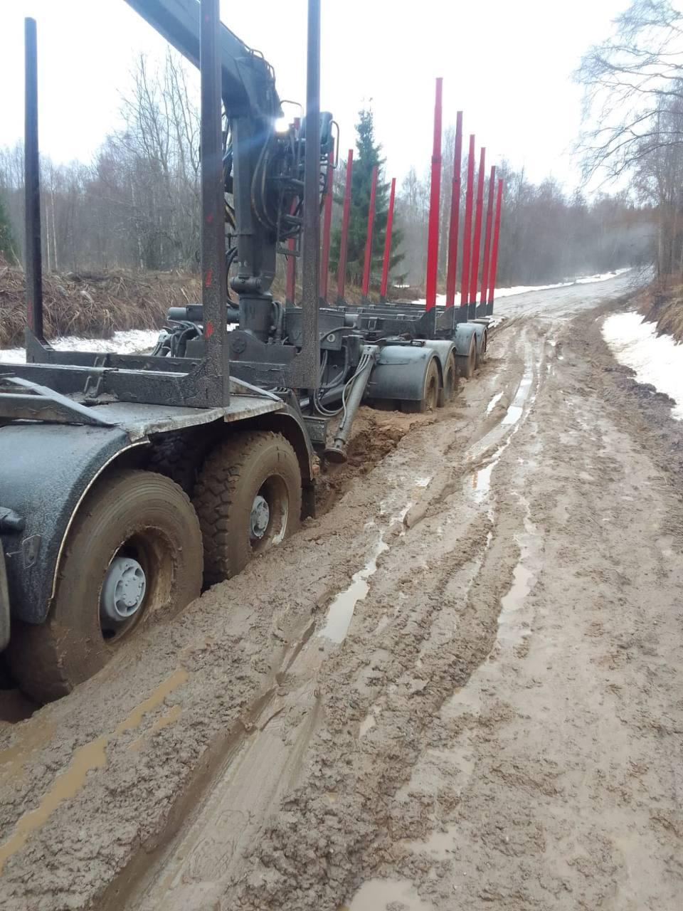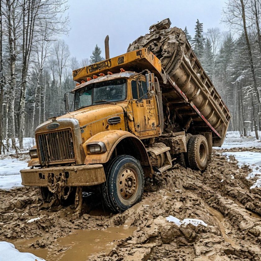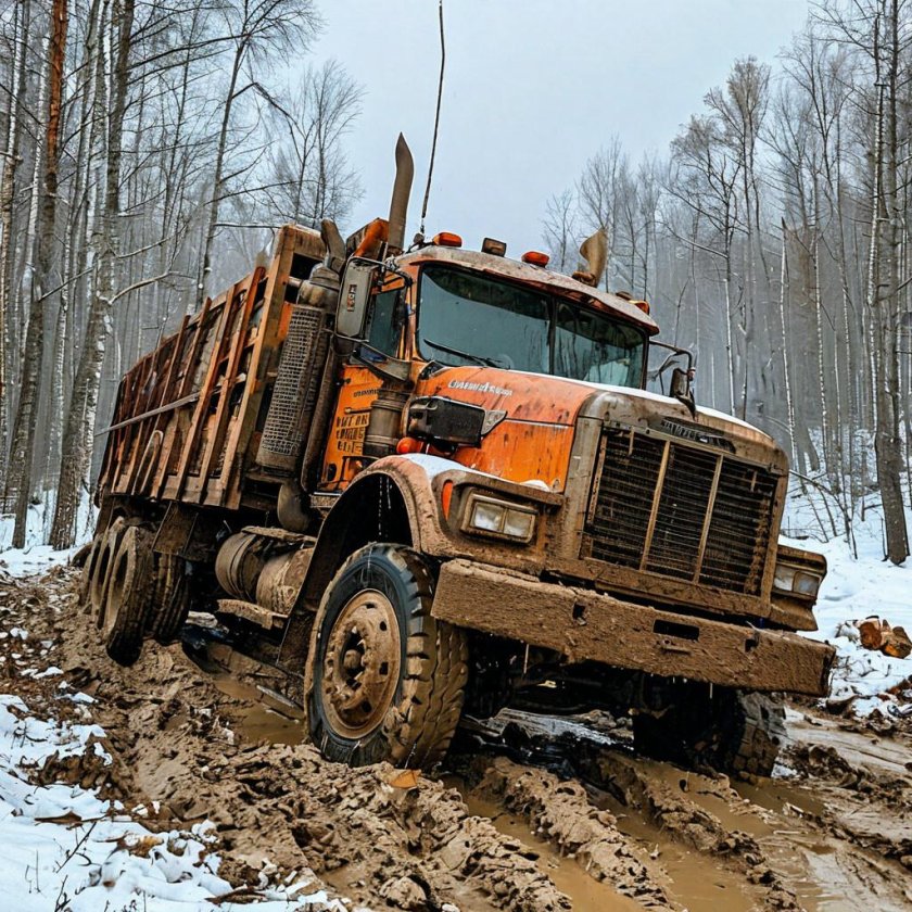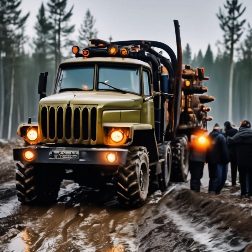 Урал-4320 лесовоз в грязи