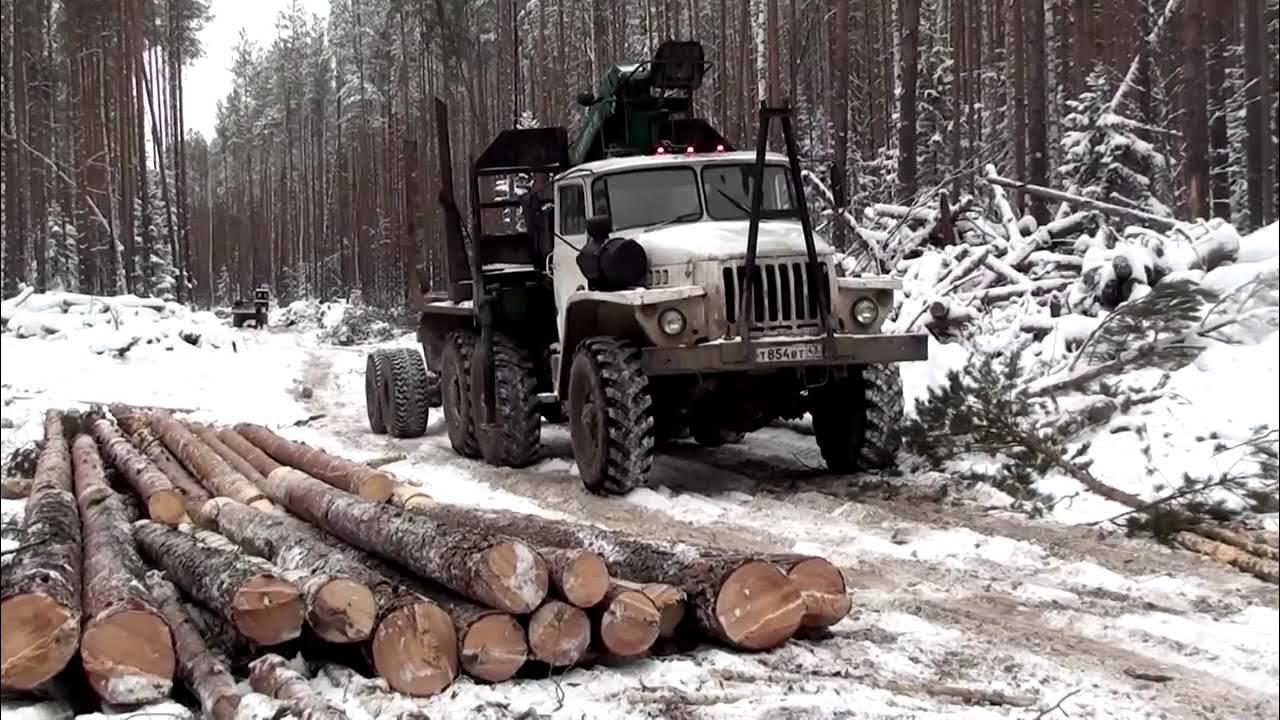 ![Урал лесовоз груженый]()