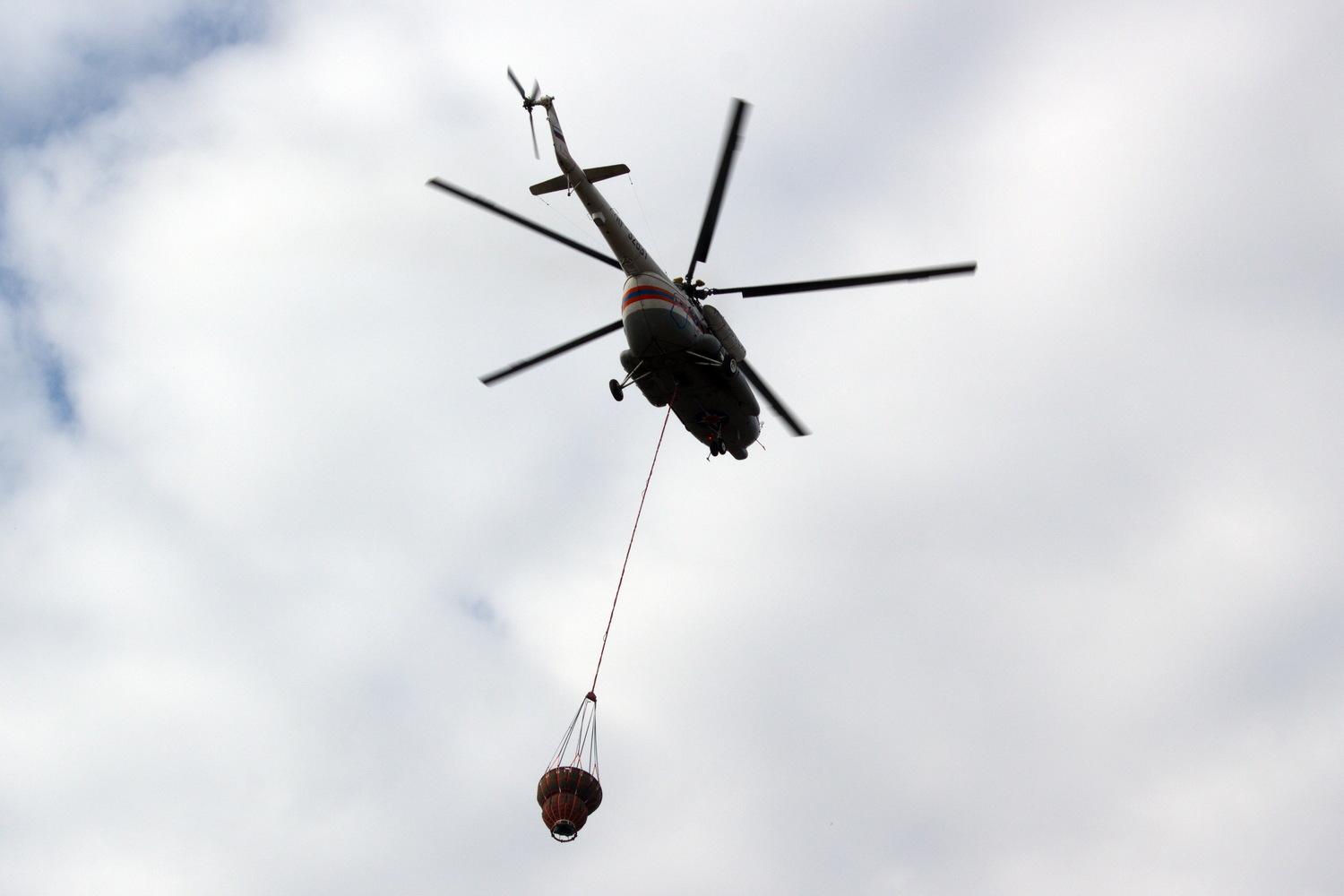 Вертолет тушит пожар