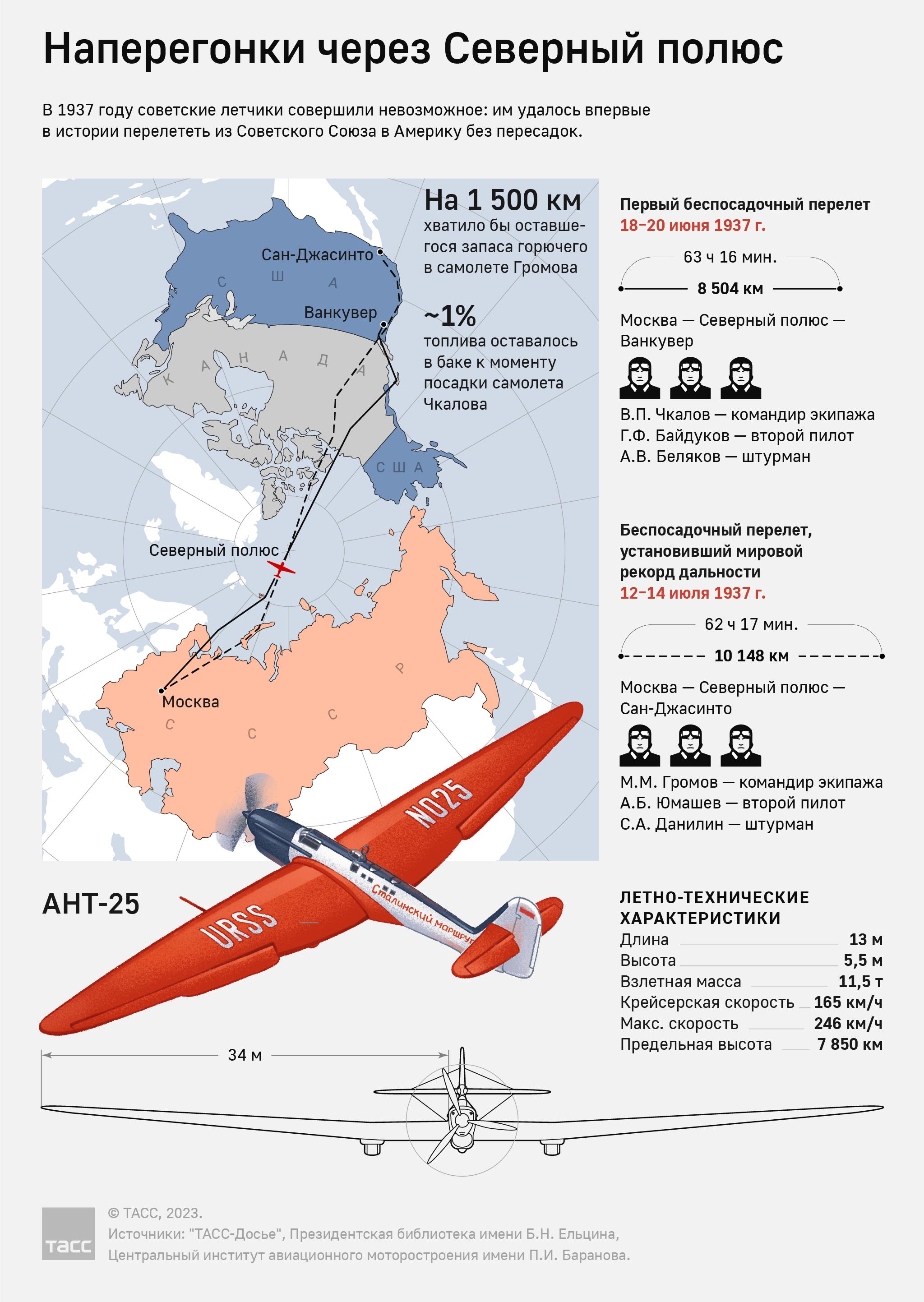 Первый беспосадочный перелёт Москва Северный полюс Ванкувер