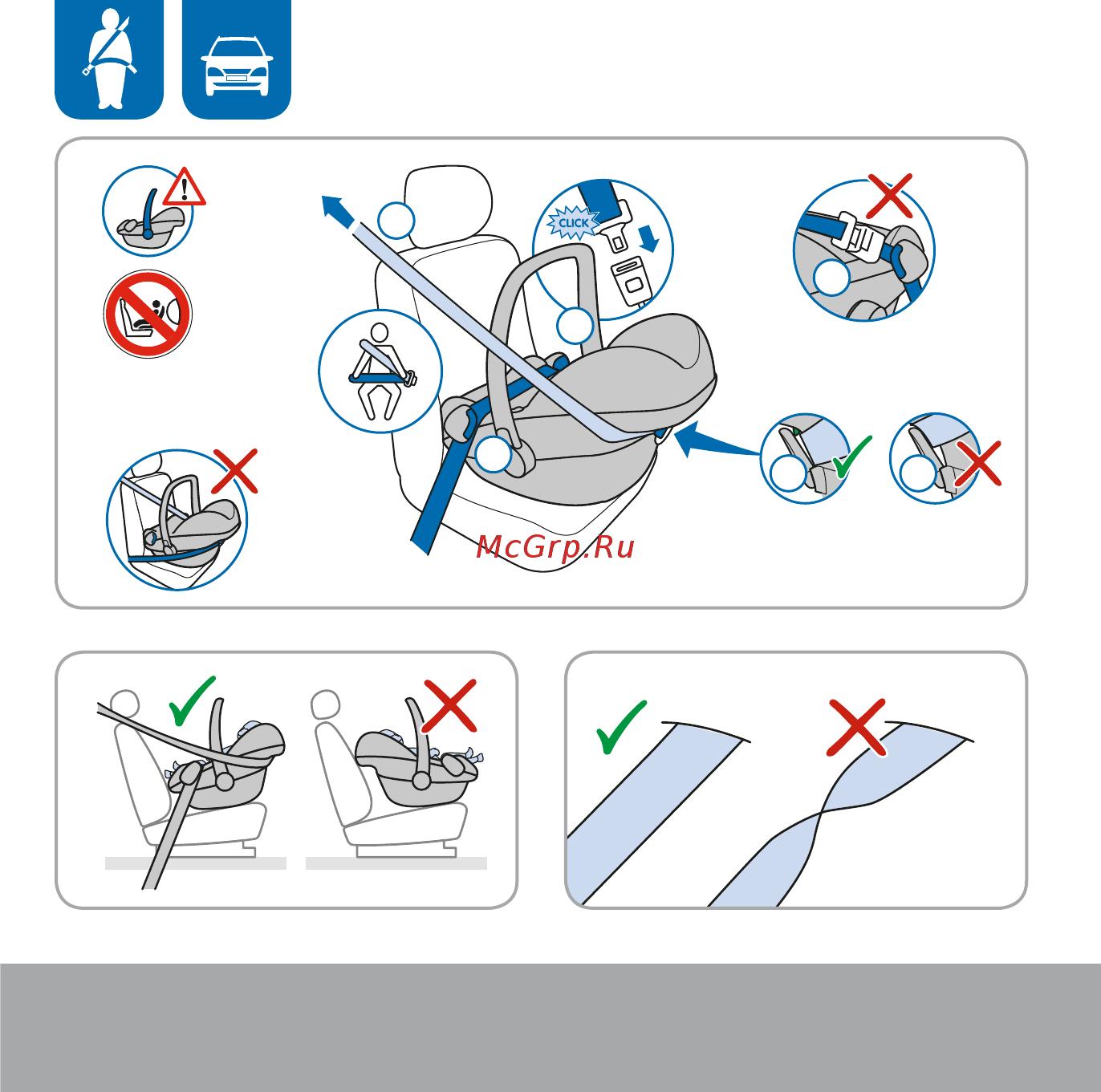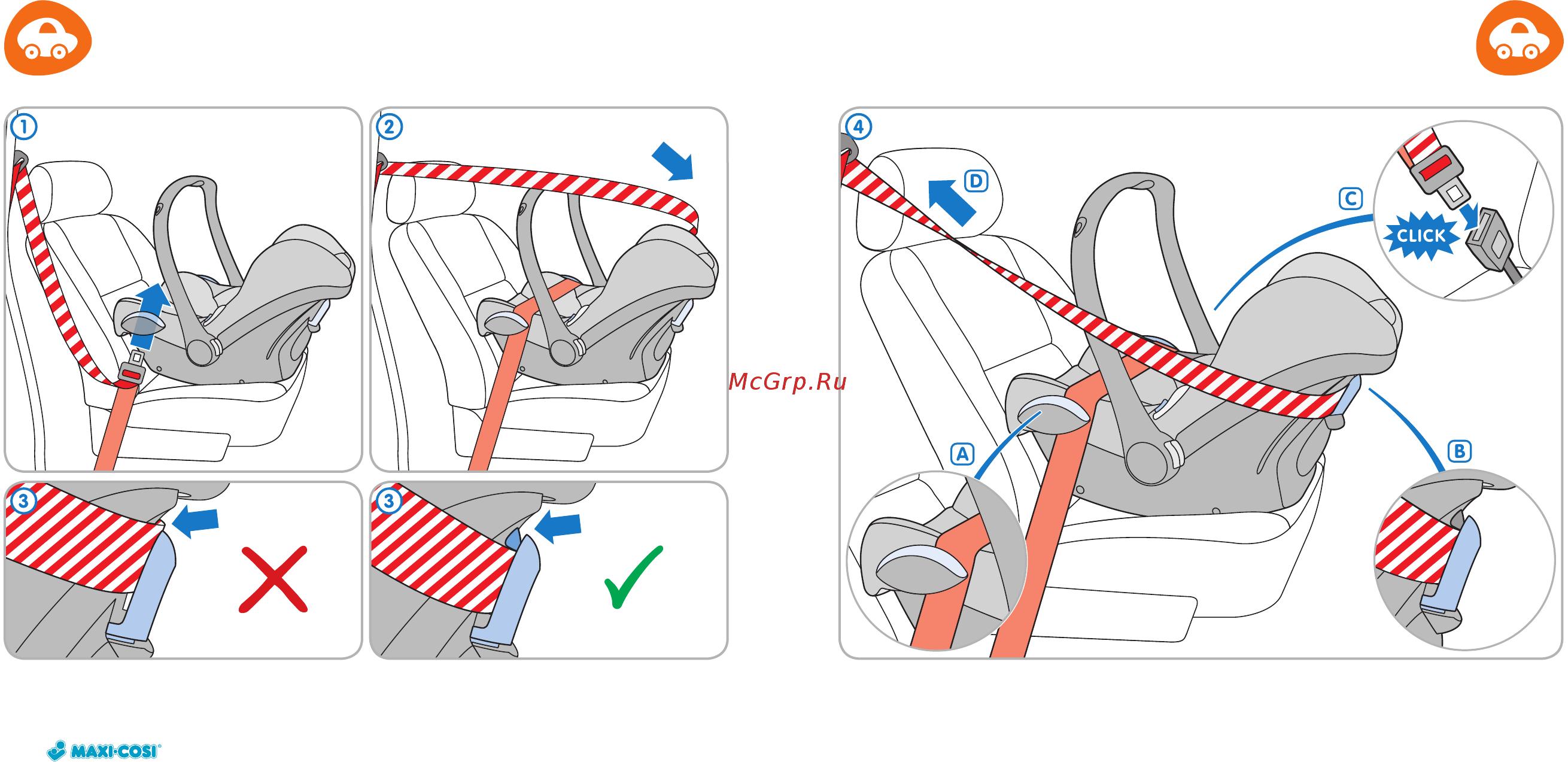 Схема крепления автолюльки ремнем безопасности