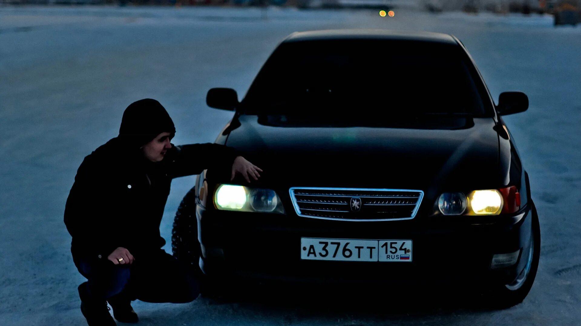 Парень возле машины зимой