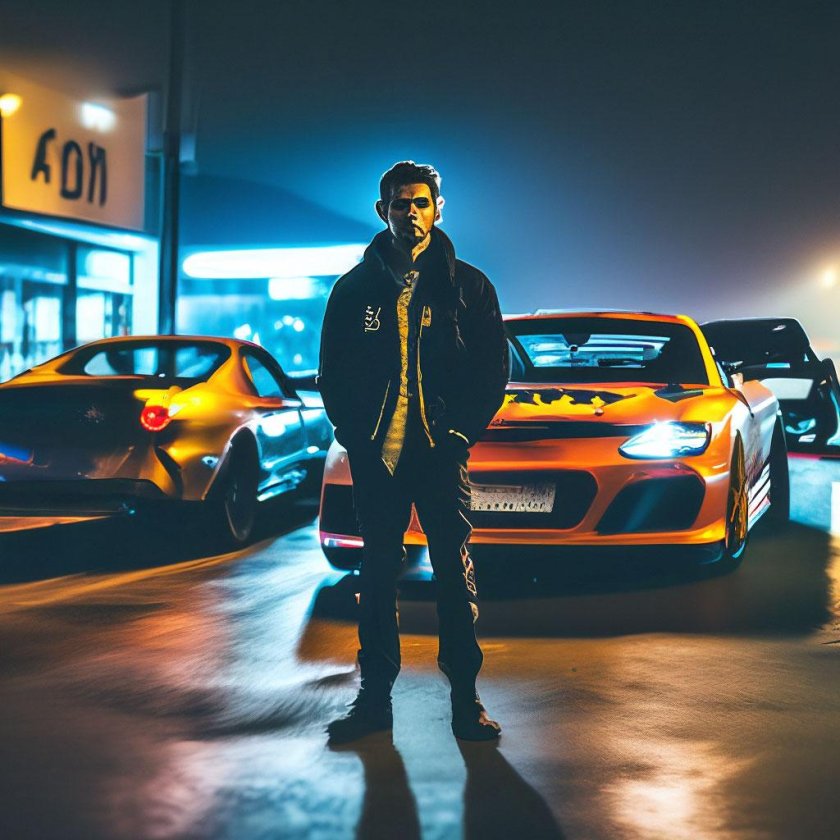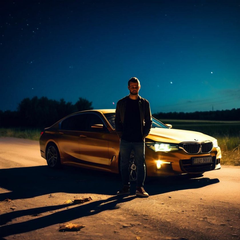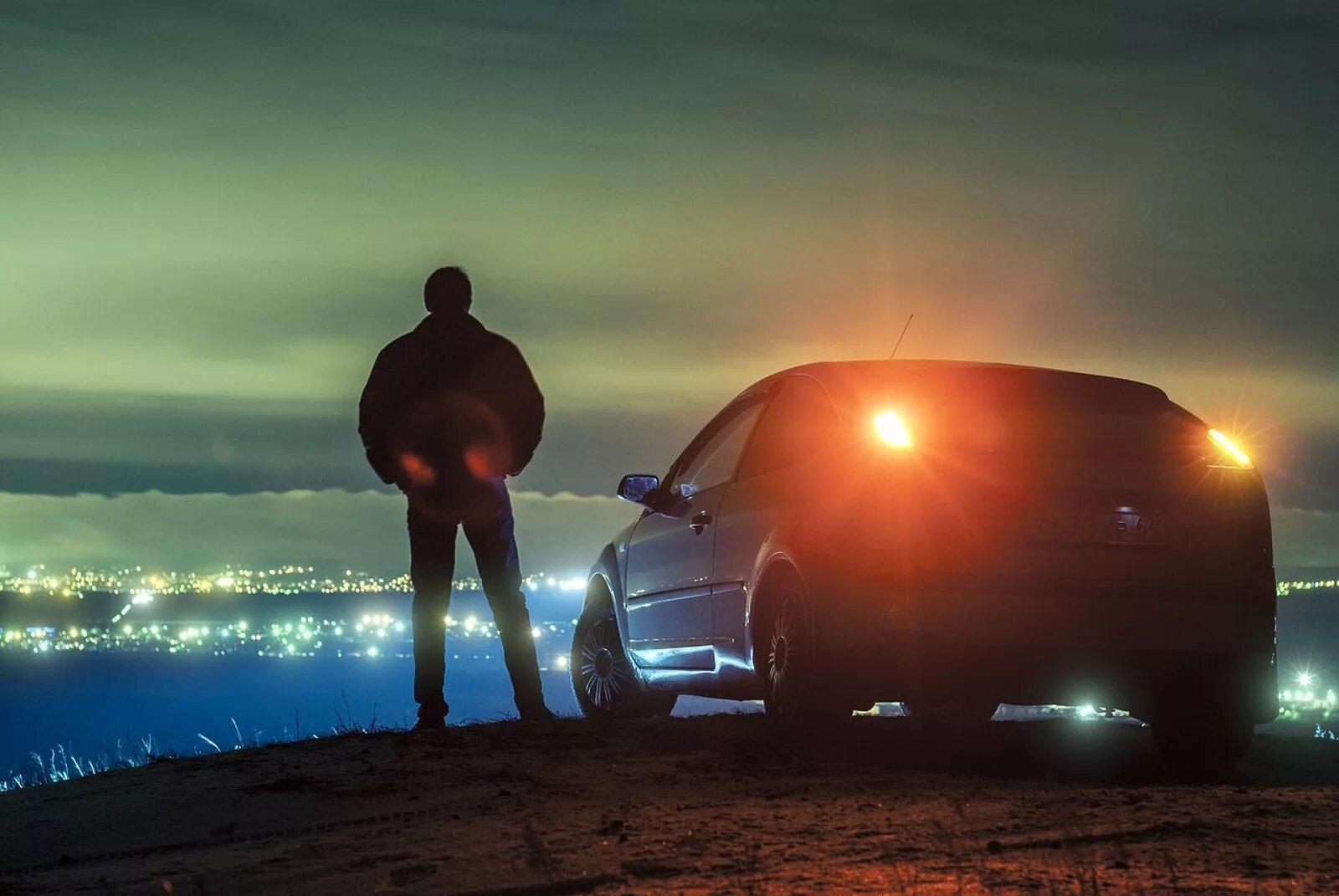 Парень возле машины ночью