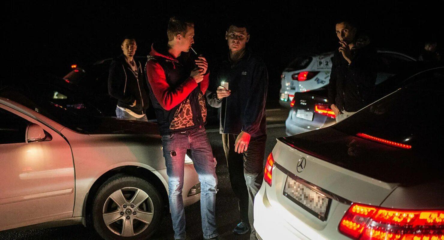 Пацаны возле машины ночью