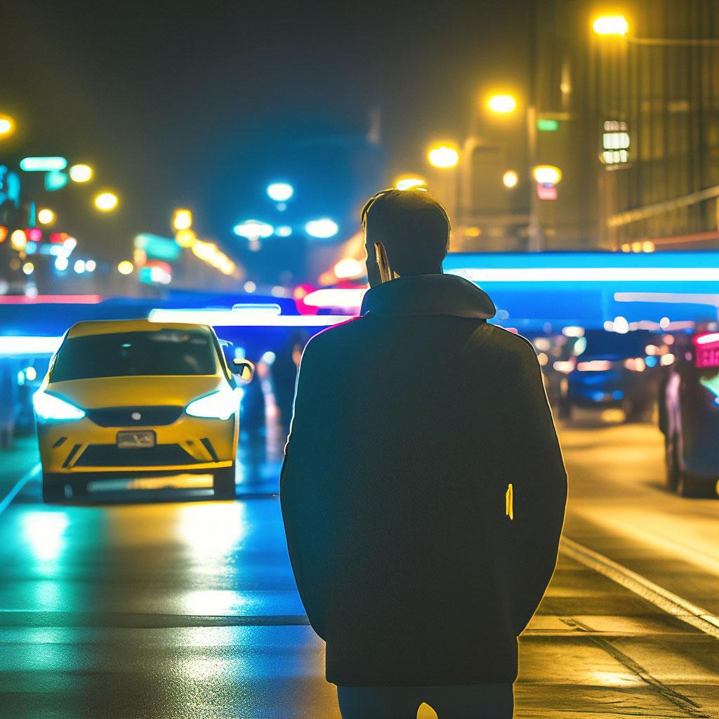 Фотография Человек на ночной дороге