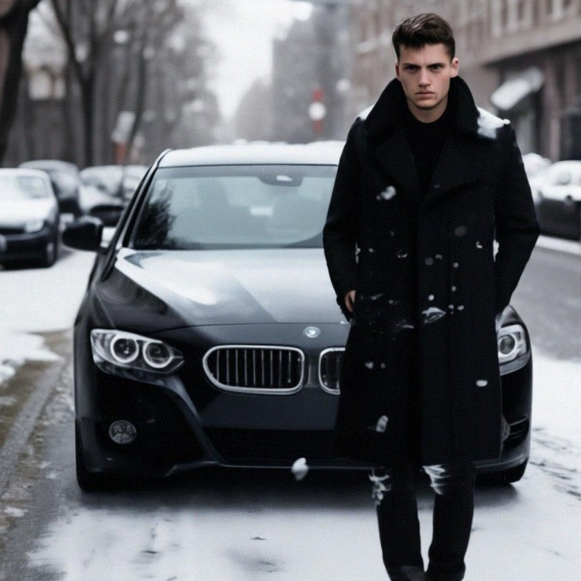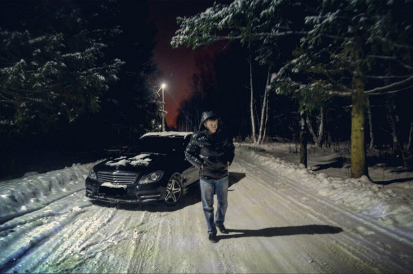 Парень с машиной зимой