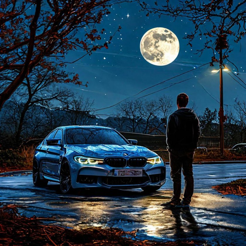 ![БМВ е60 в темноте]()