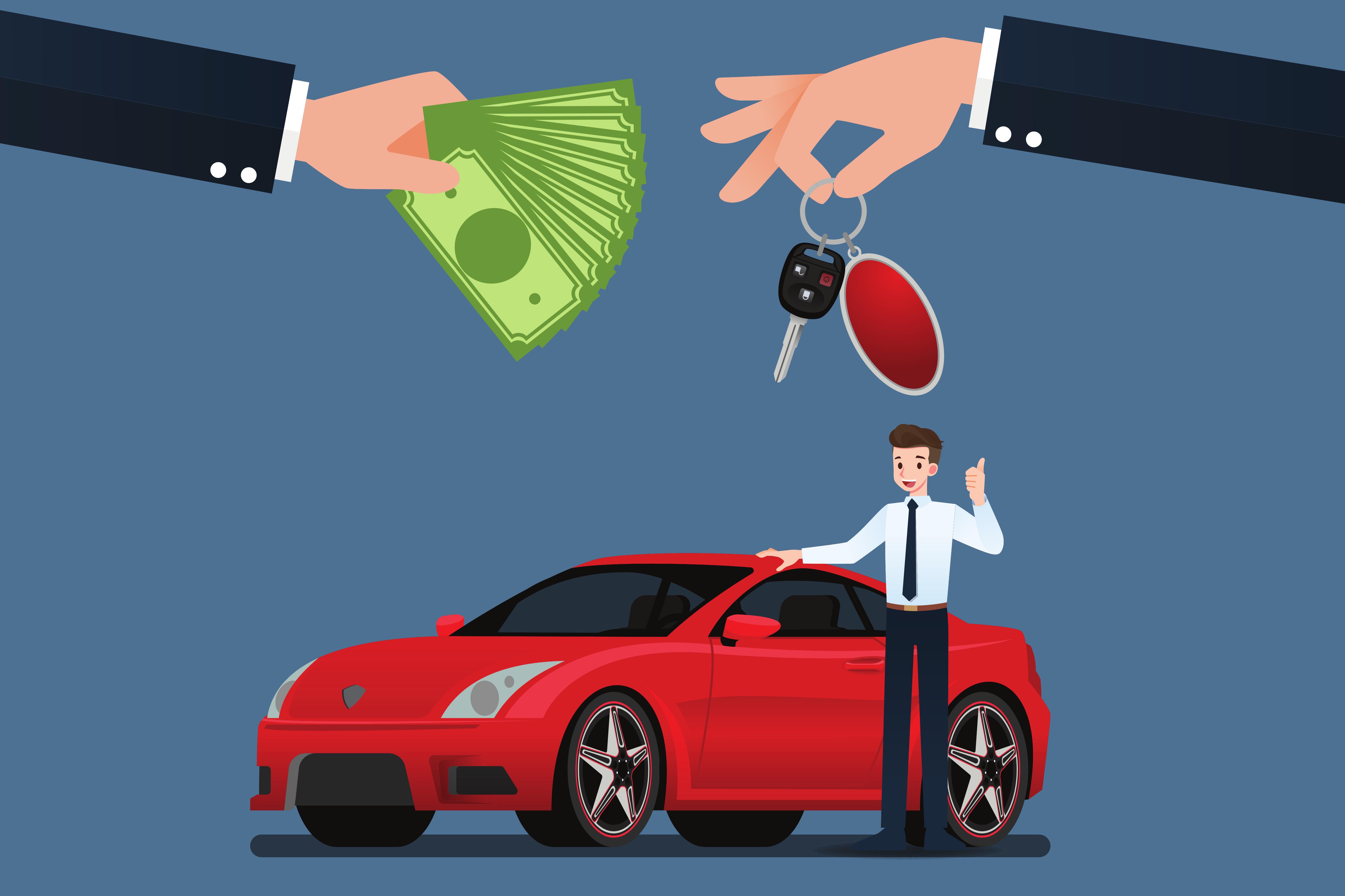 Женщина продает машину
