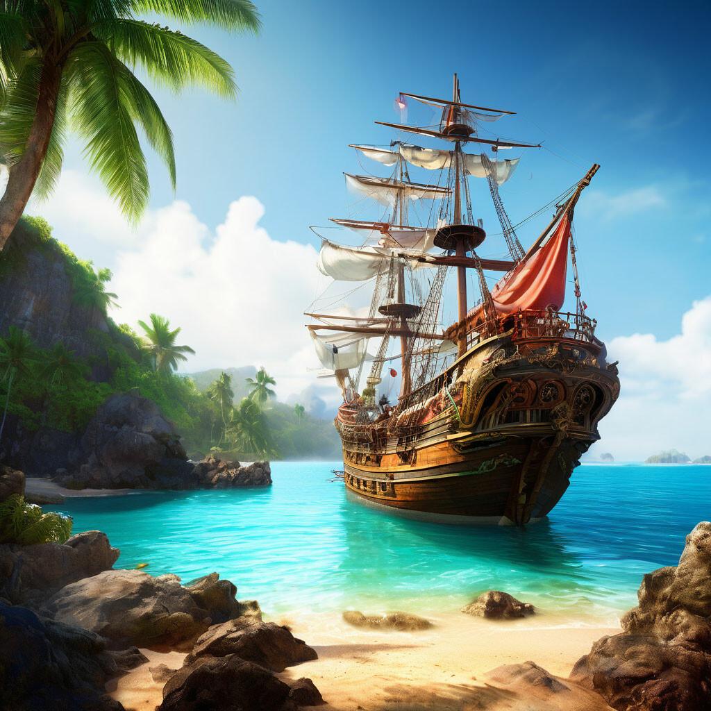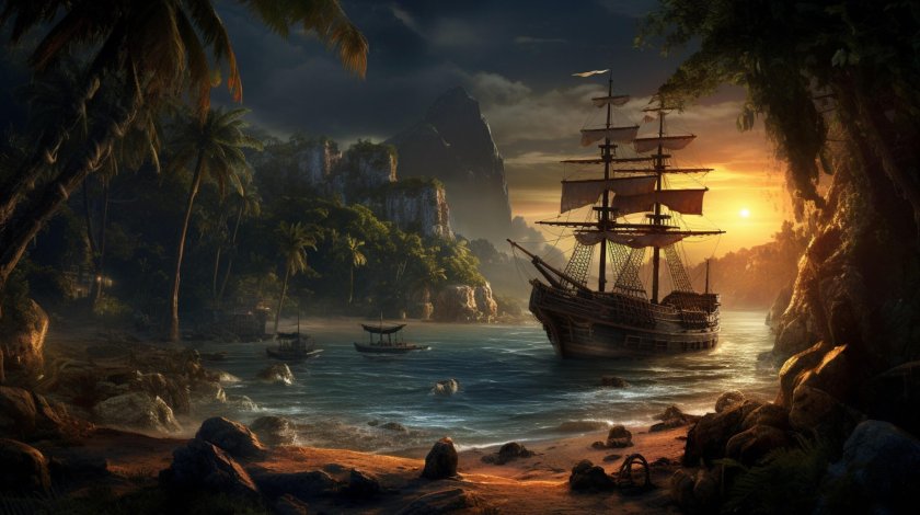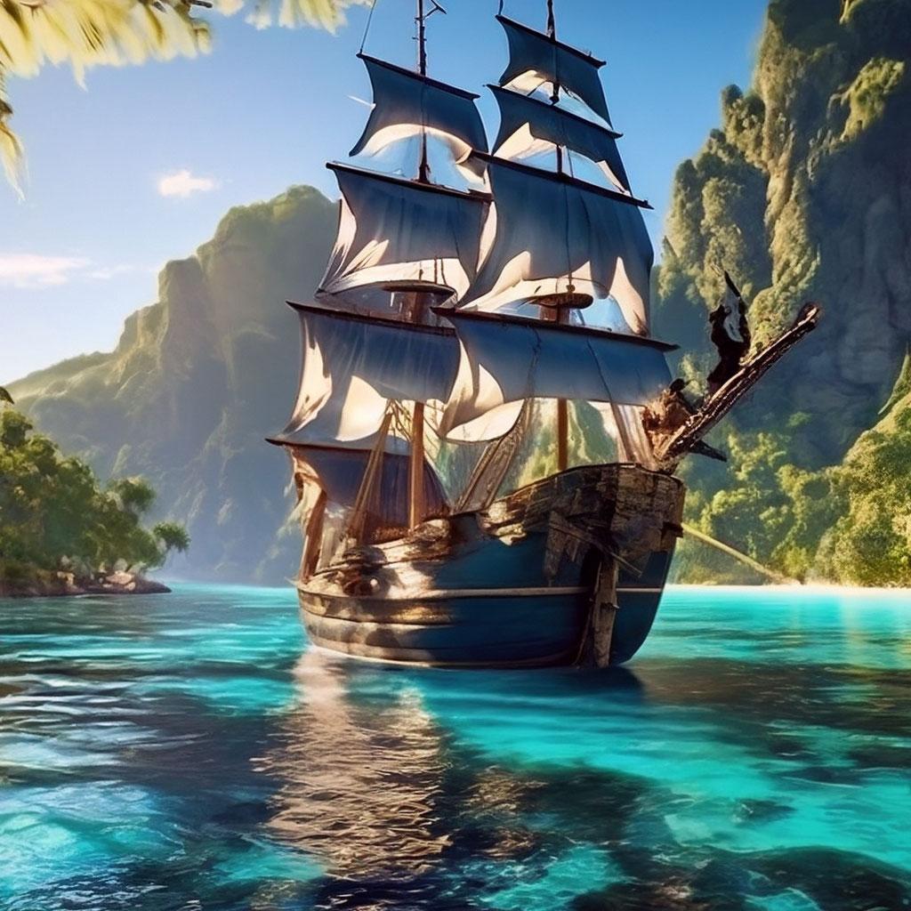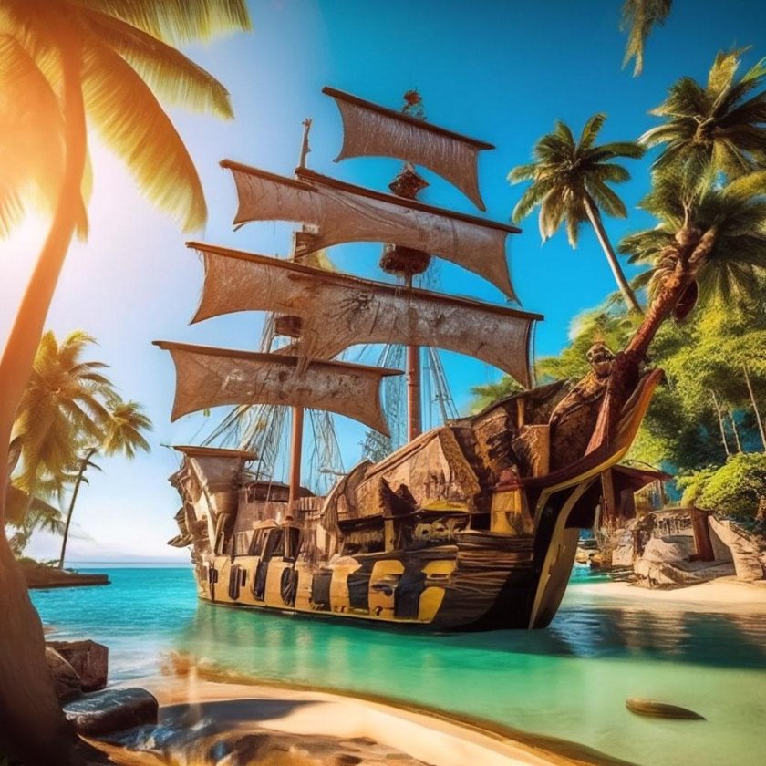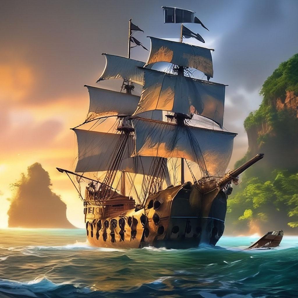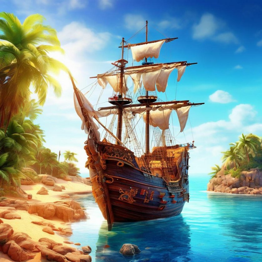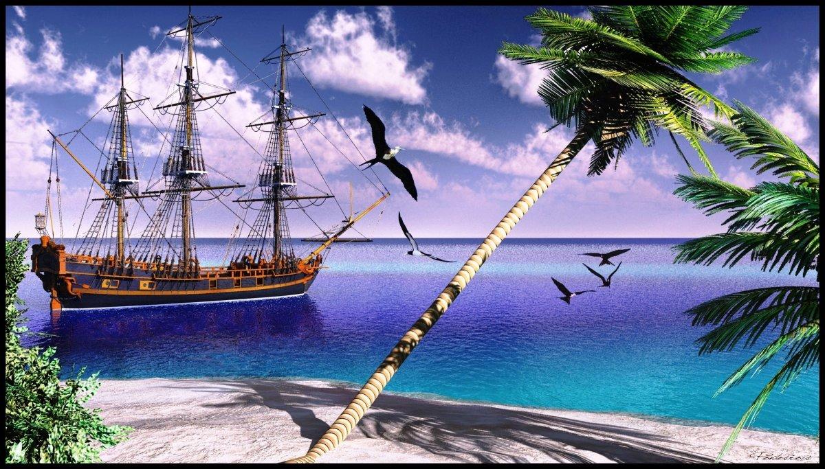 Пиратский корабль и остров