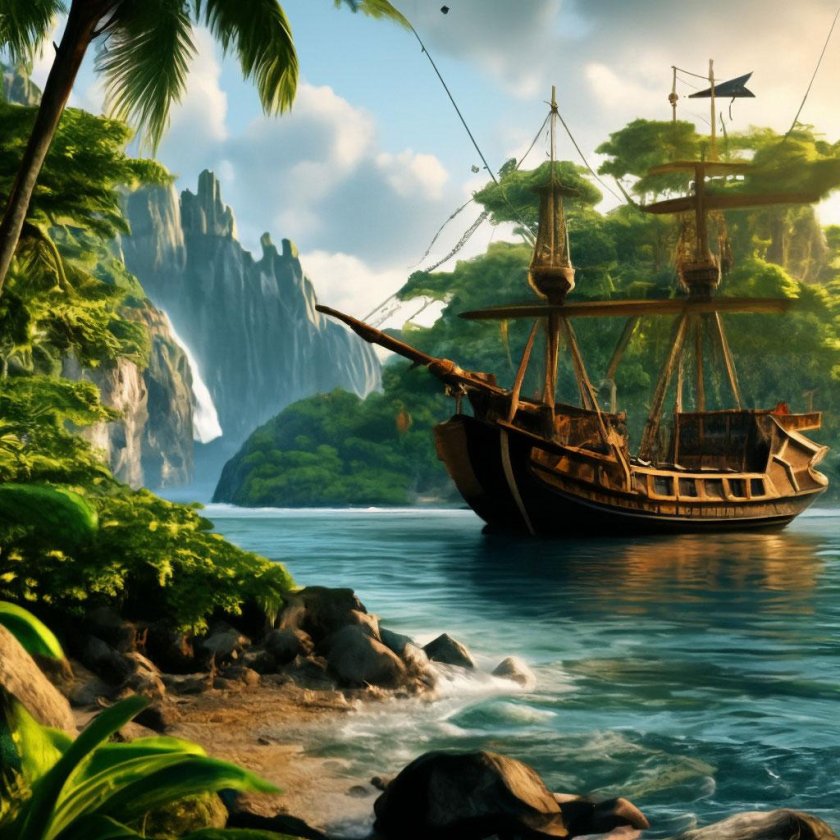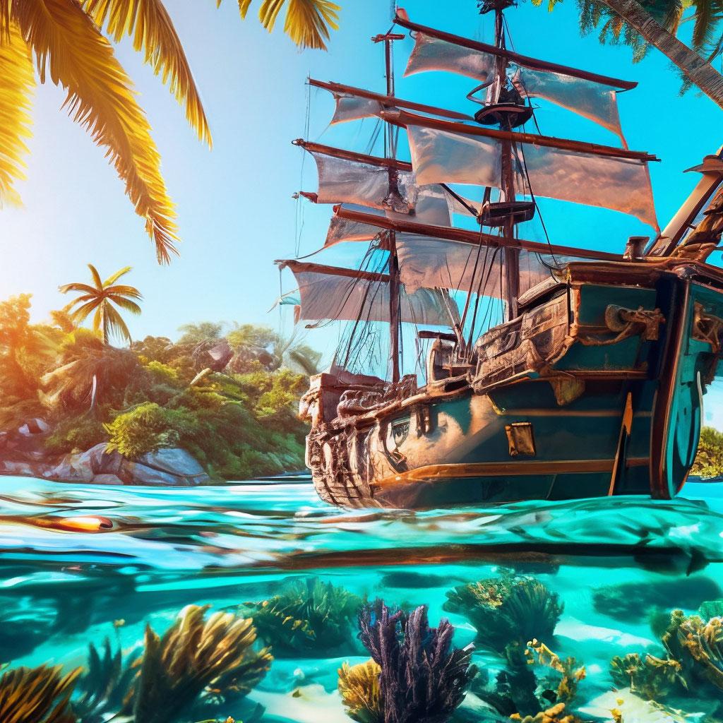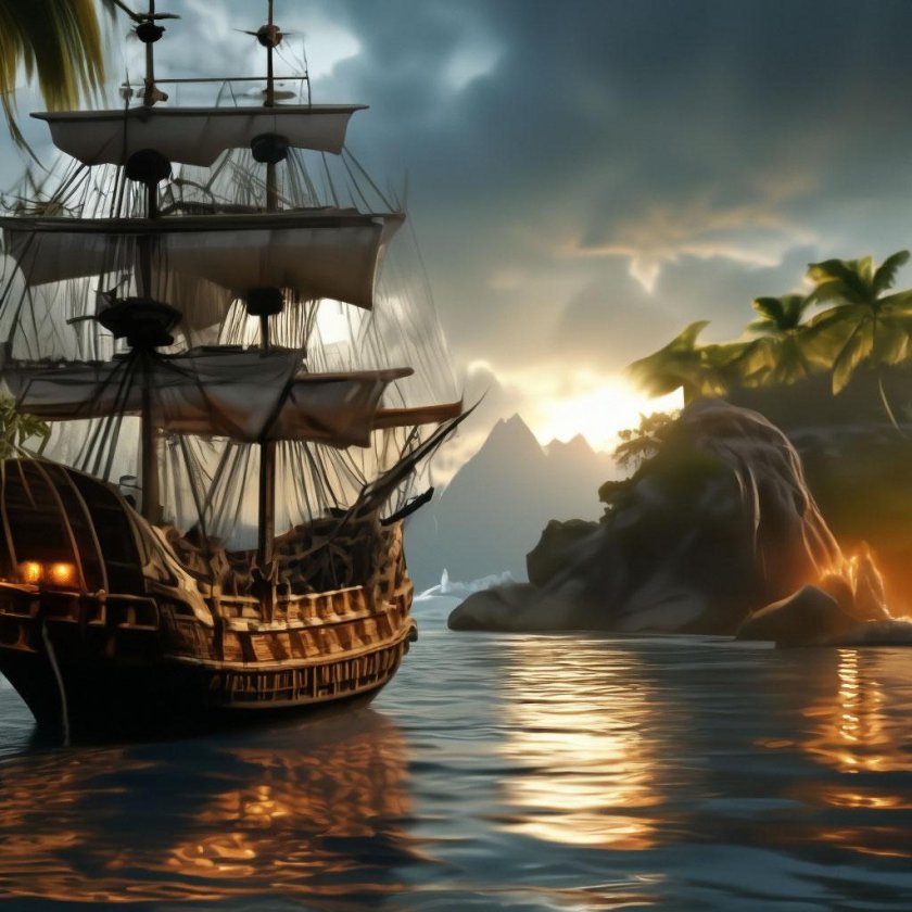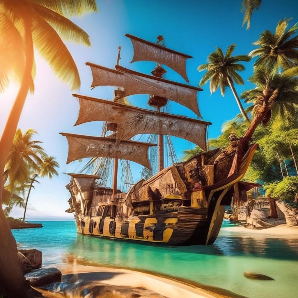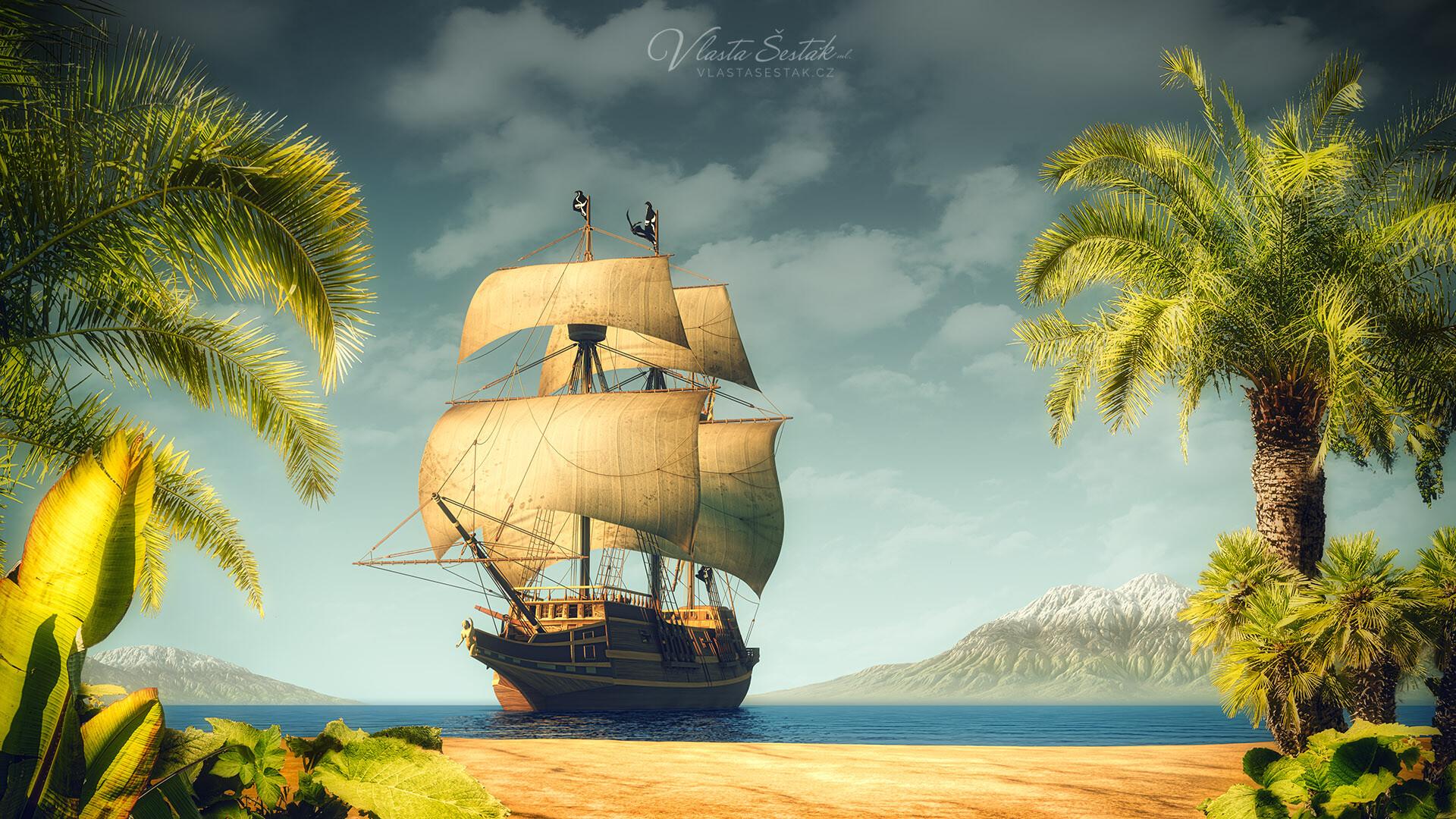 Пиратский корабль и остров