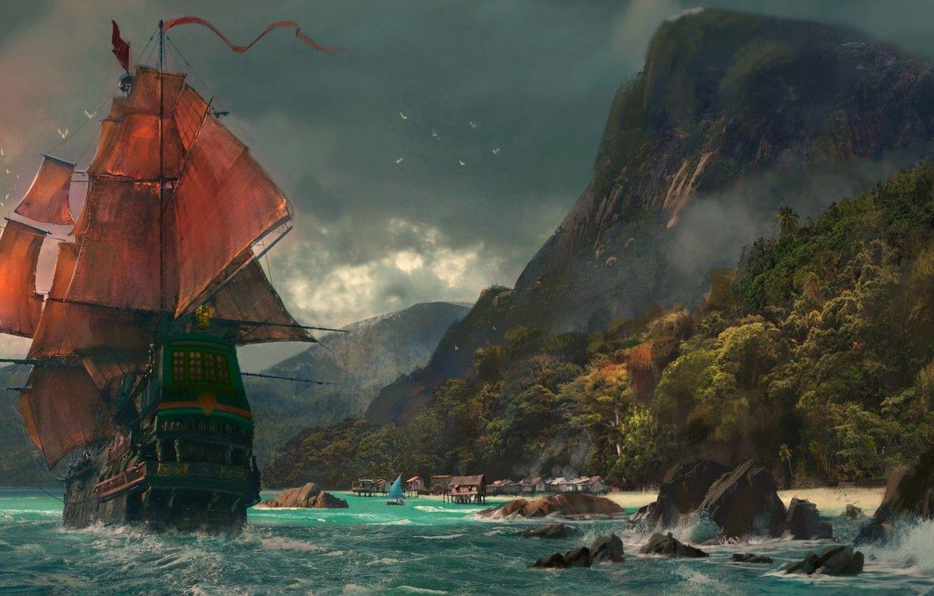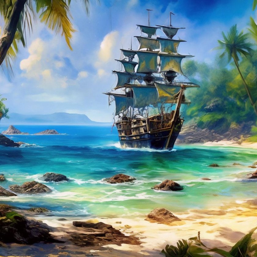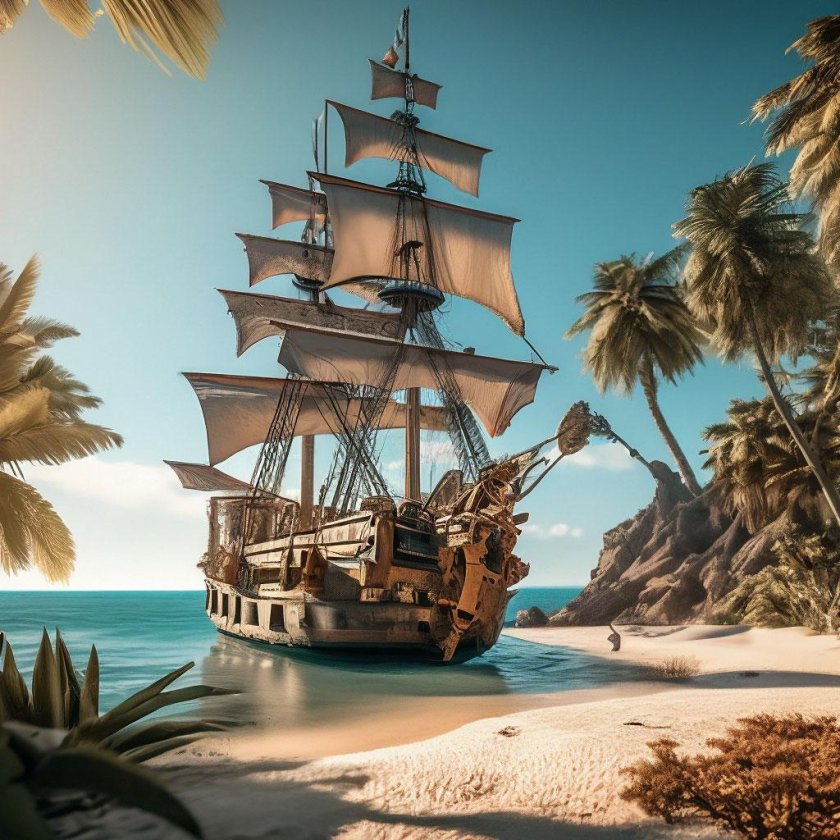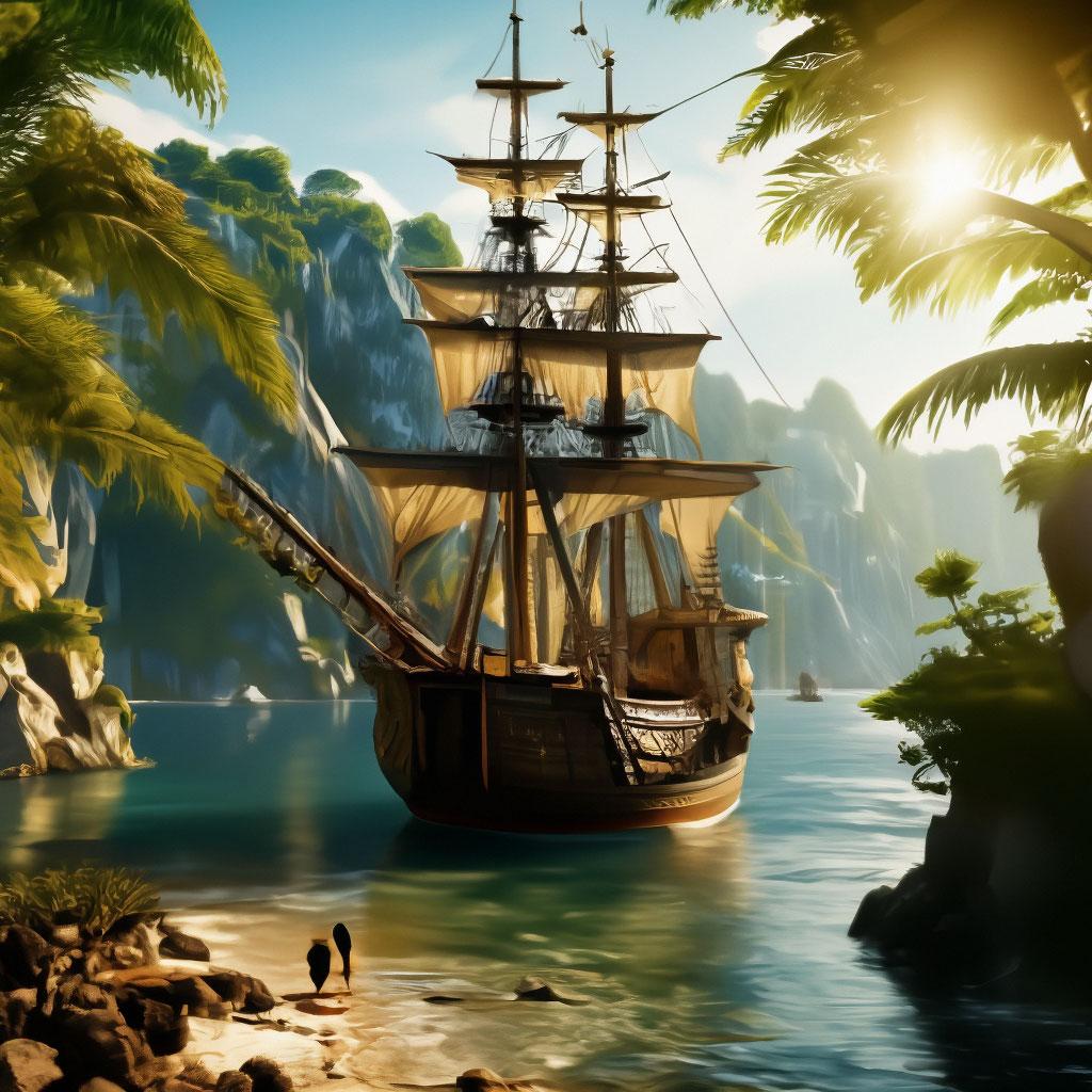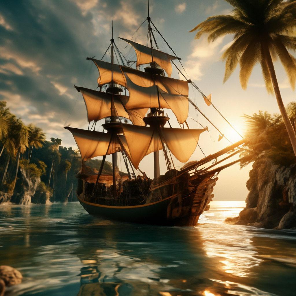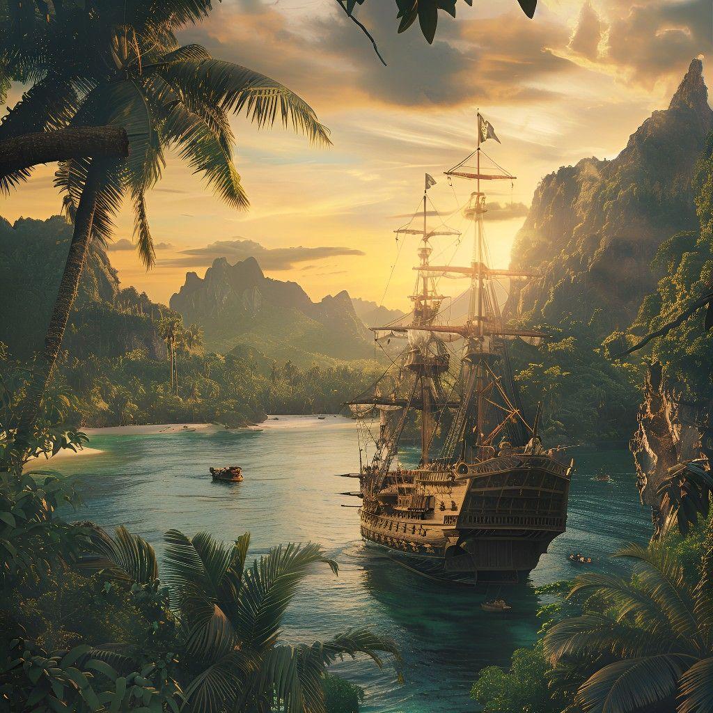 Пиратский корабль и остров