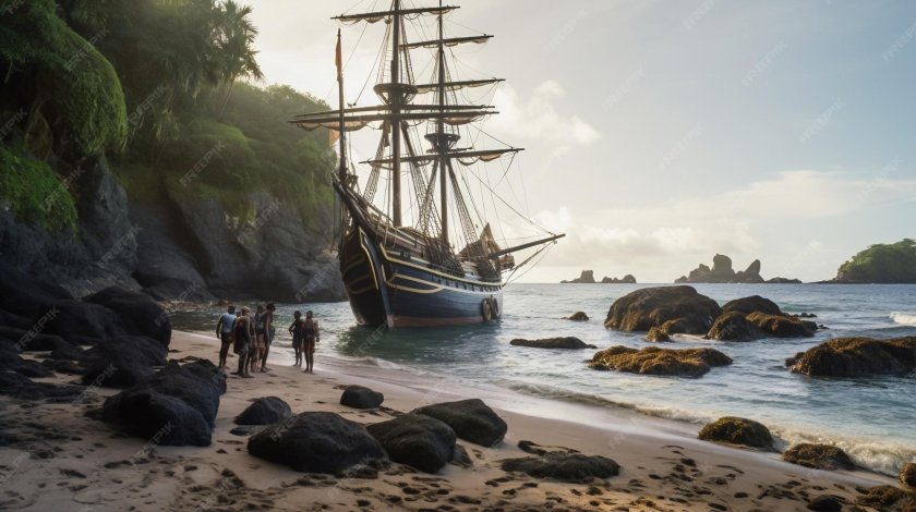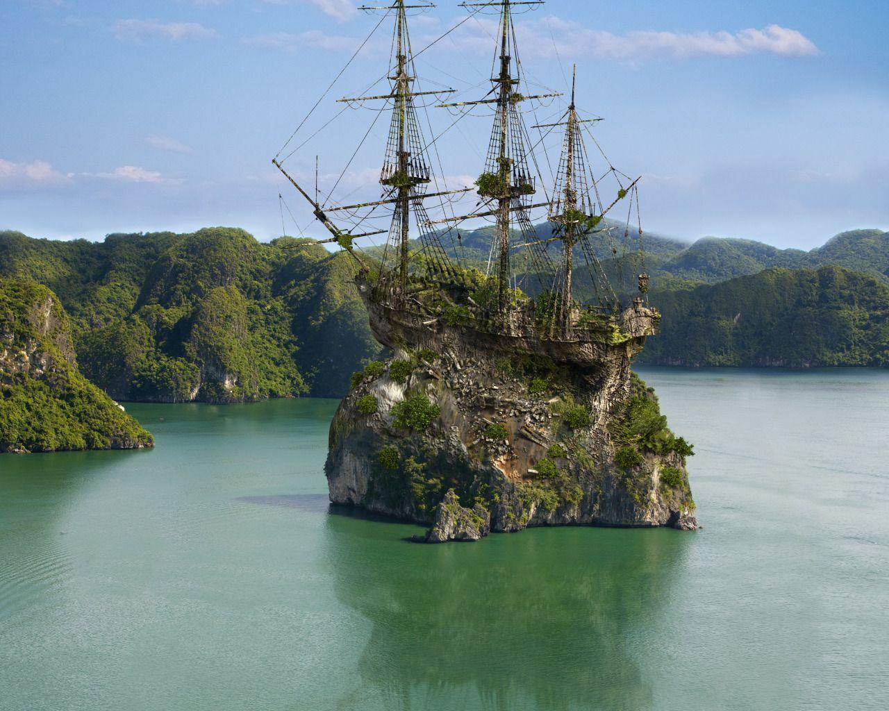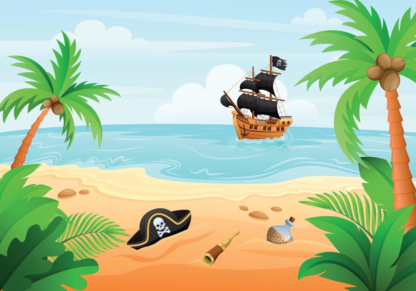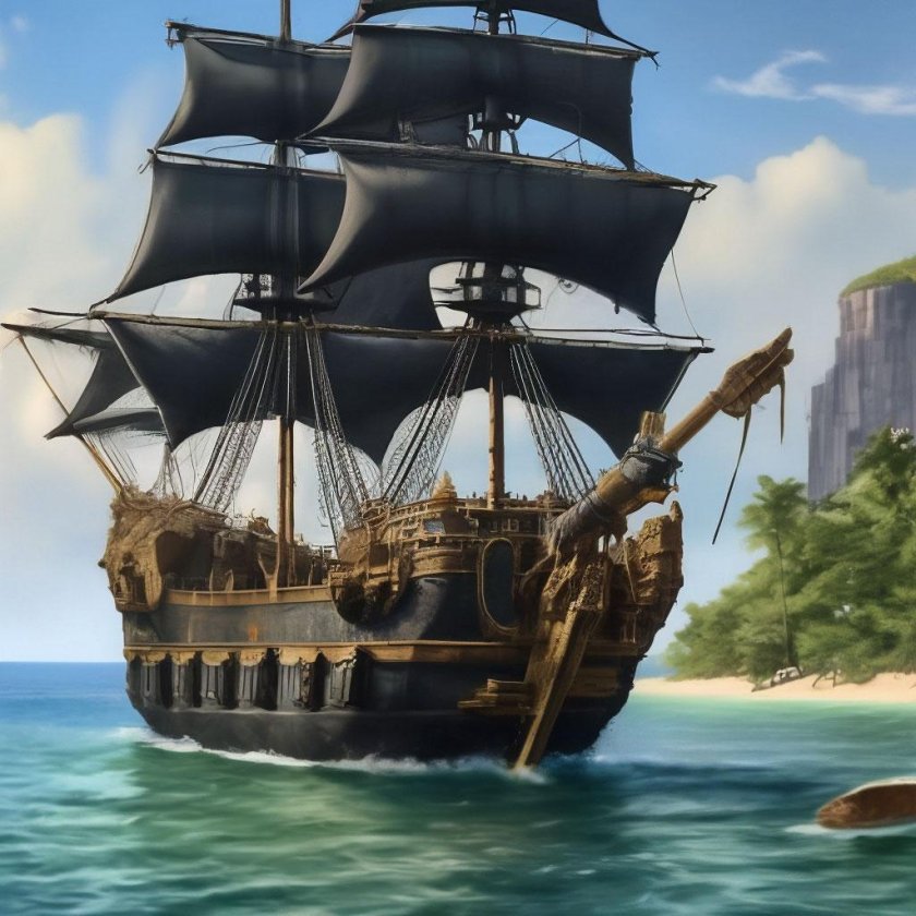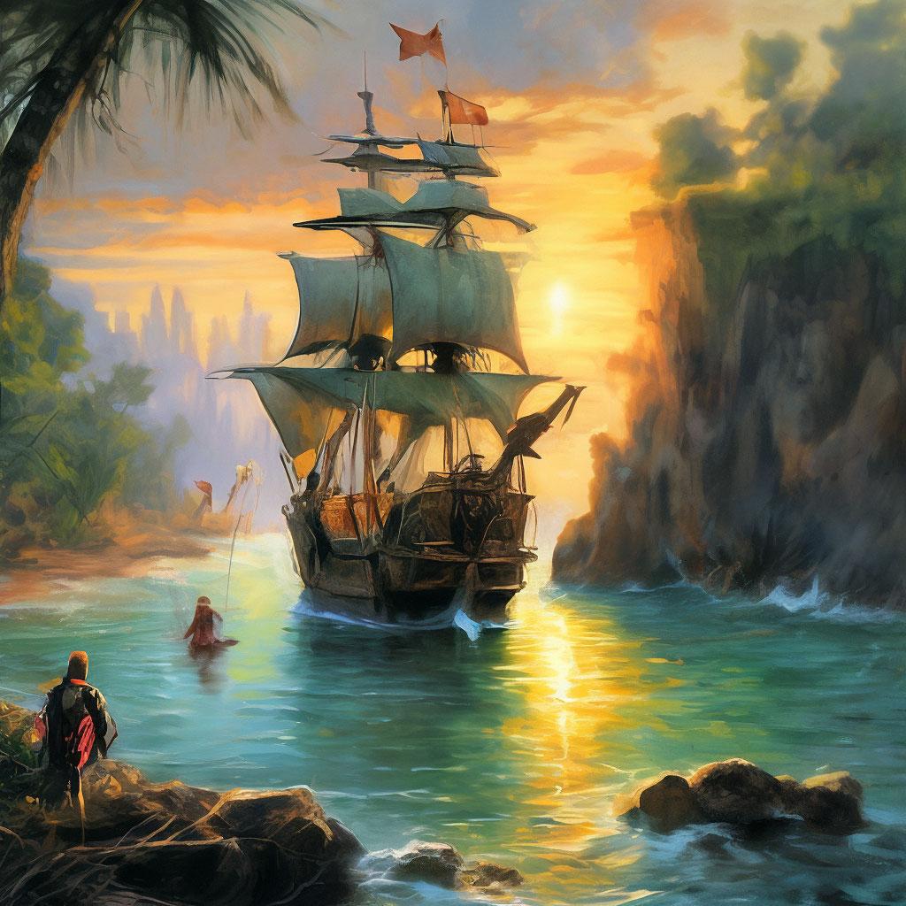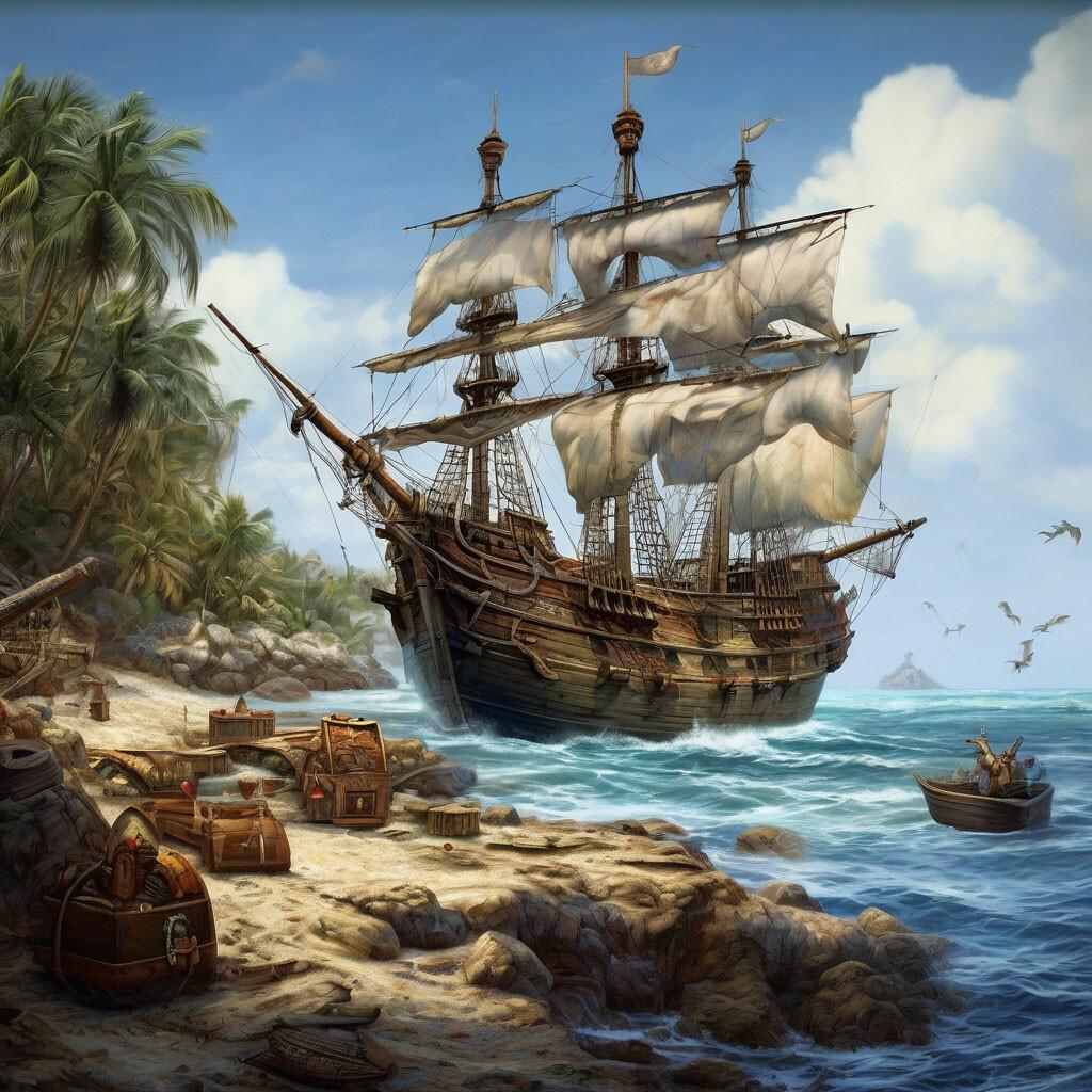 Пиратский корабль и остров
