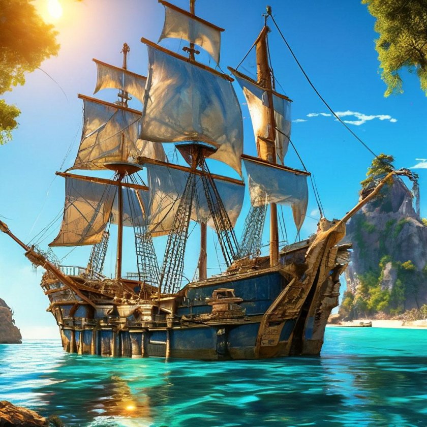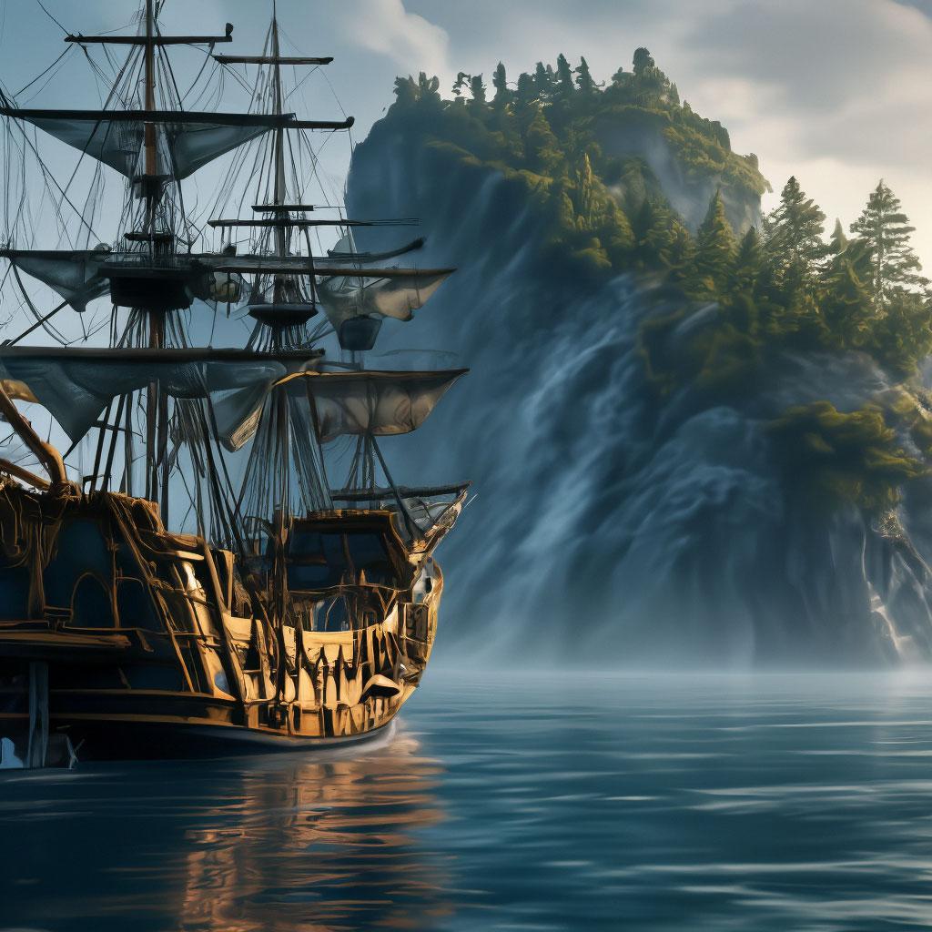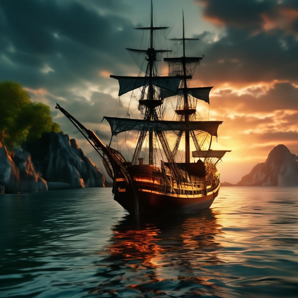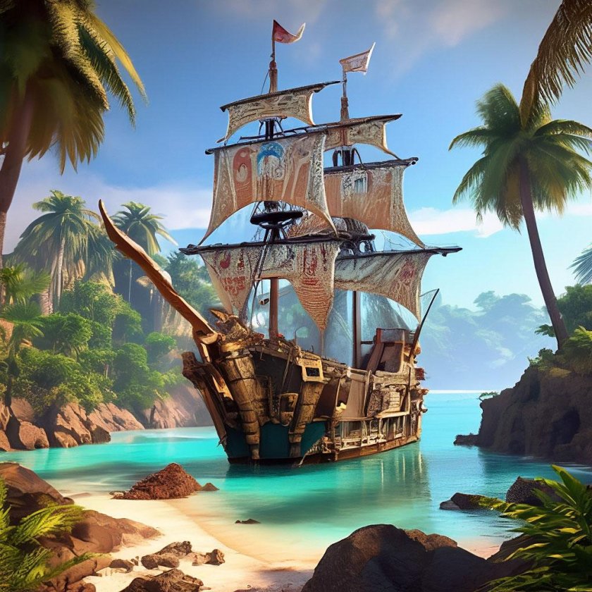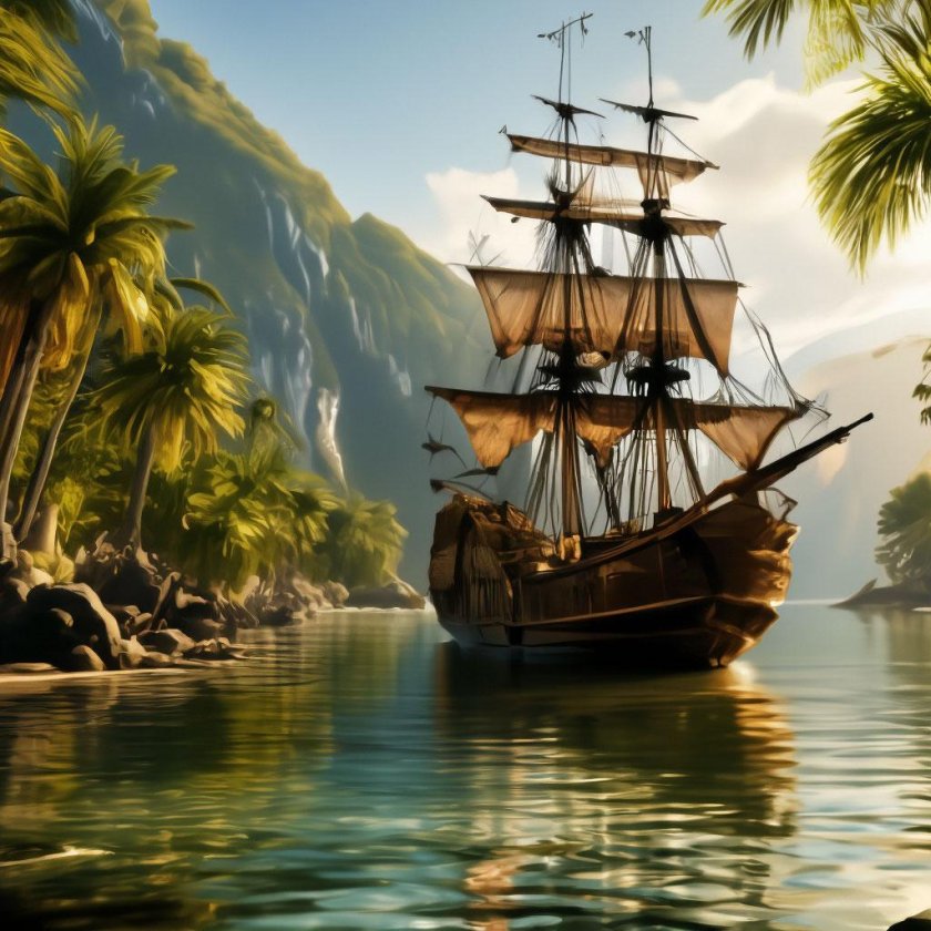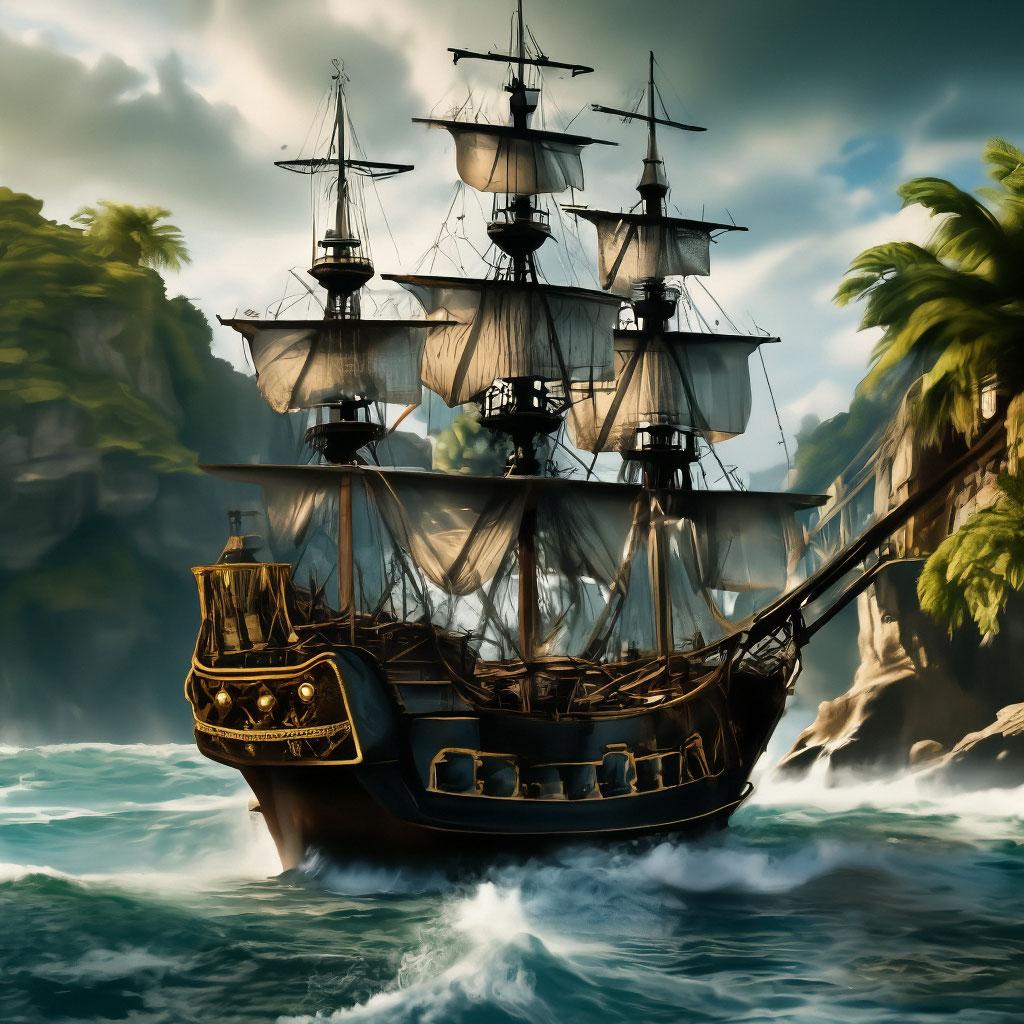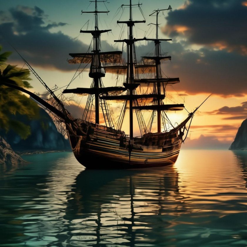 Пиратский корабль и остров