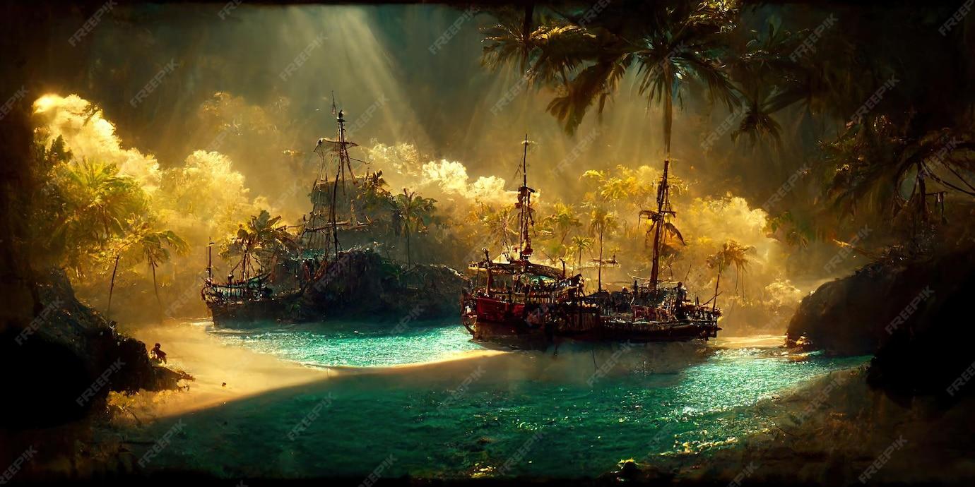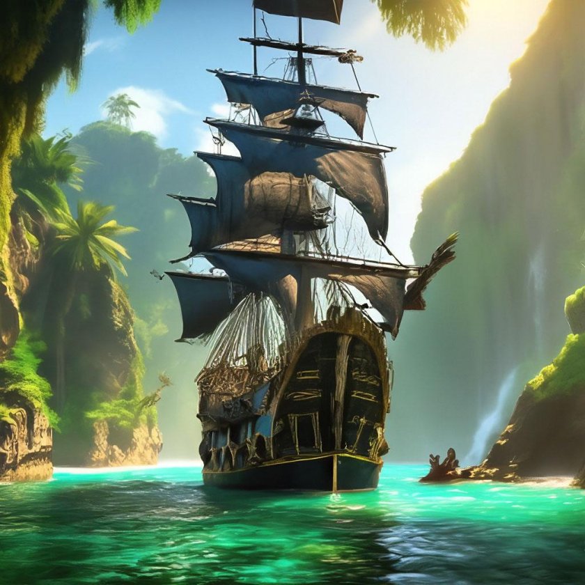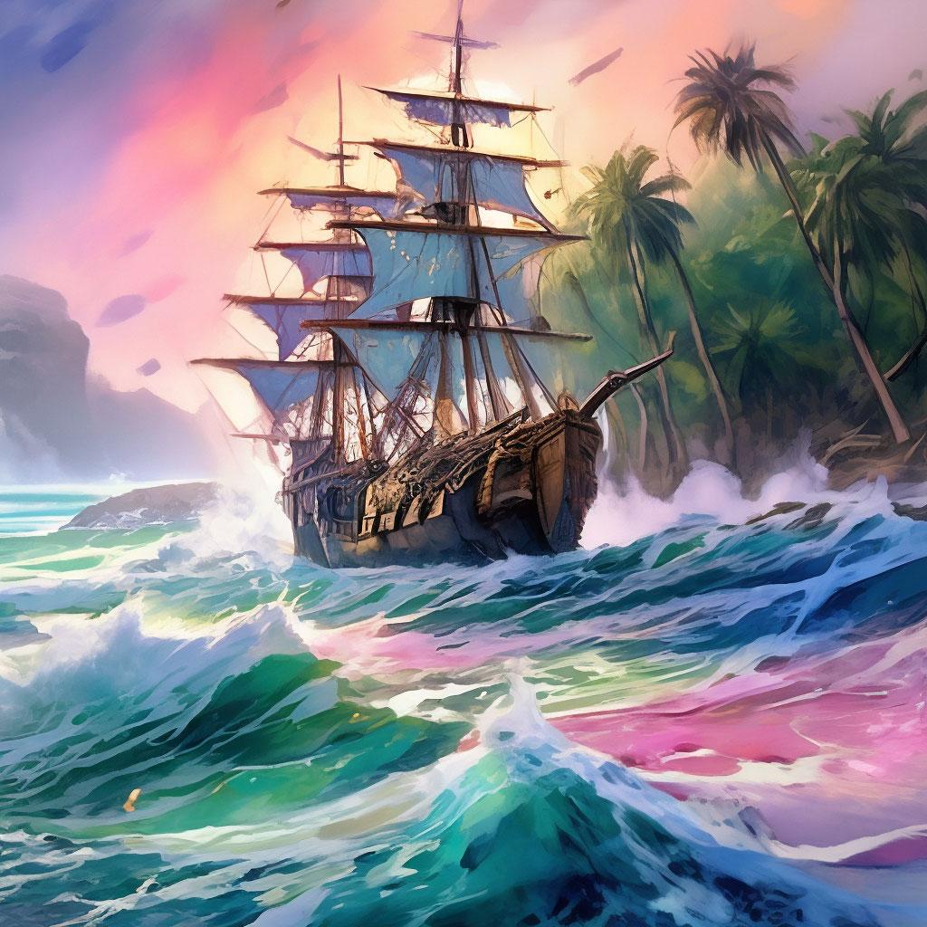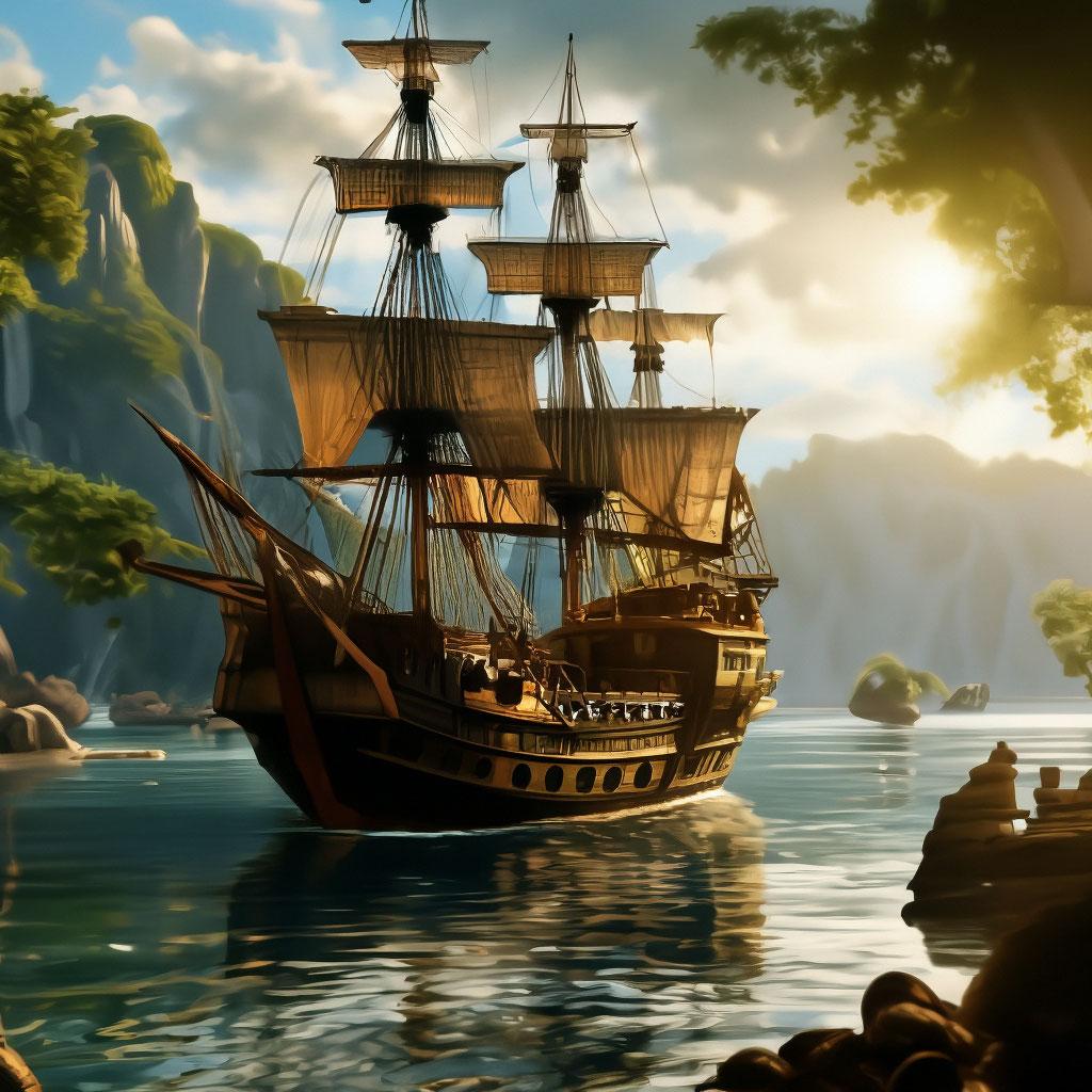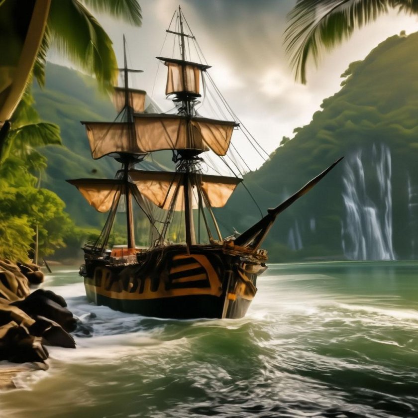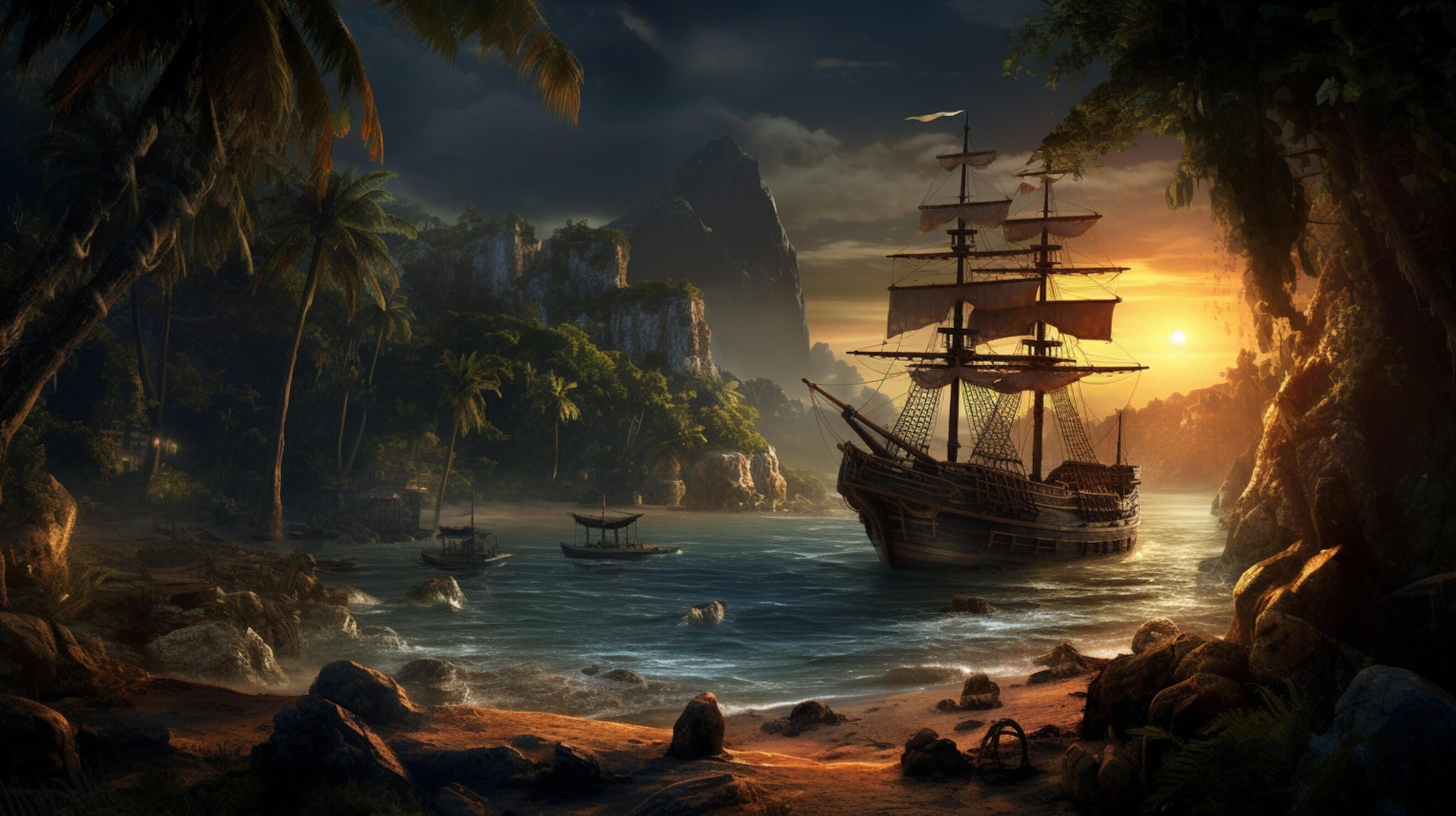 Пиратский корабль и остров