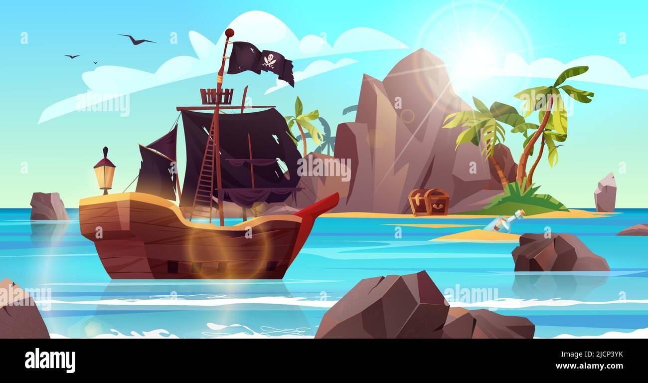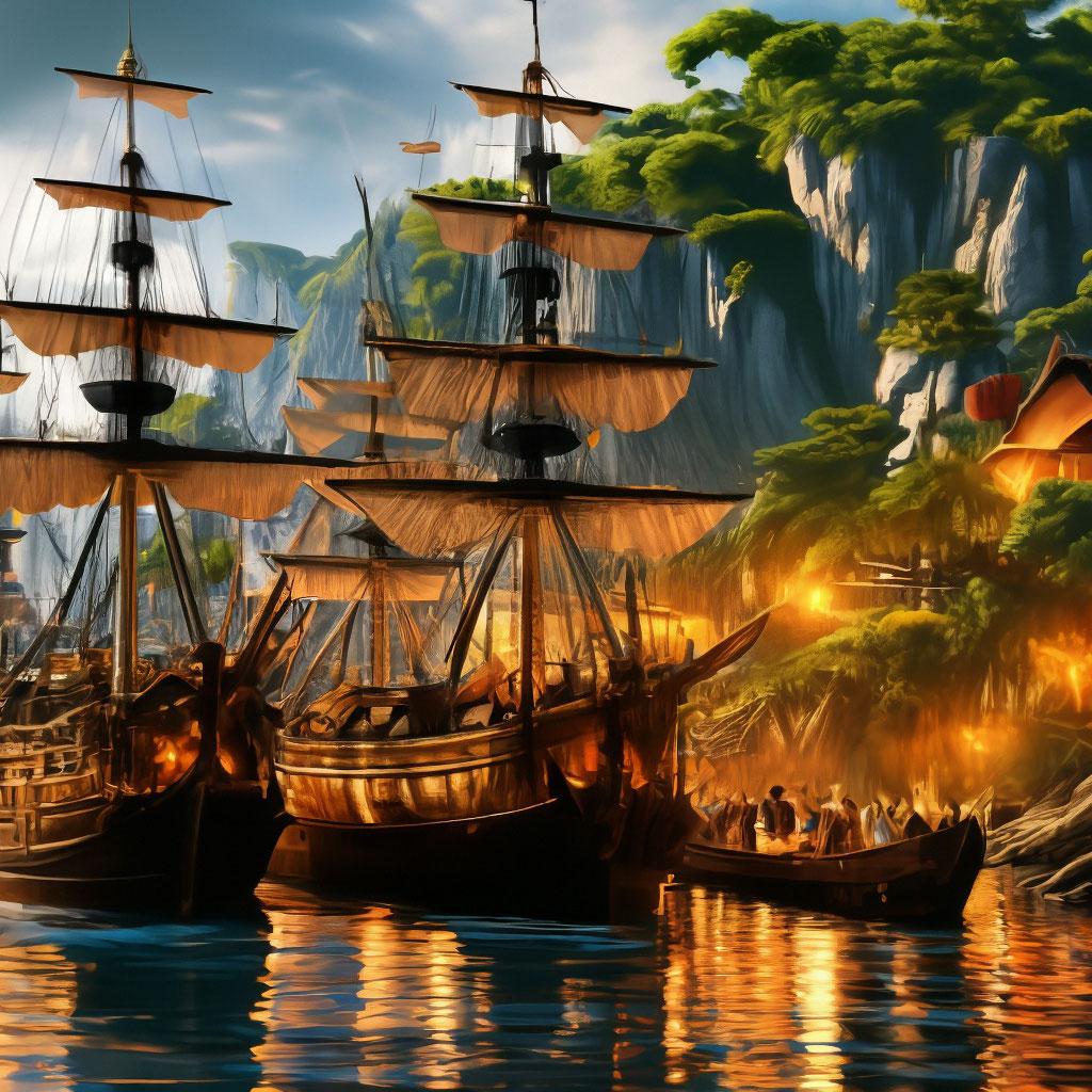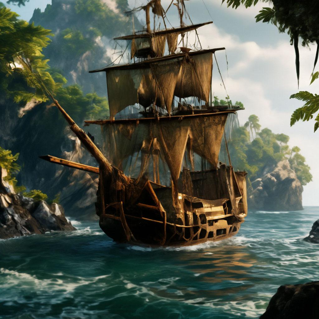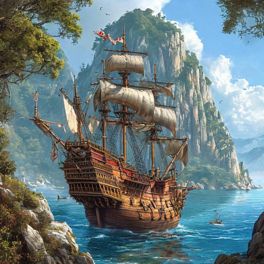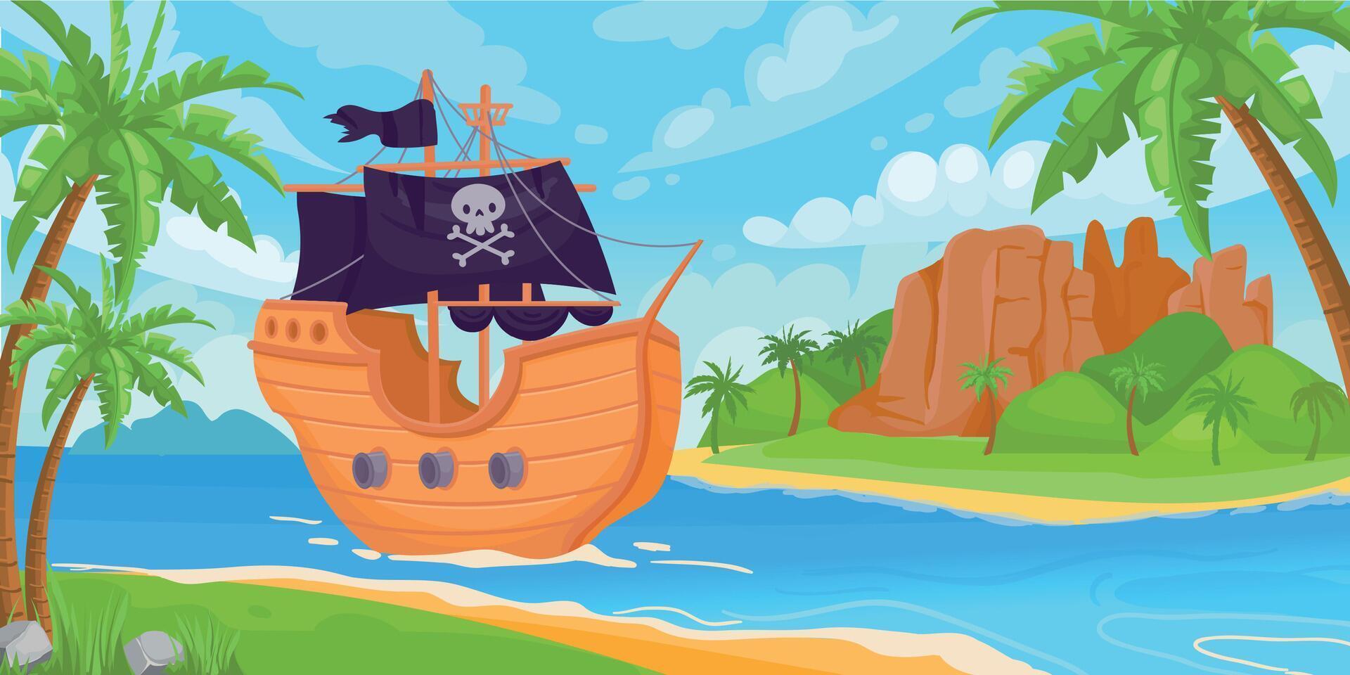 Пиратский корабль и остров