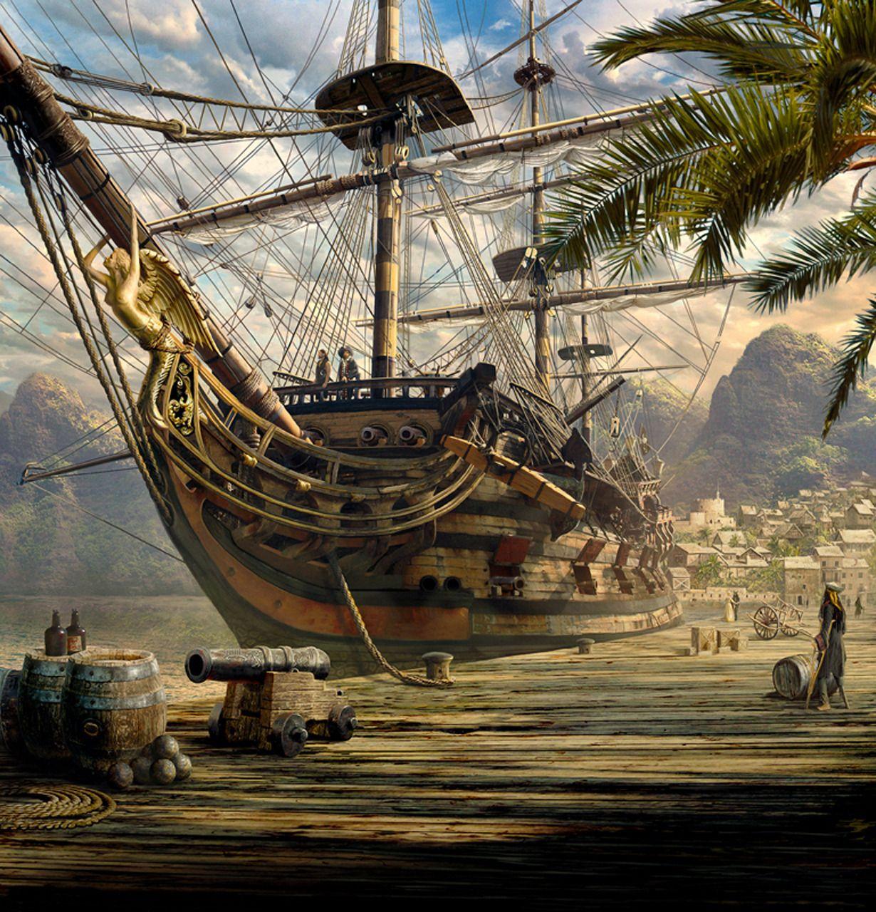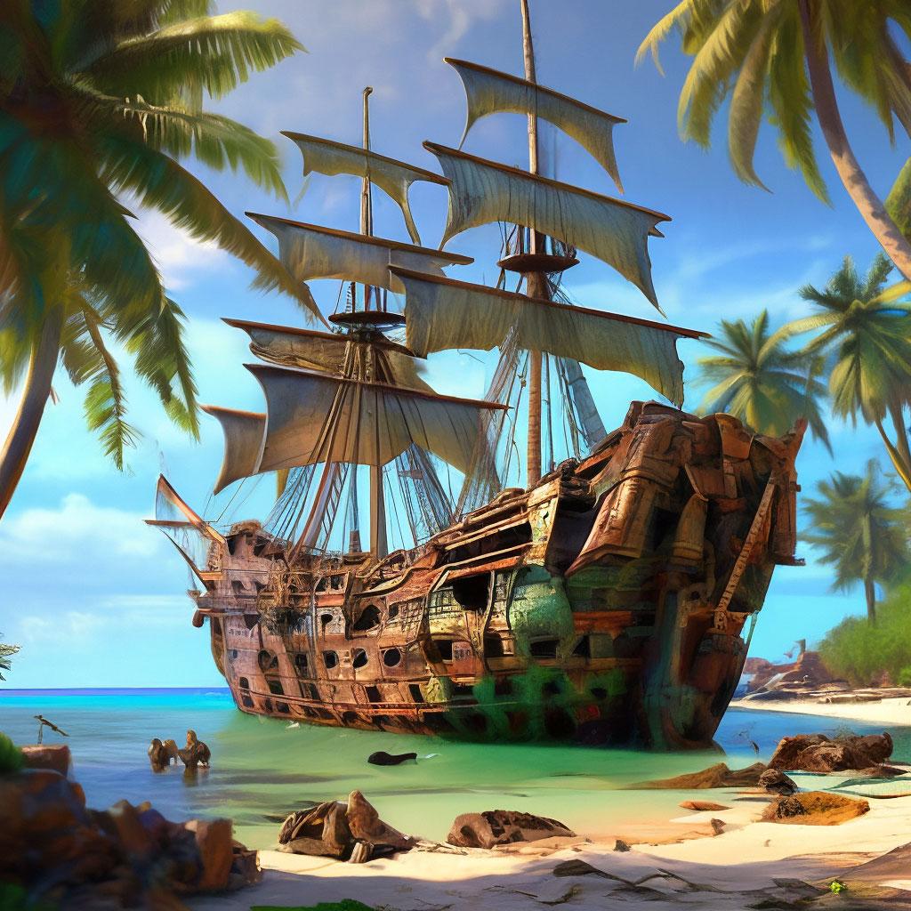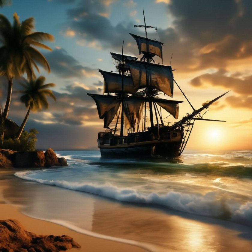 Пиратский корабль на берегу