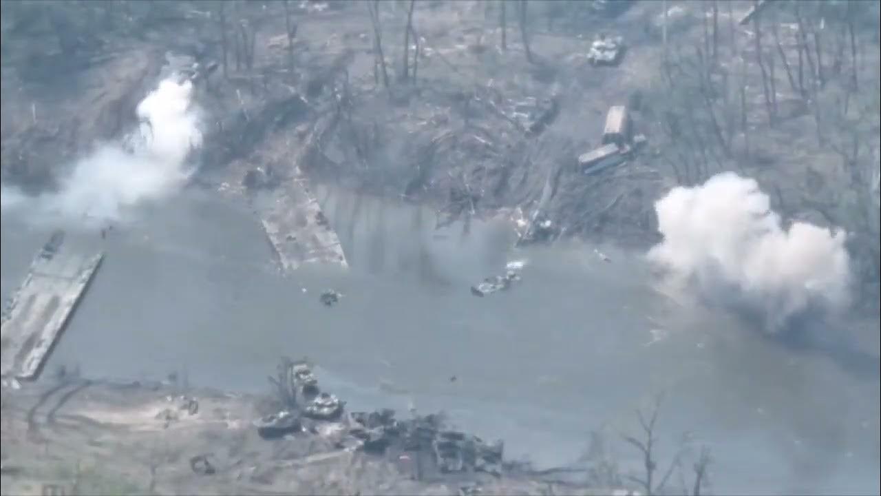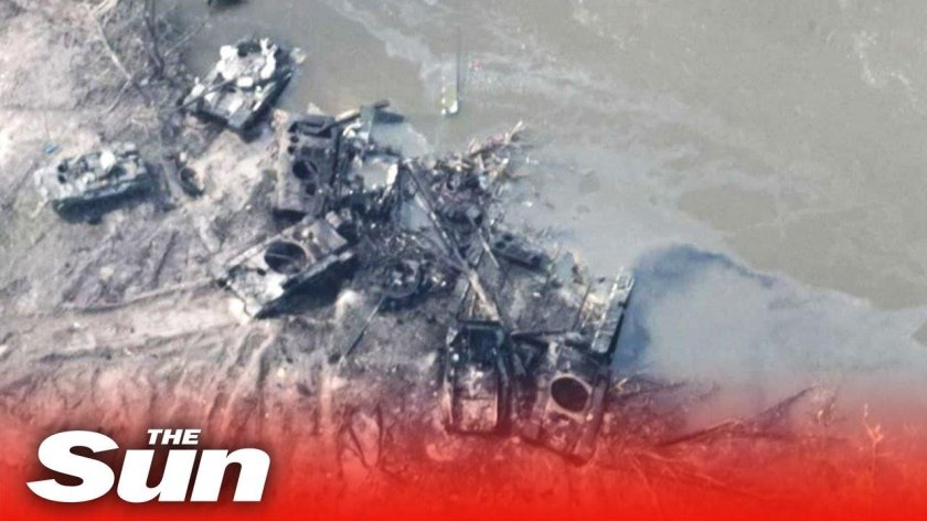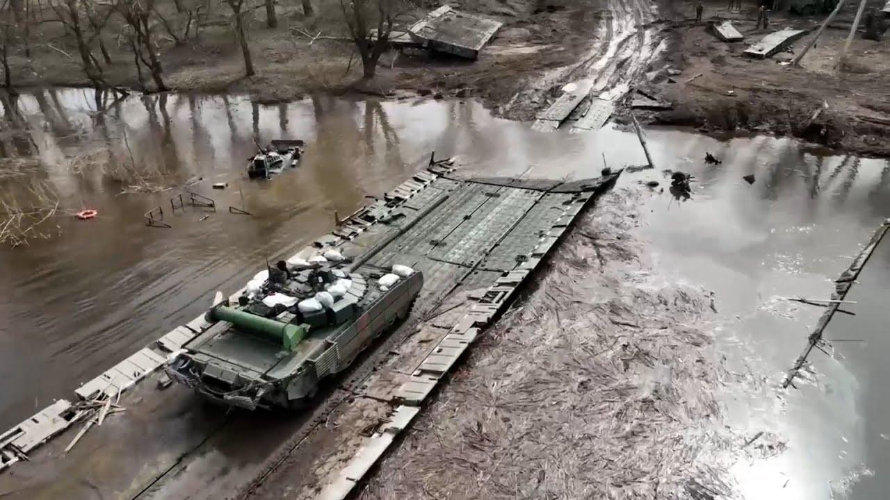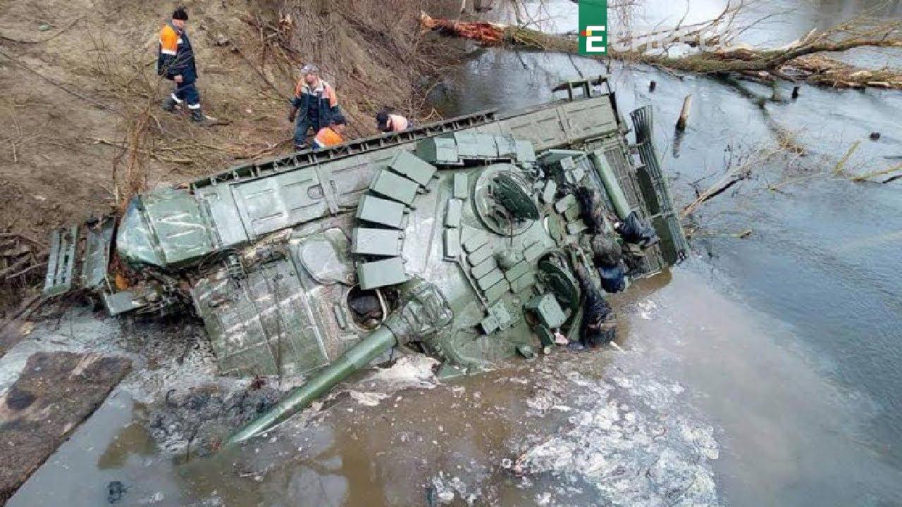Разбитая колонна танков на переправе в Украине