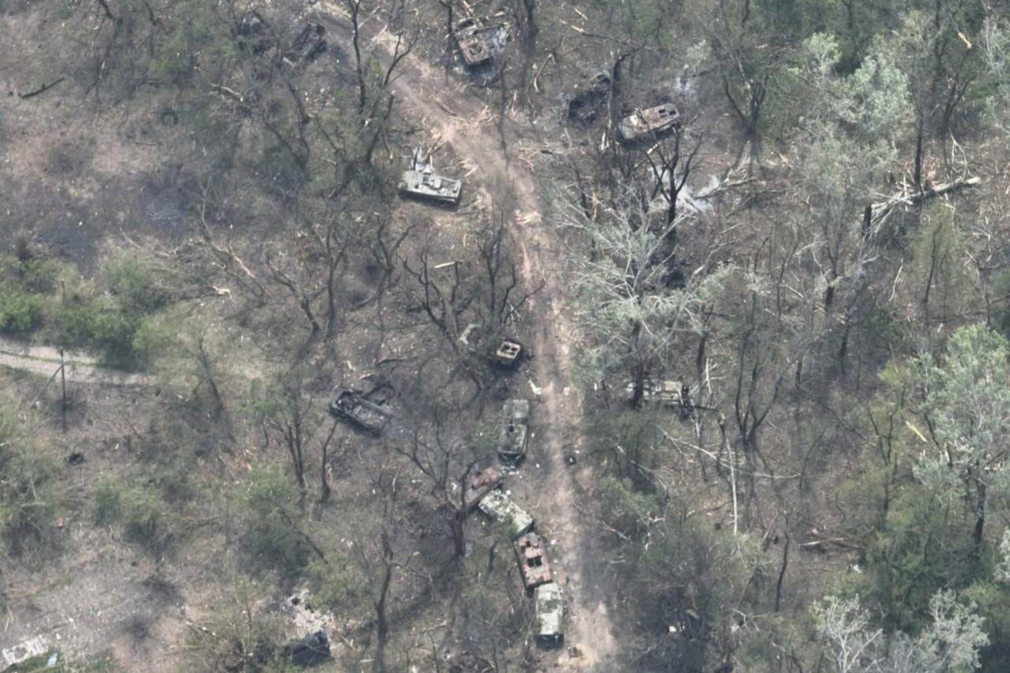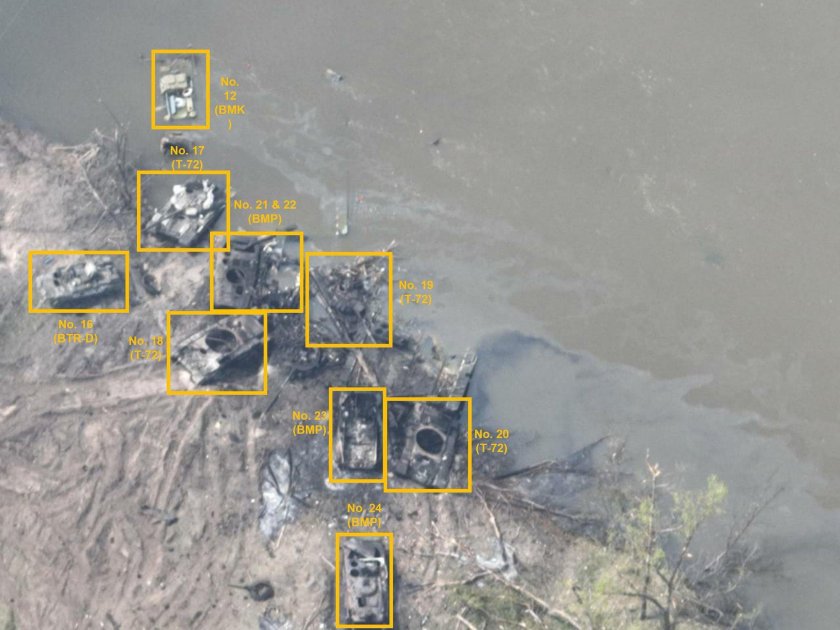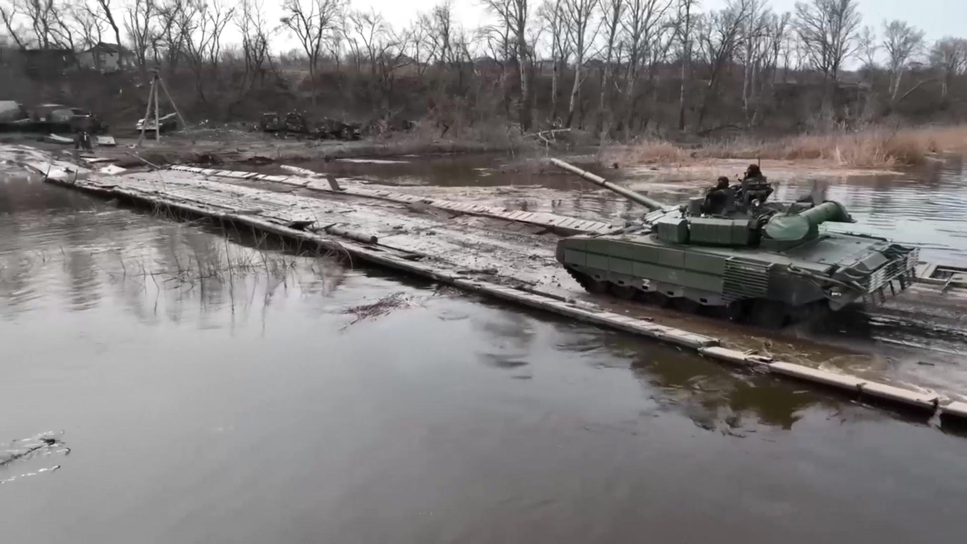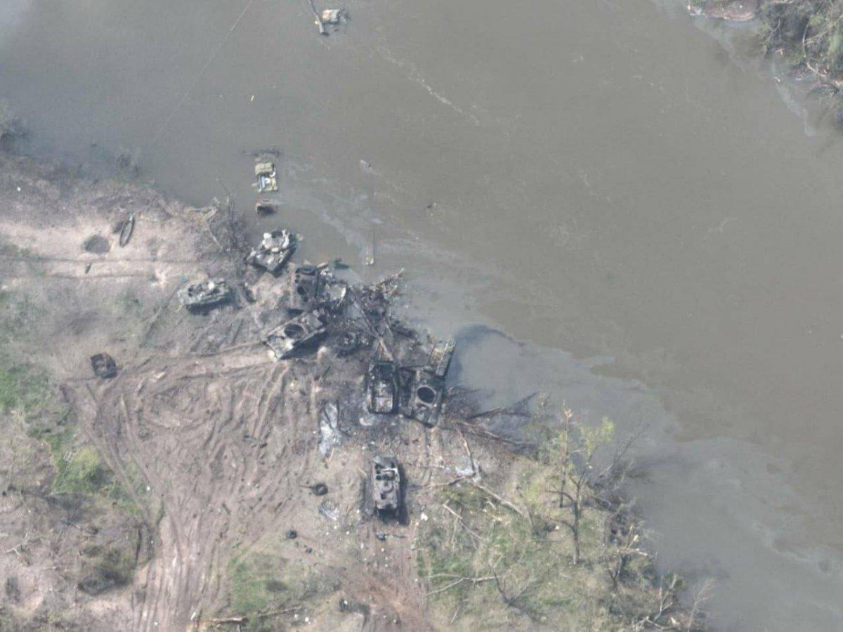 Разбитая колонна танков на переправе в Украине
