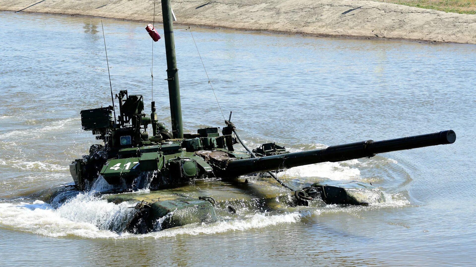 Преодоление водной преграды на танке