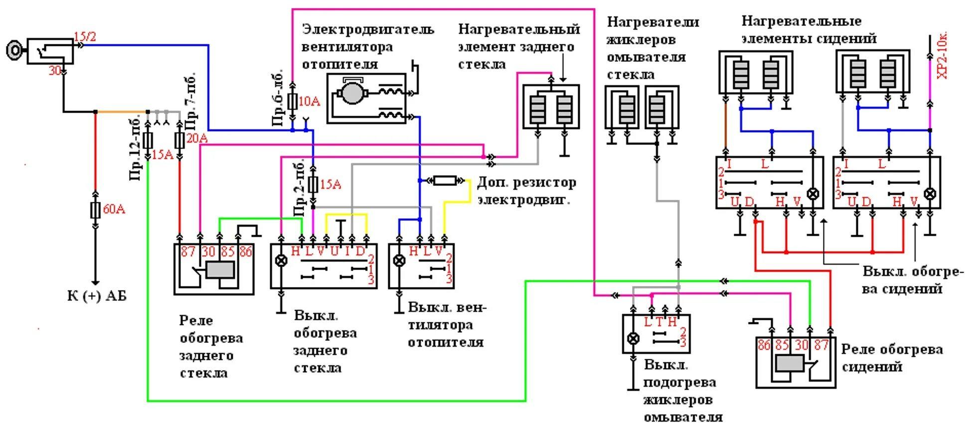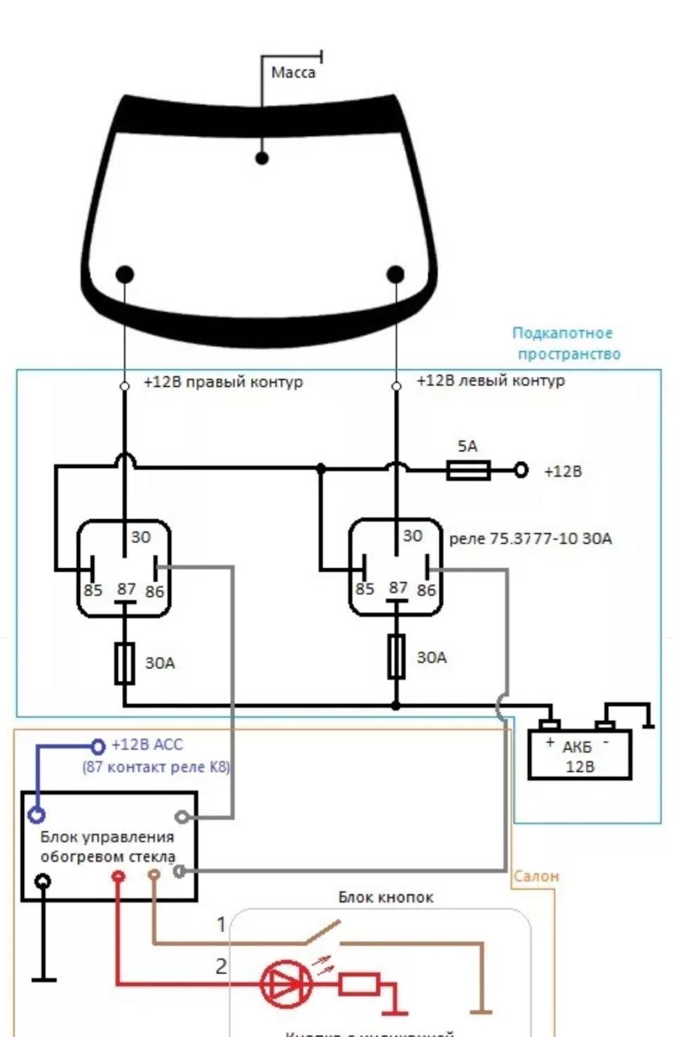 Схема подключения подогрева зоны дворников лобового стекла