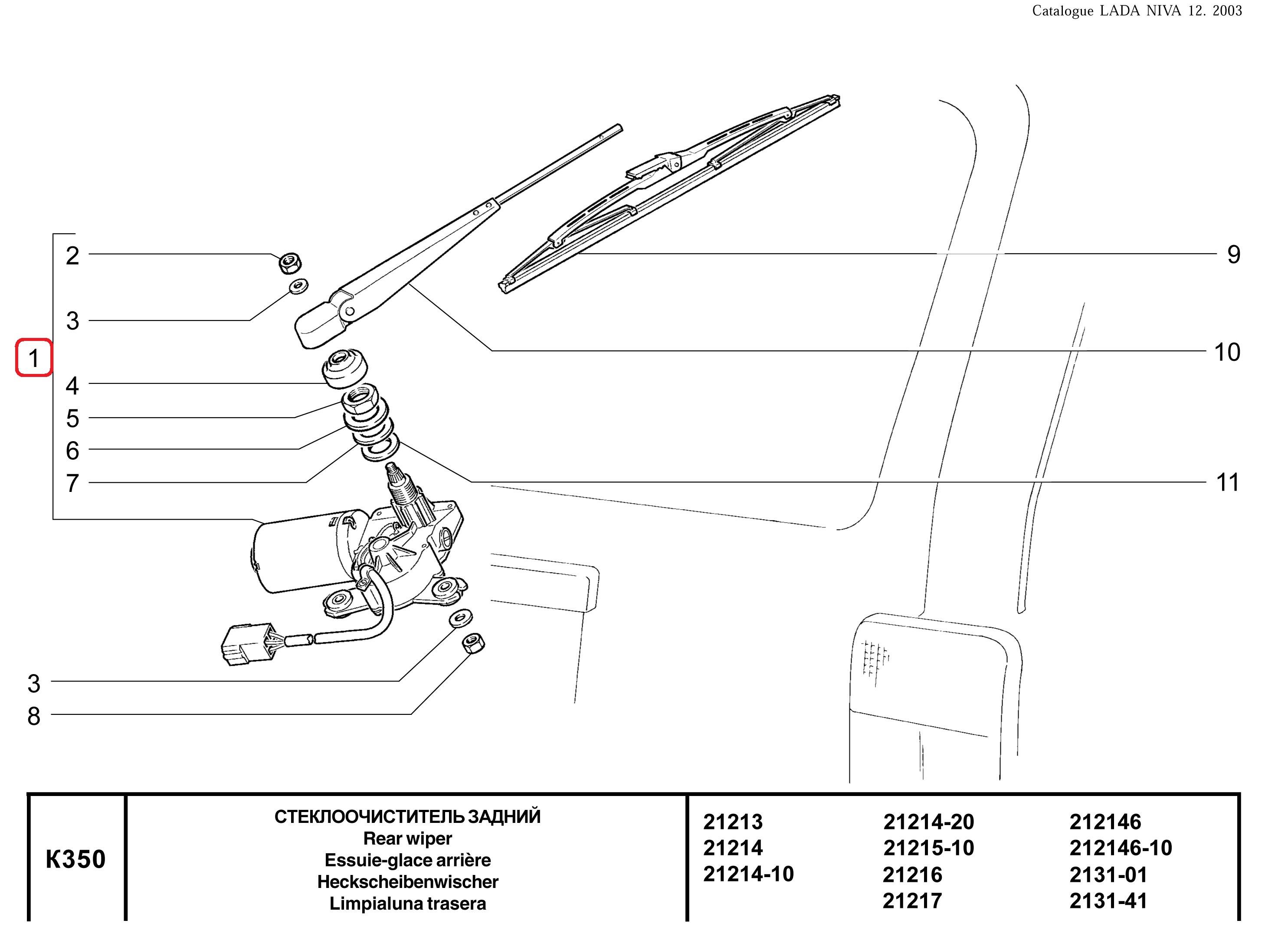 Схема заднего дворника Нива 21213