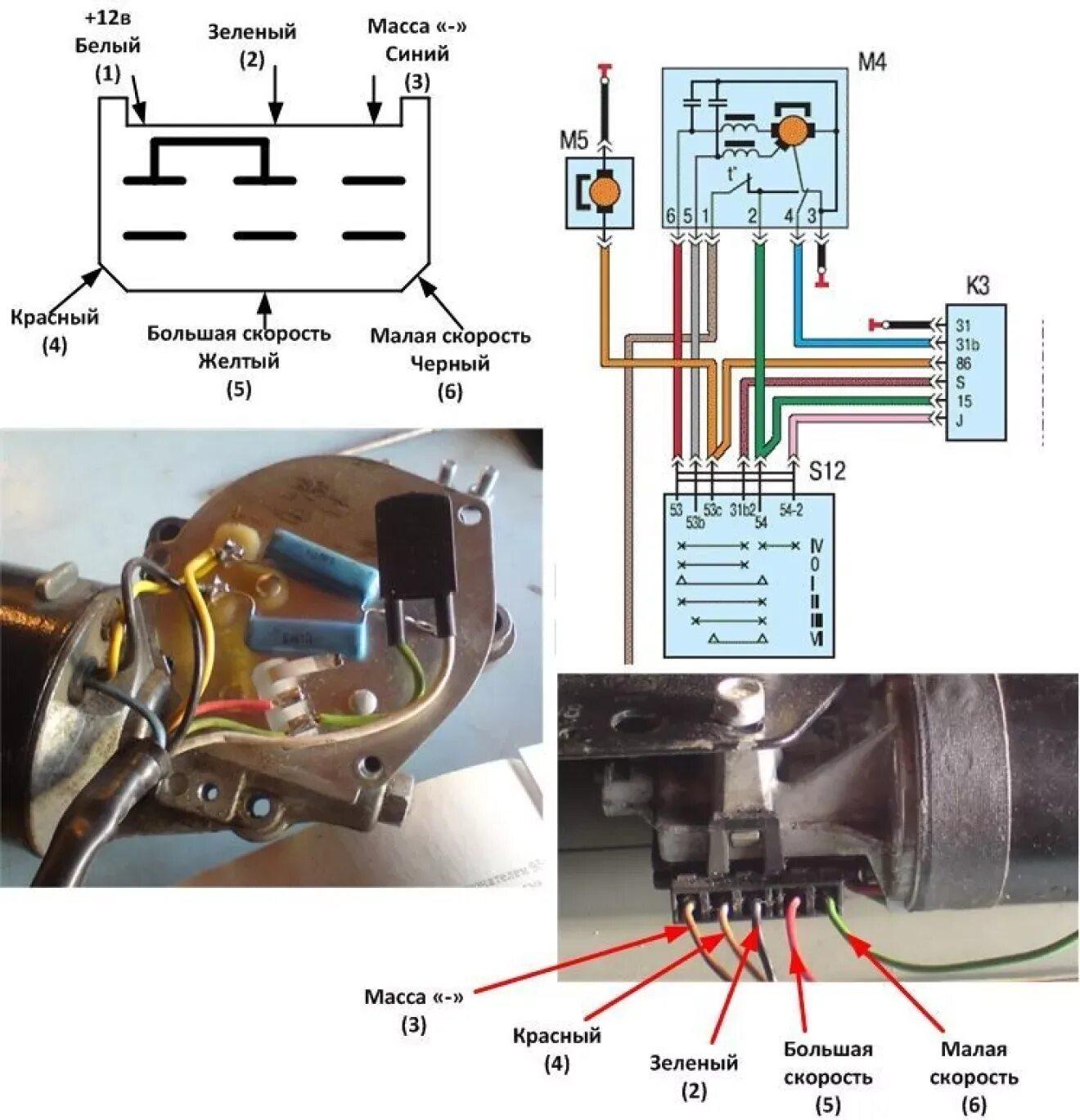 Распиновка мотора стеклоочистителя Волга