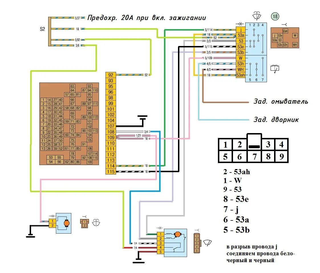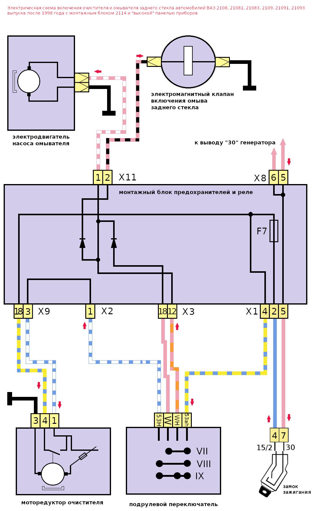 Электросхема омывателя лобового стекла ВАЗ 2114