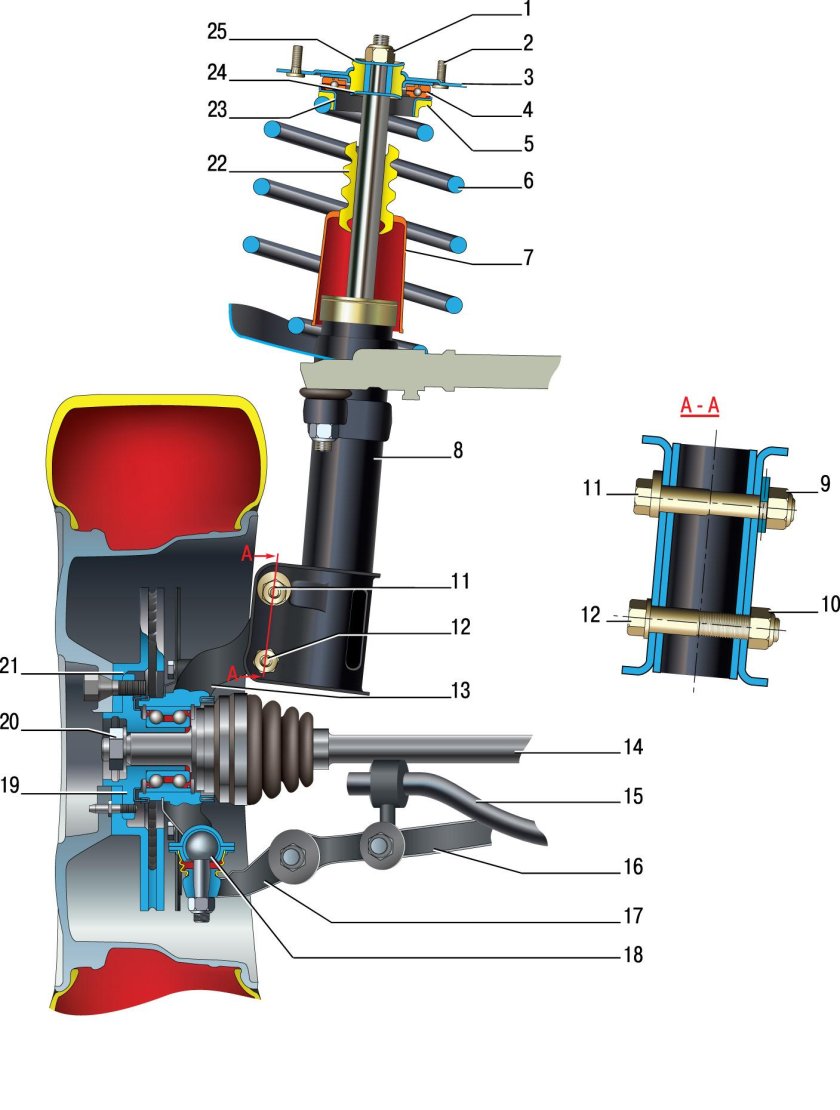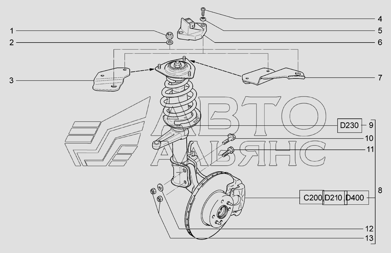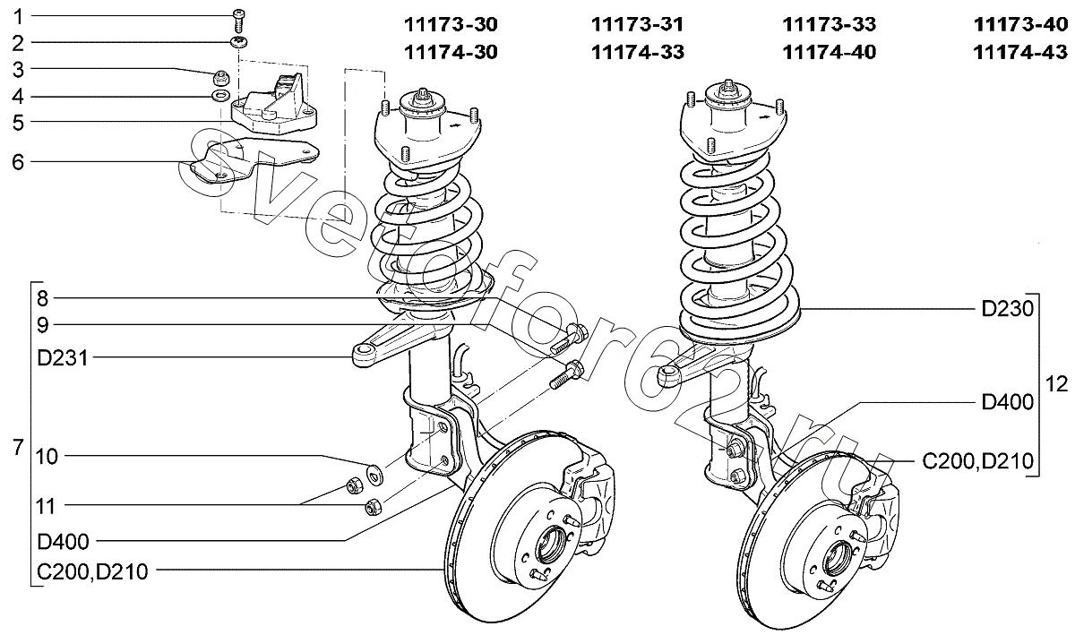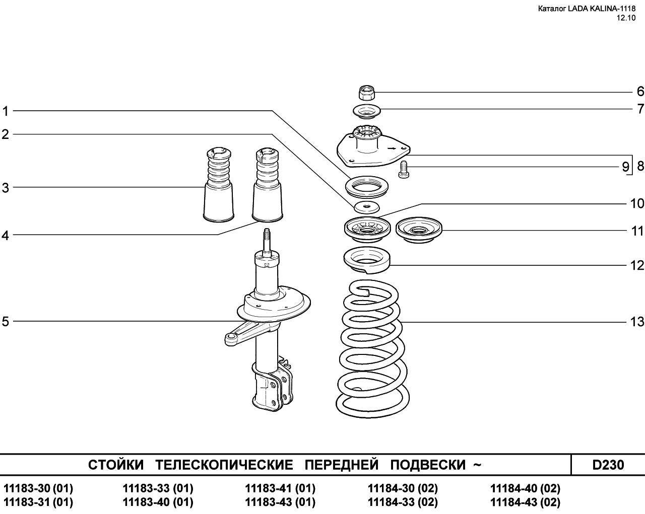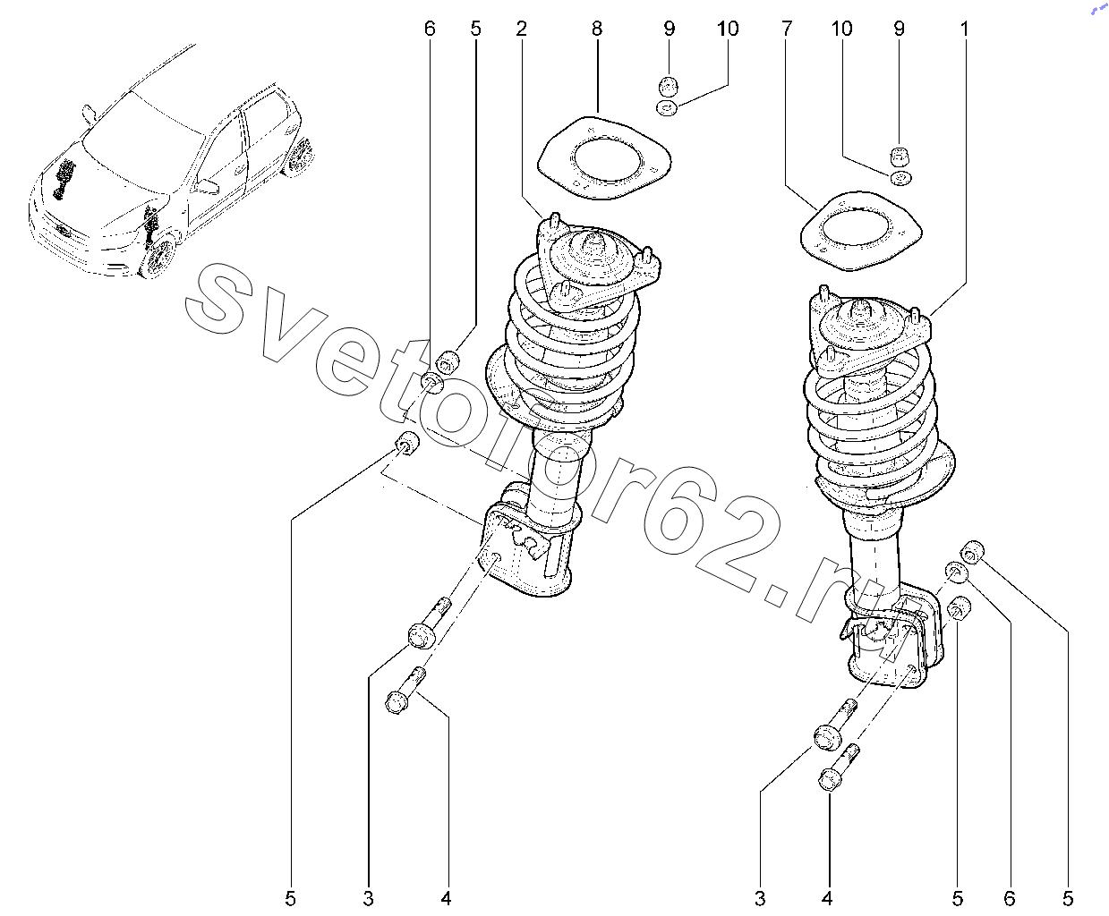 Стойка передняя ВАЗ 1118 схема