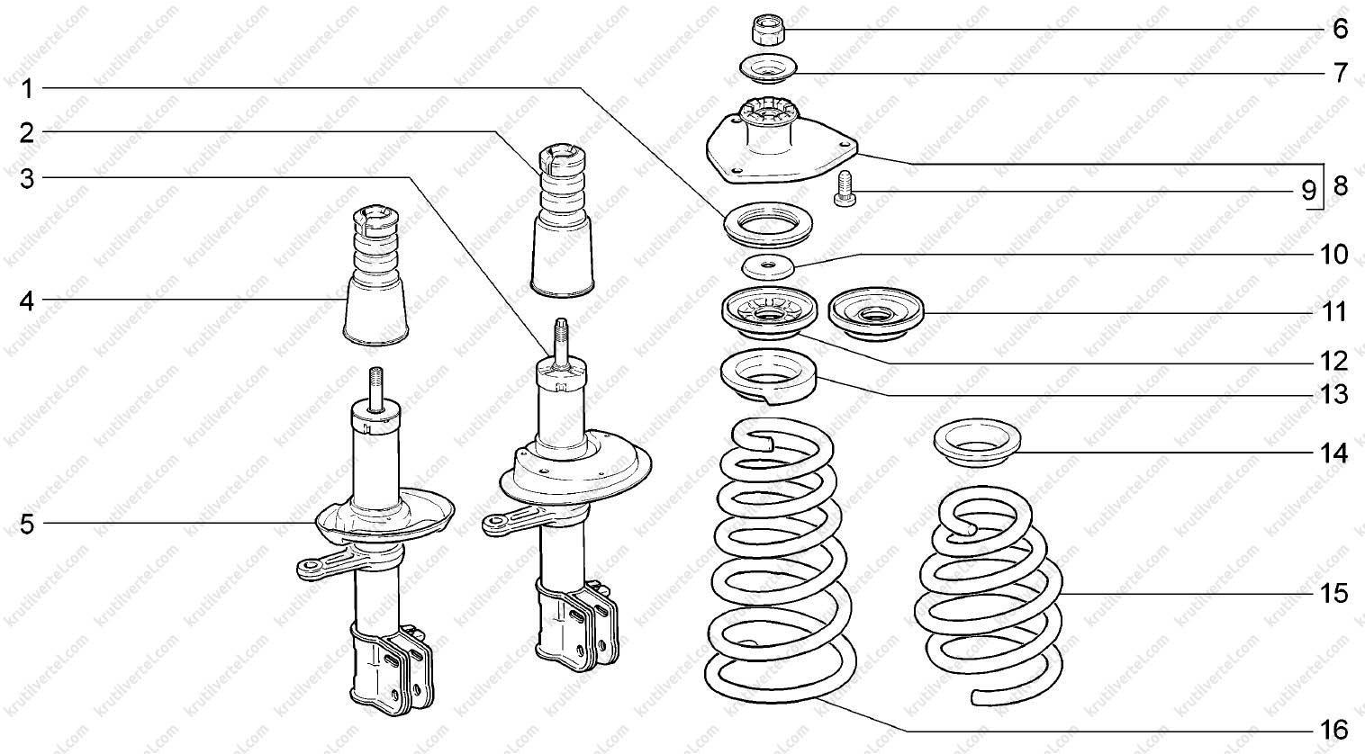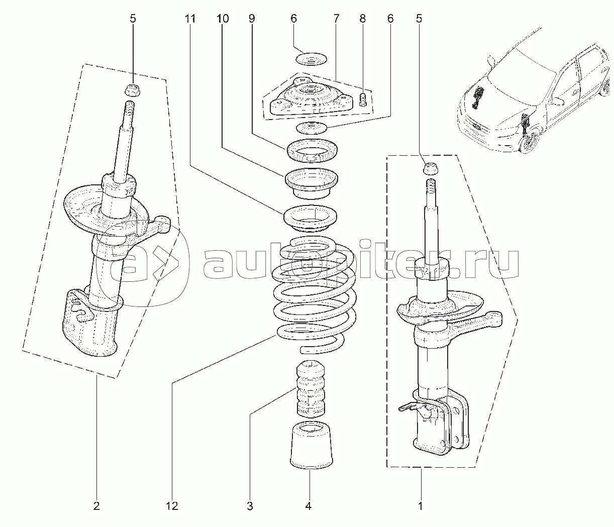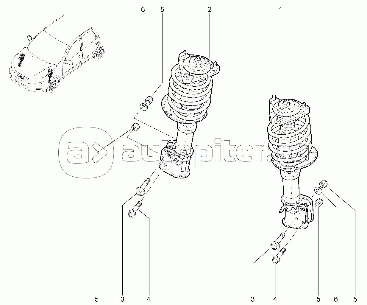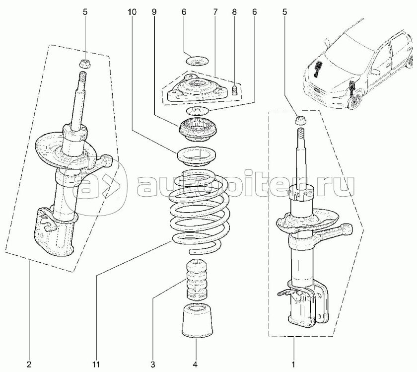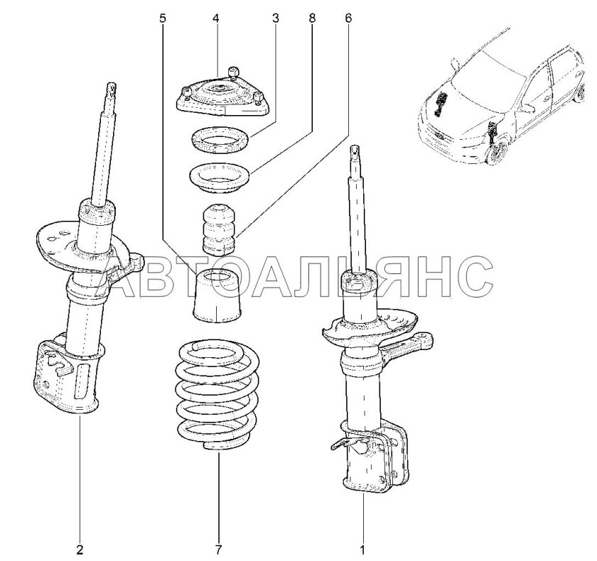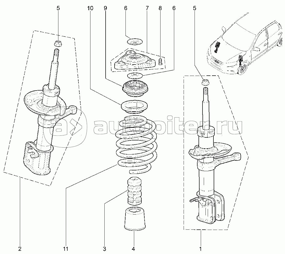 Стойка передняя ВАЗ 1118 схема