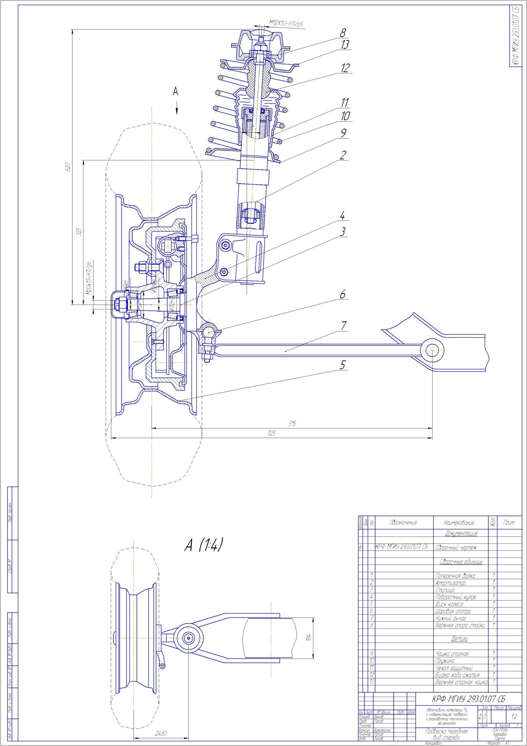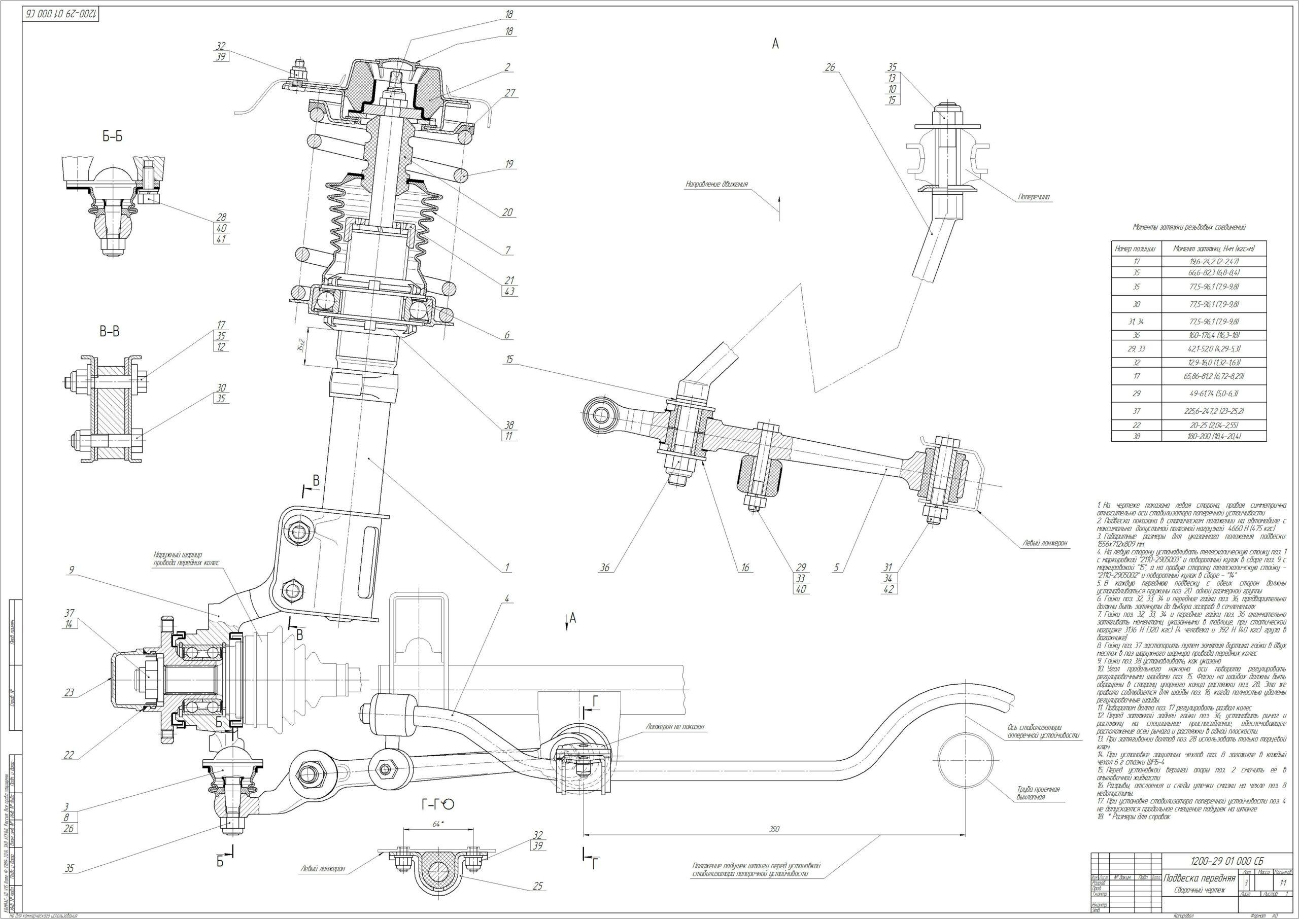 Передняя подвеска ВАЗ 2110 чертеж