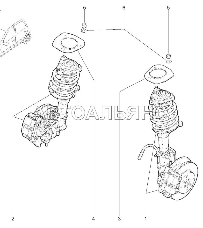 Стойка передняя ВАЗ 2190 схема