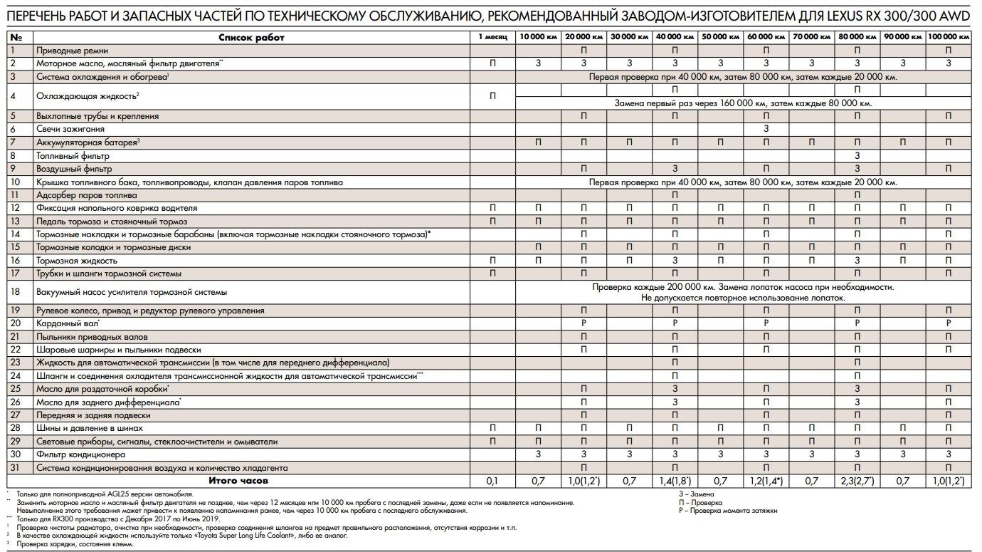 Регламент технического обслуживания Лексус rx300