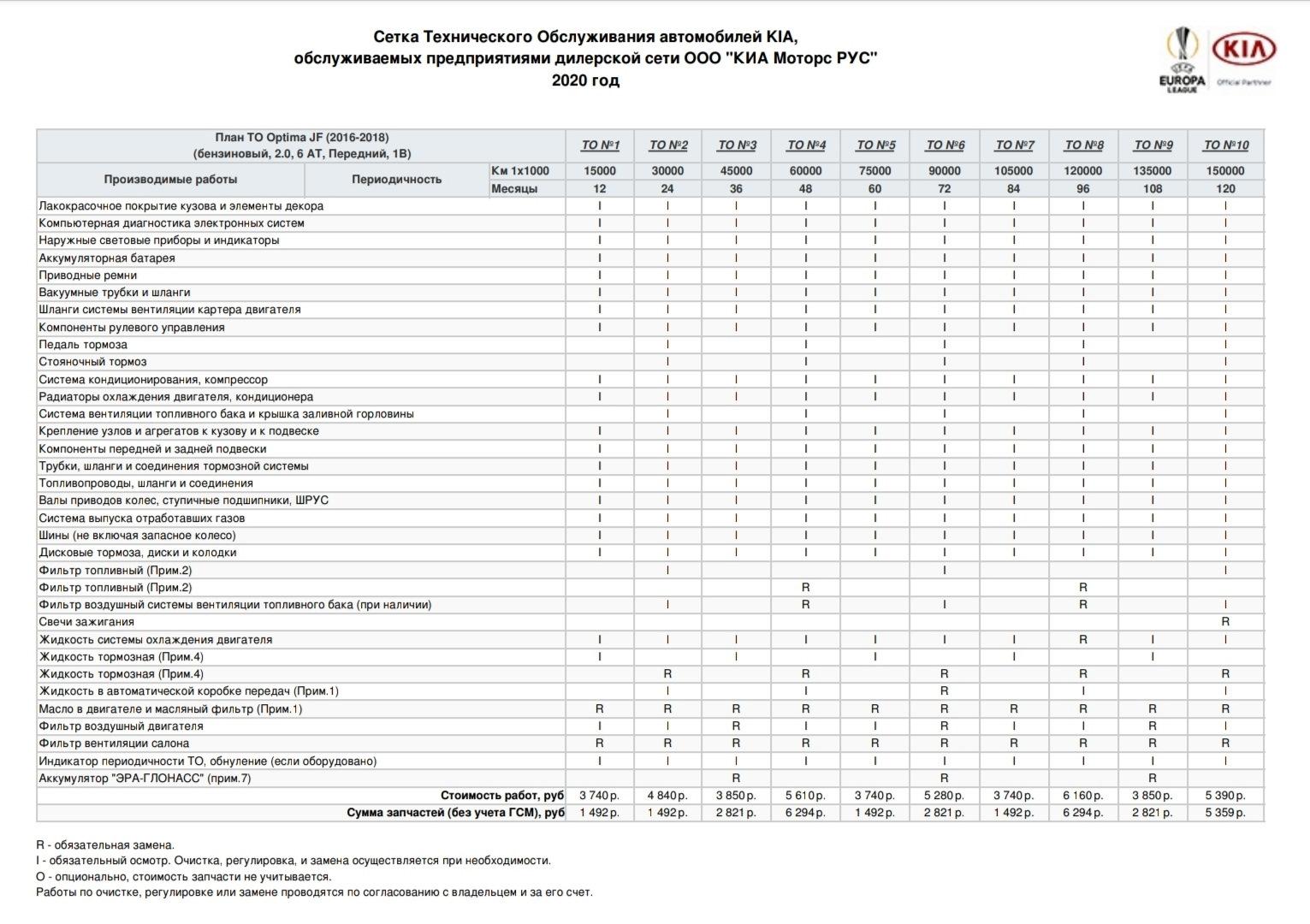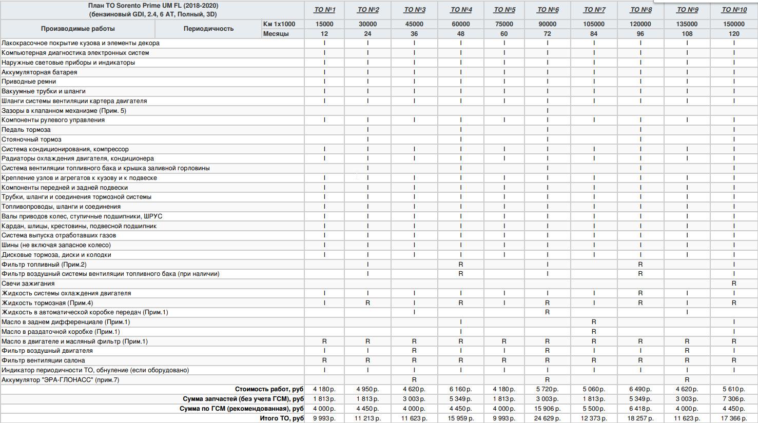 Регламент то Киа Спортейдж 4 2.0