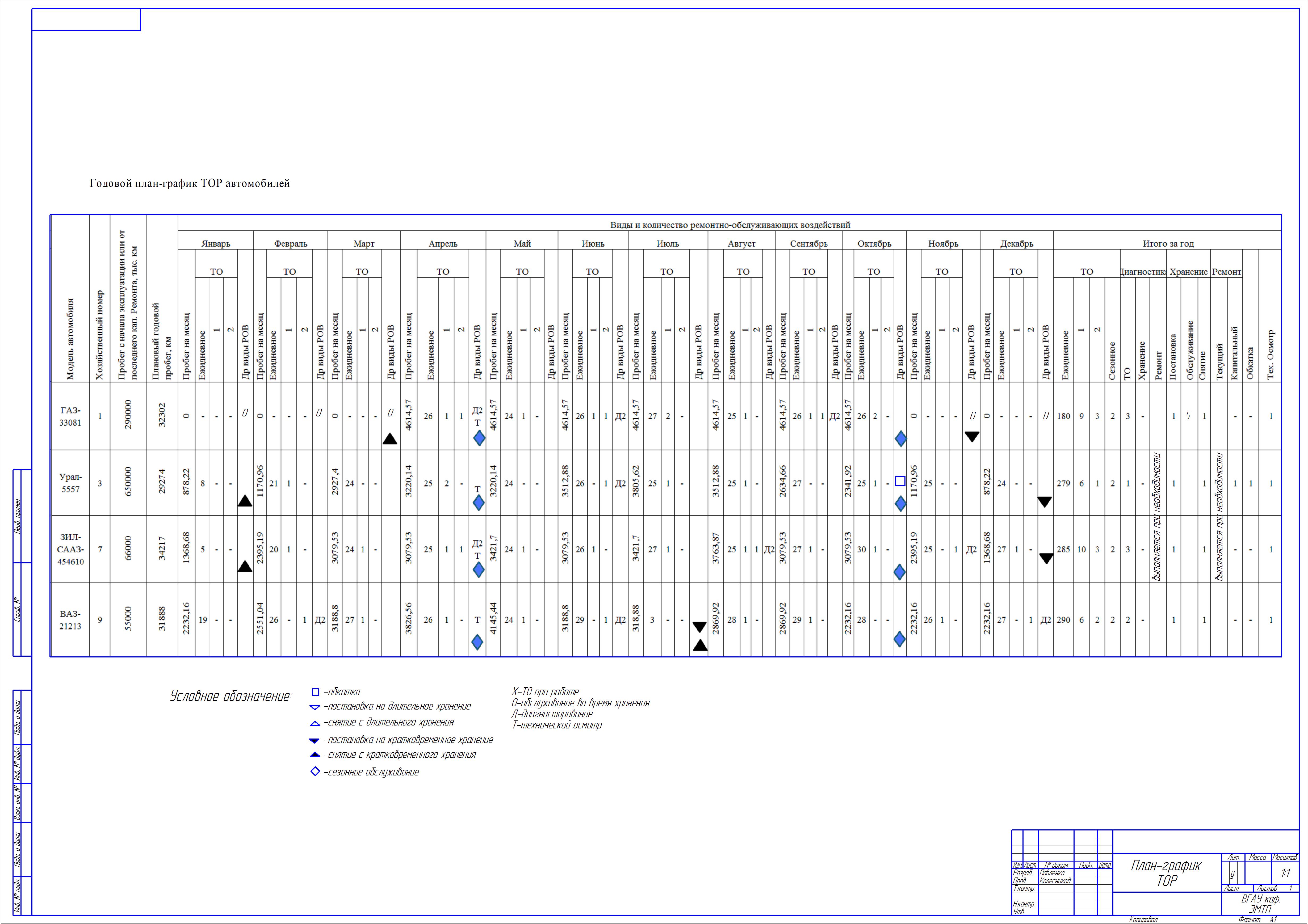План-график технического обслуживания и ремонта автомобилей