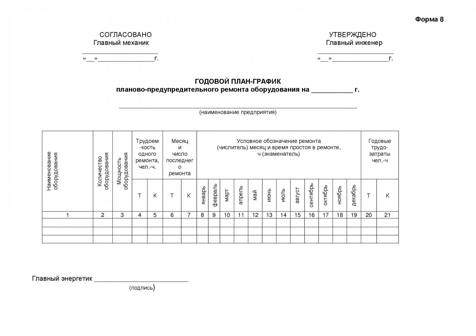Годовой план график то и ремонтов оборудования