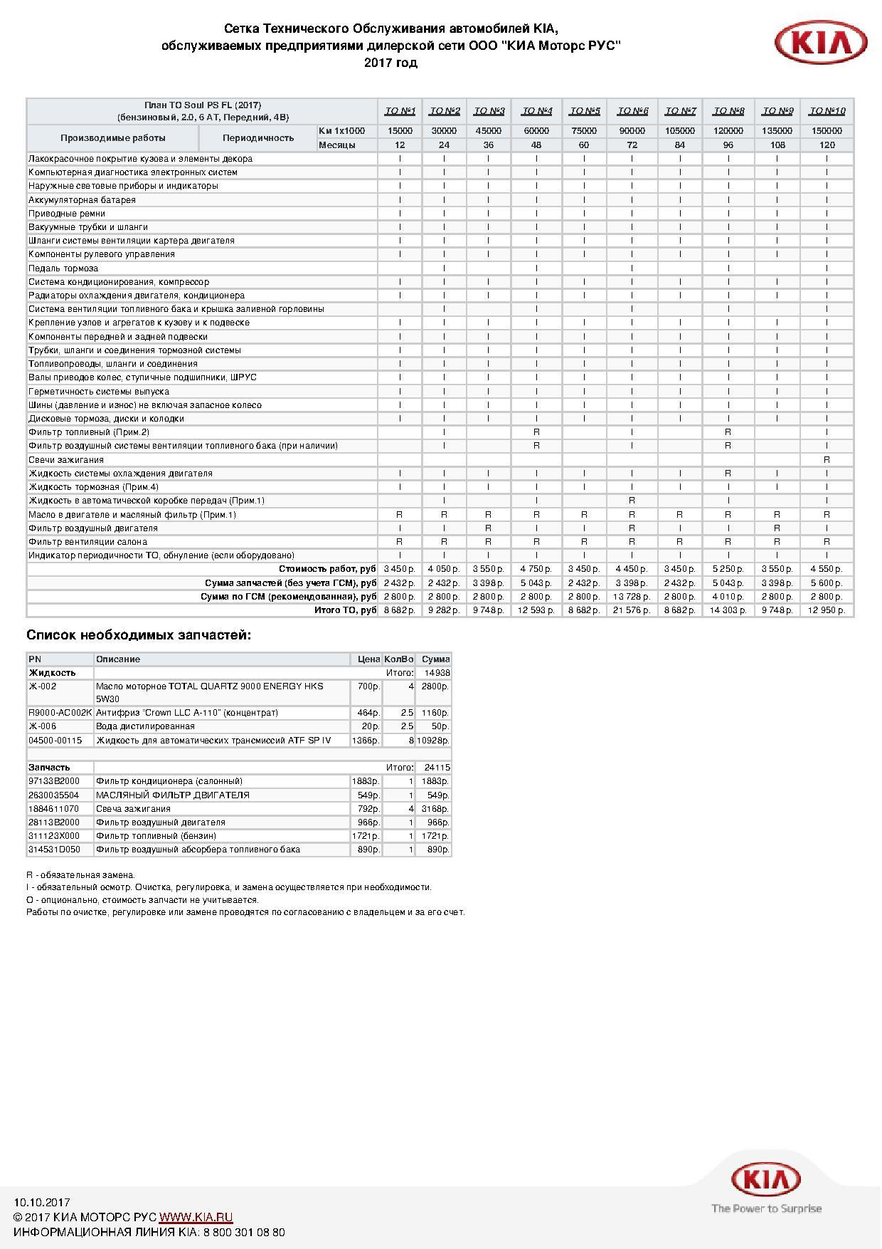 Регламент то Киа соул 1.6