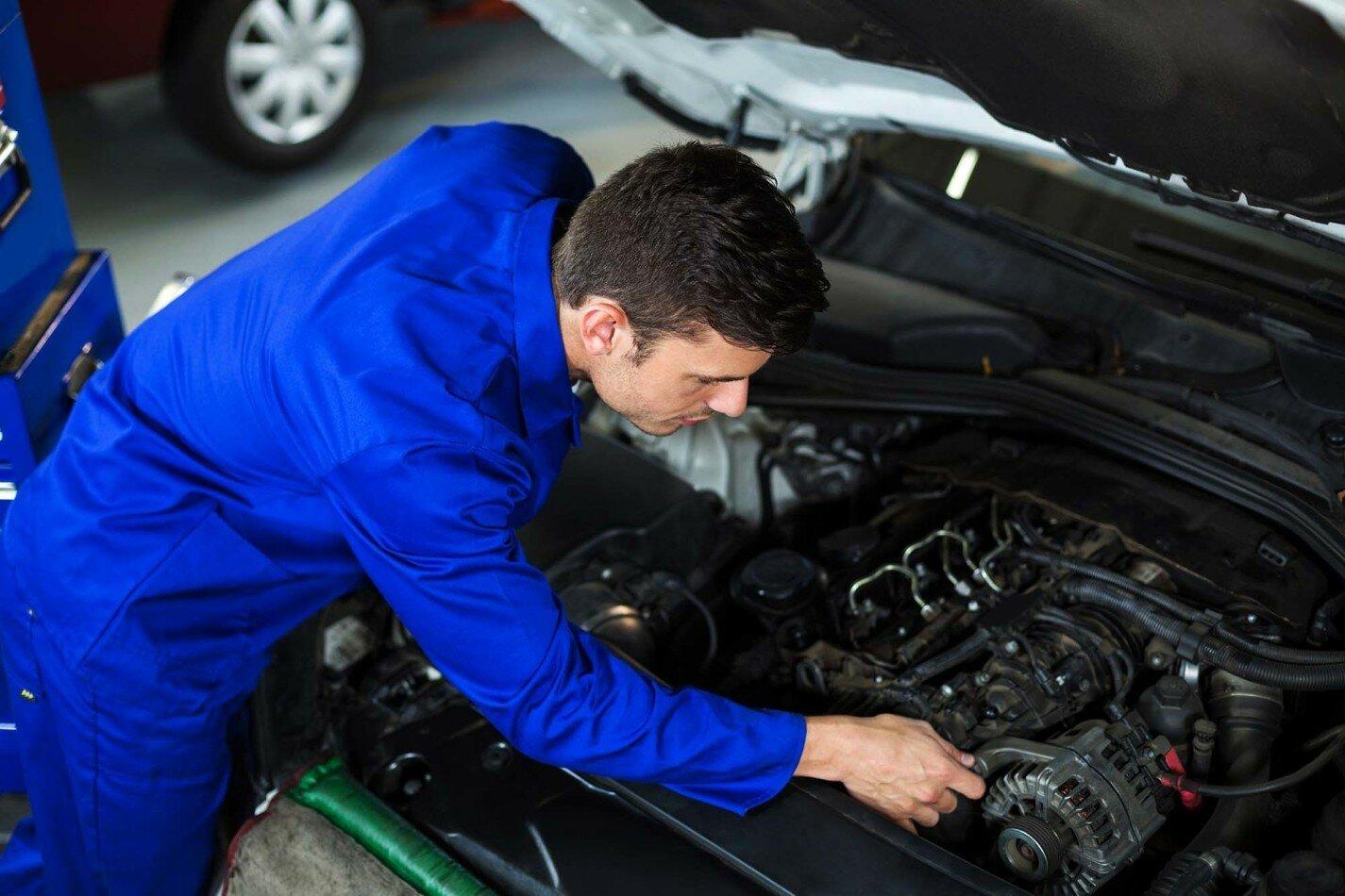Автомеханик чинит машину