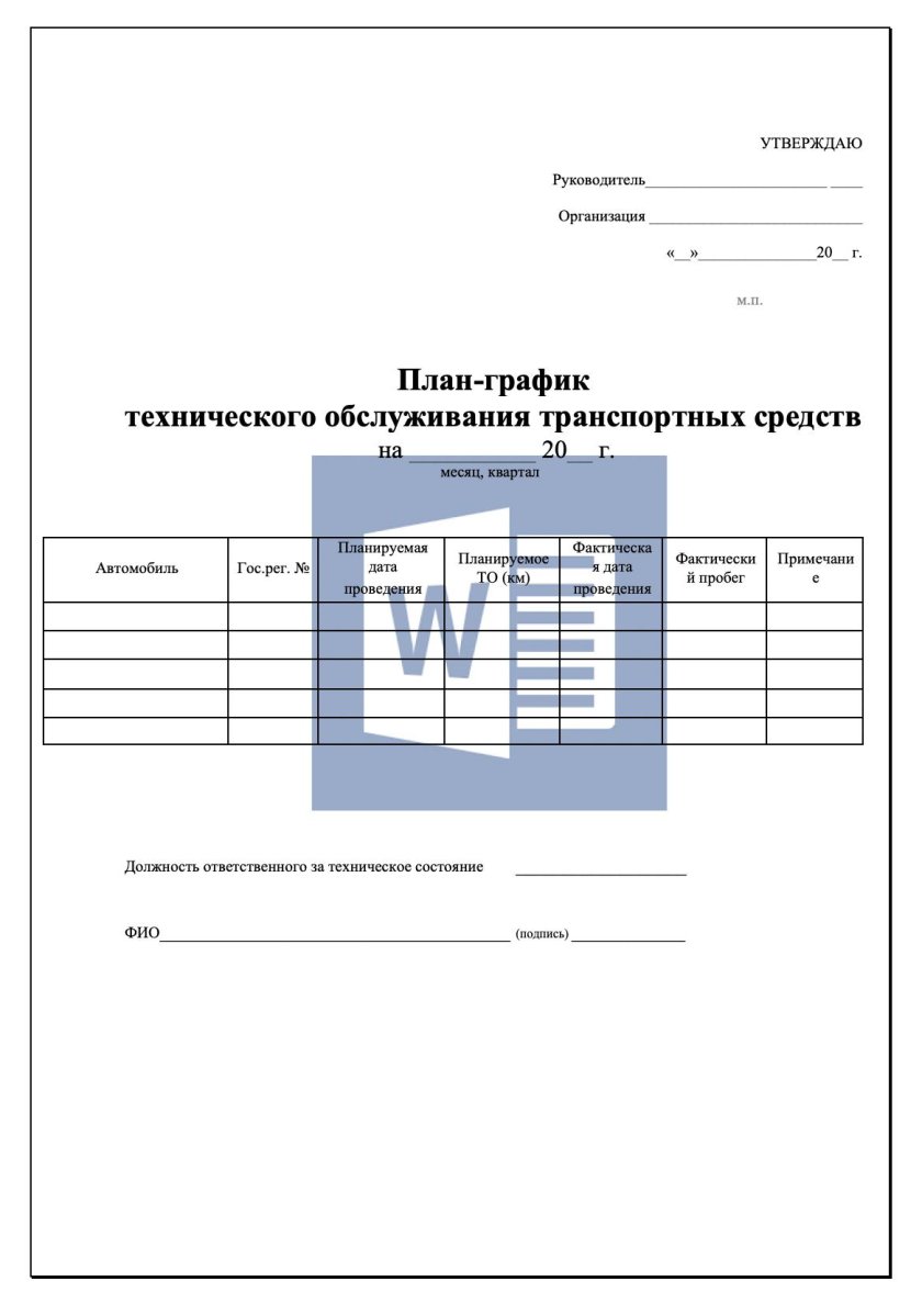 График технического обслуживания автомобилей на предприятии образец