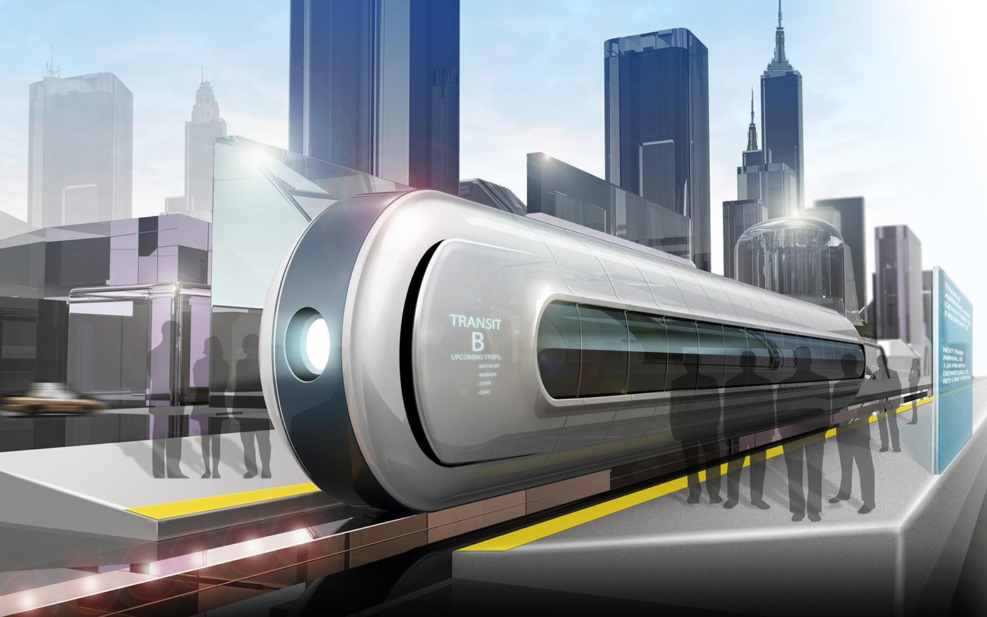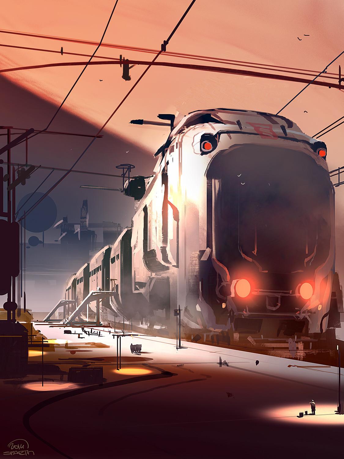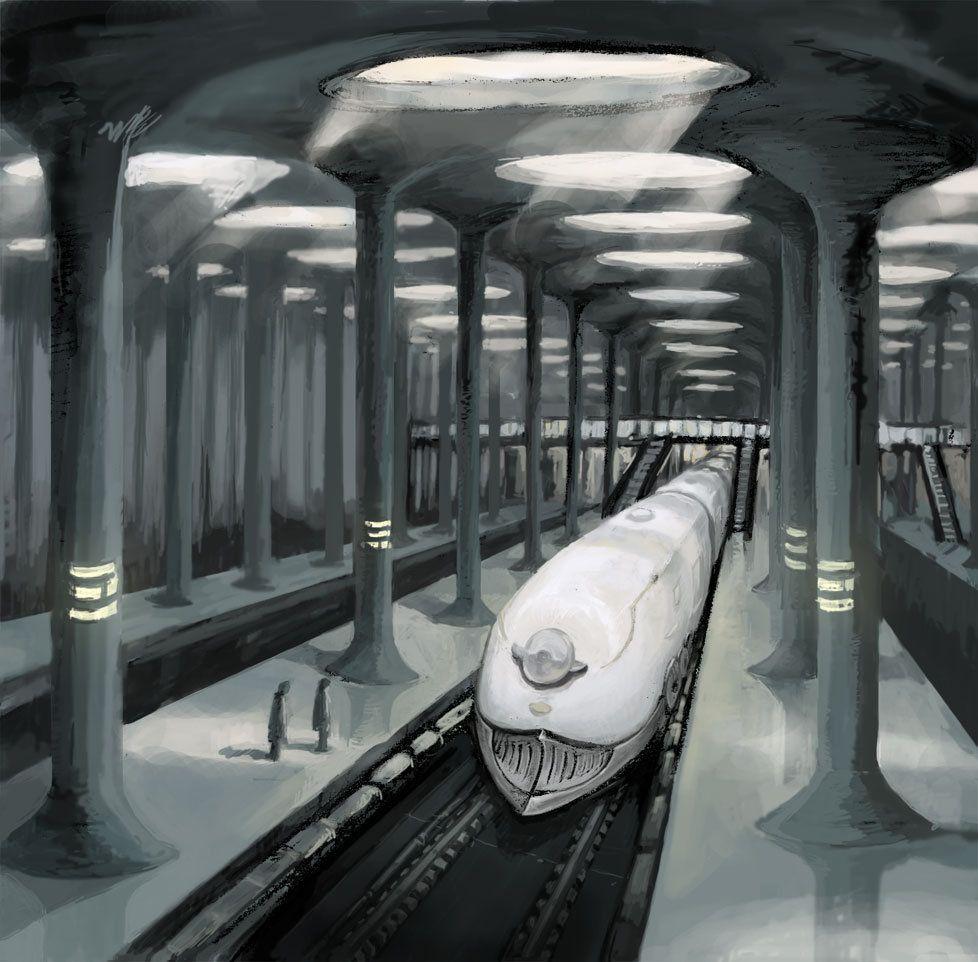 Поезд концепт арт Sci Fi