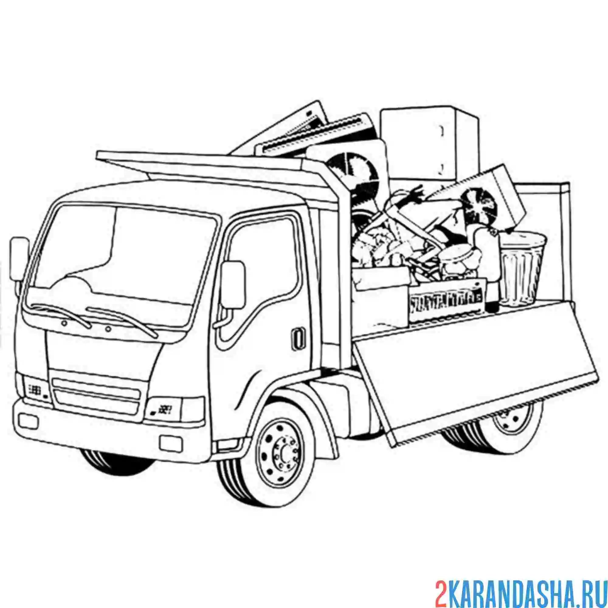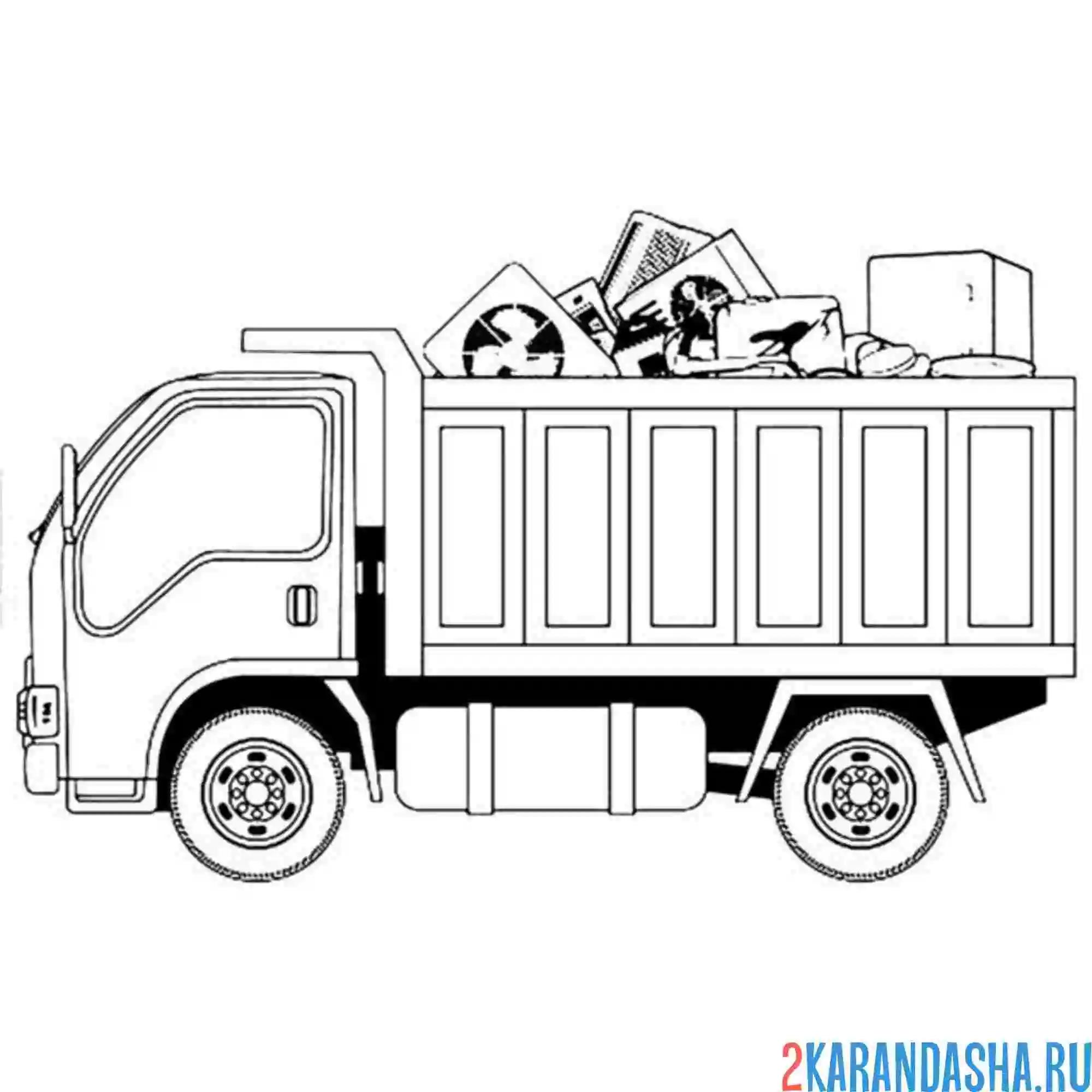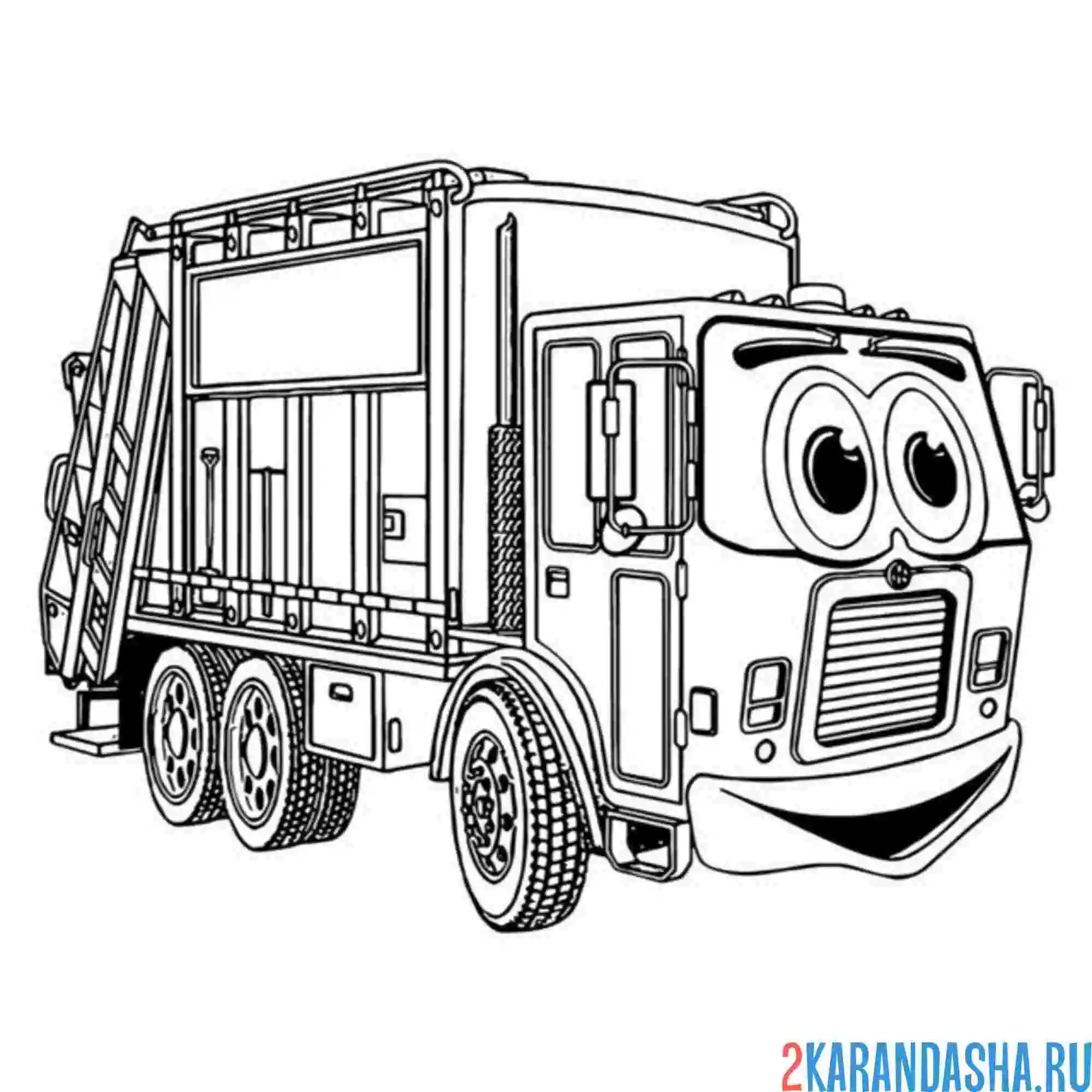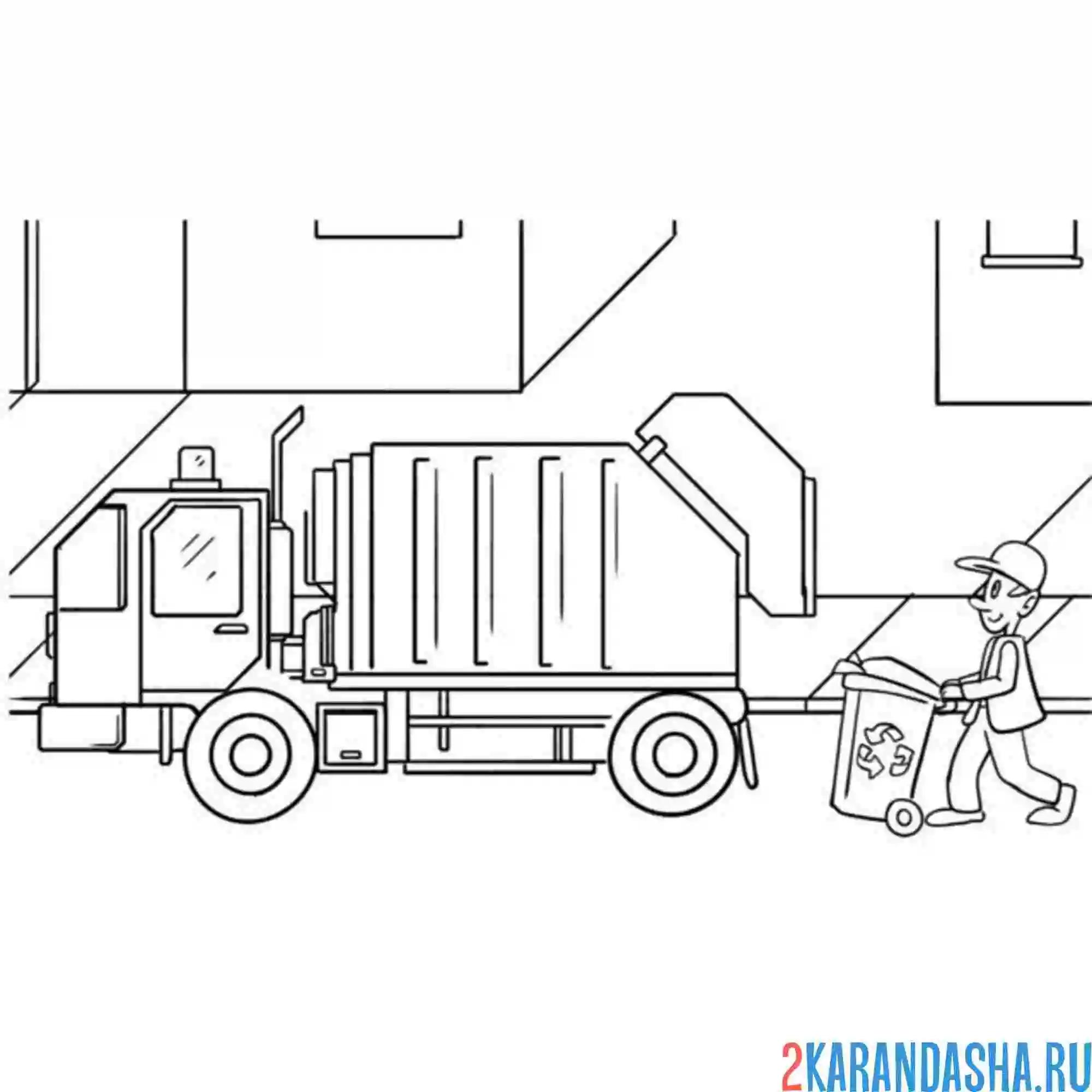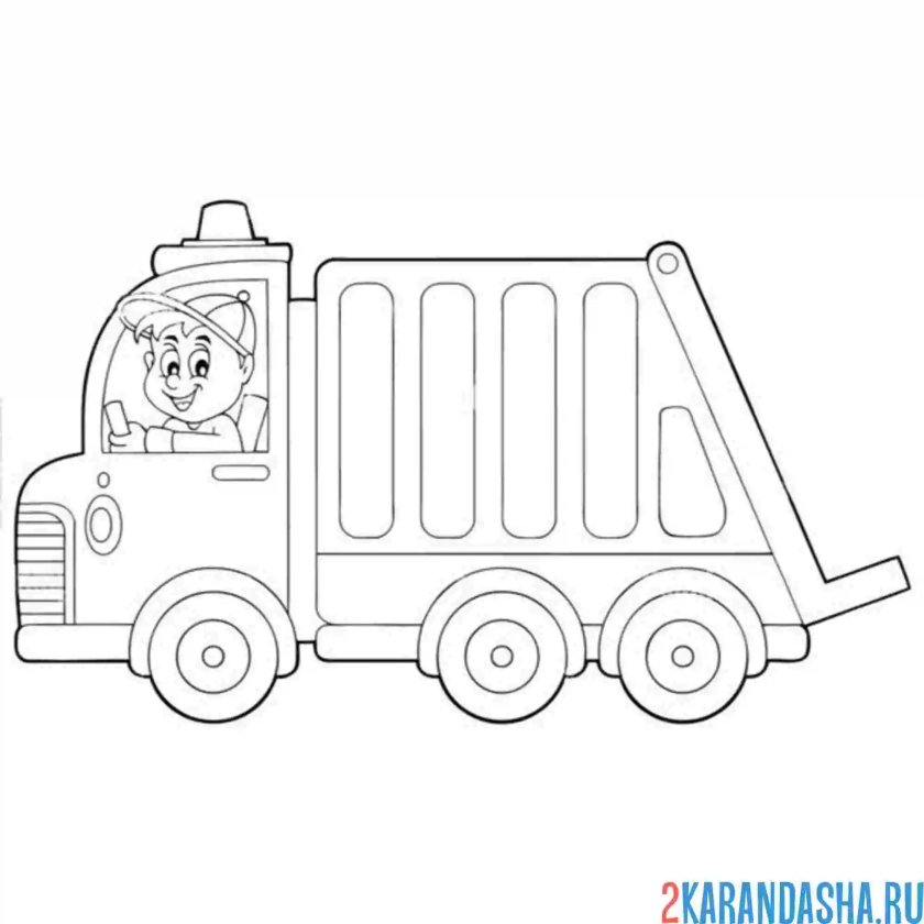 Мусоровоз раскраска для детей распечатать