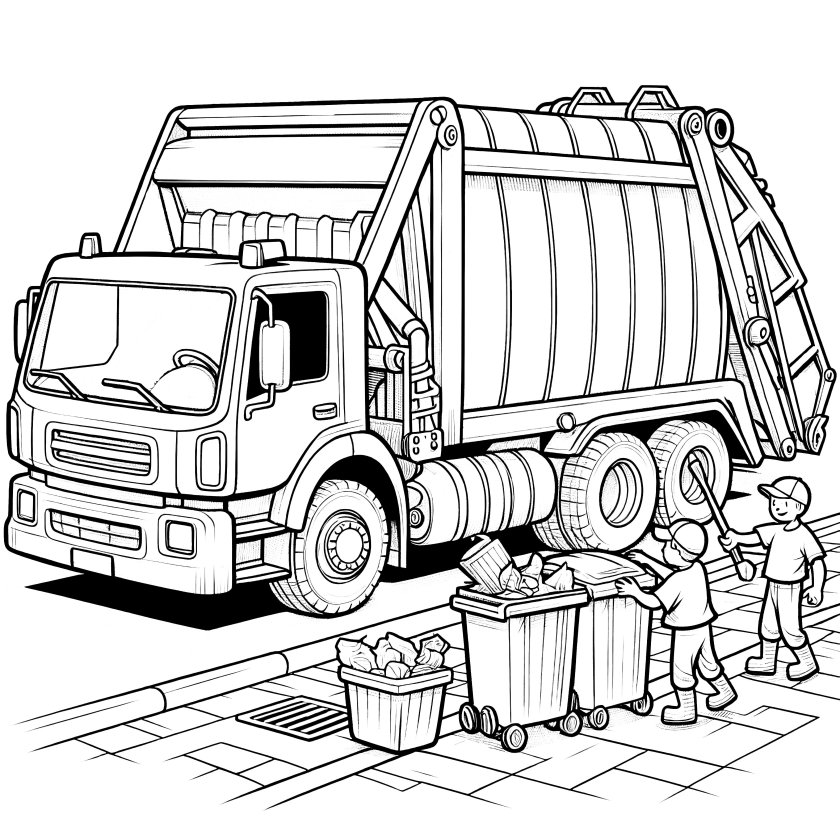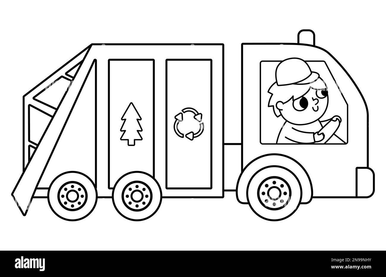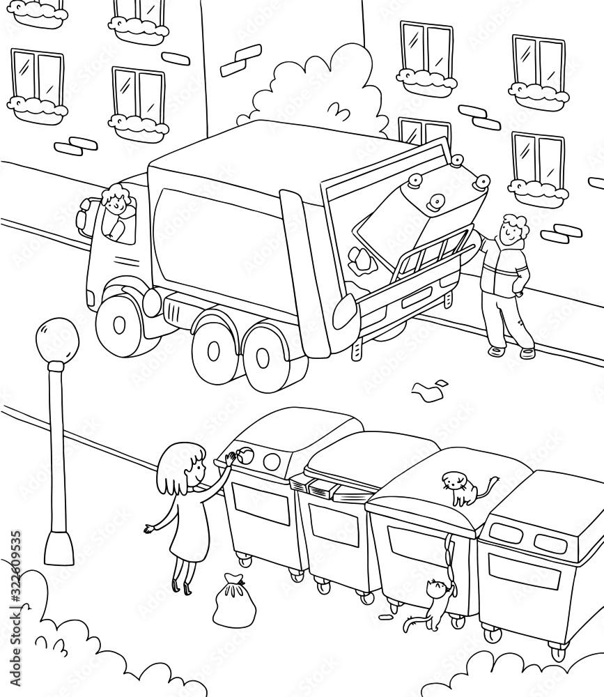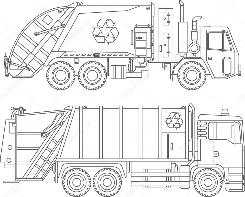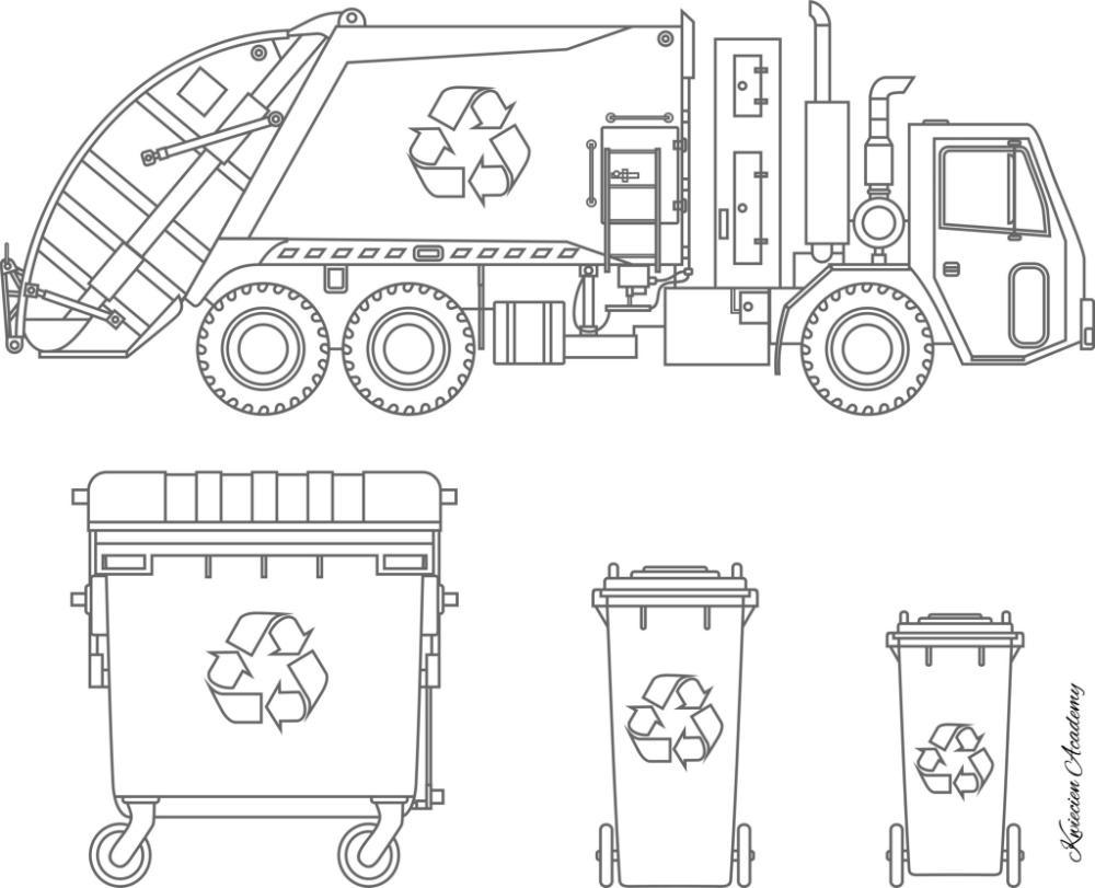 Мусоровоз картинки черно белые