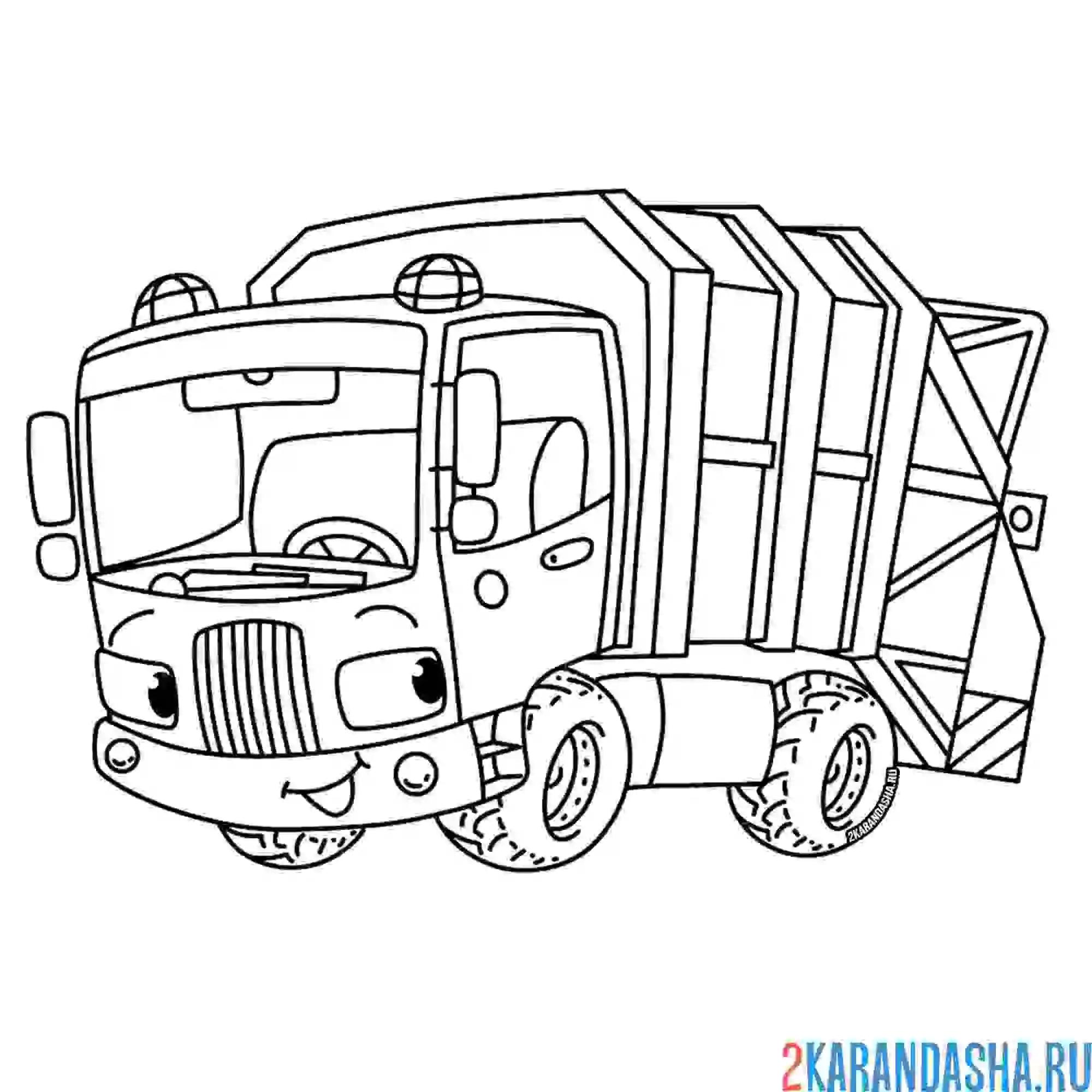 Раскраска детская мусоровоз