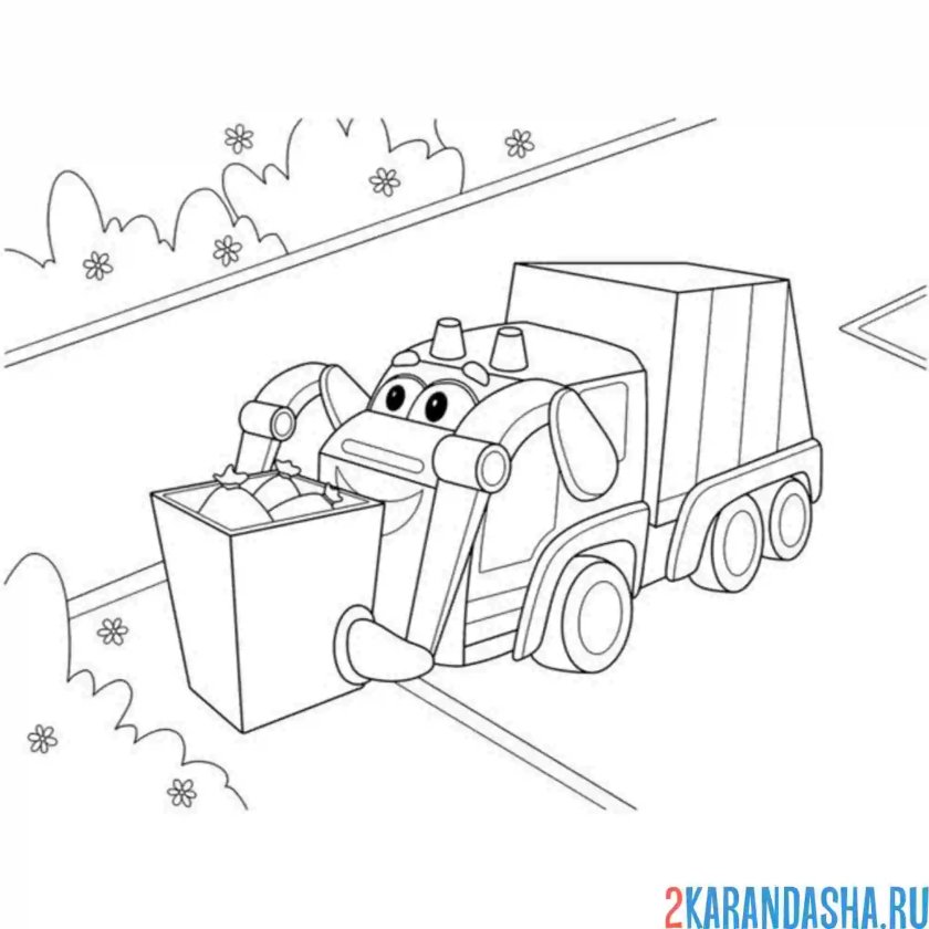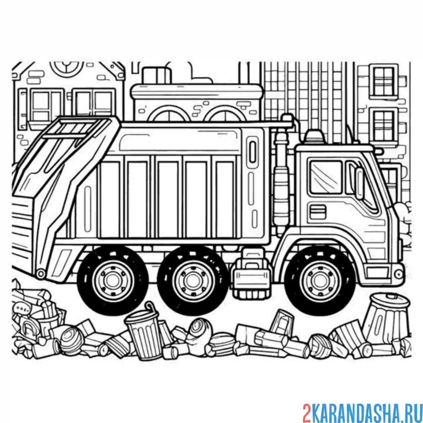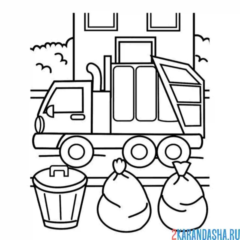 Мусоровоз раскраска для детей